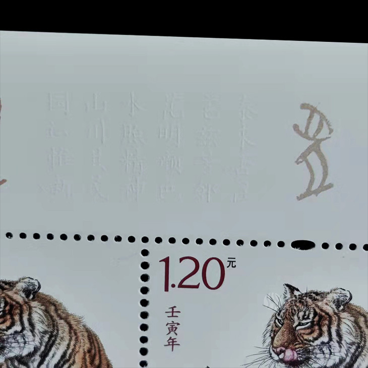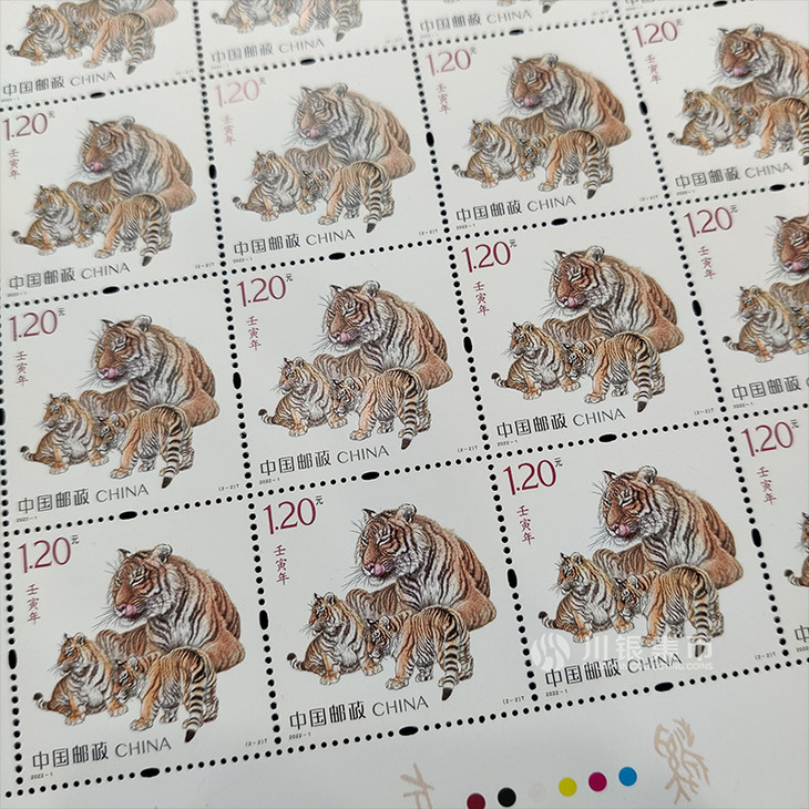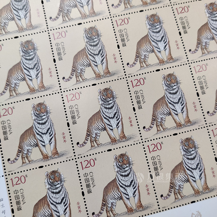 2022虎年邮票由中国邮政发行,一套两枚,每枚面值1.2元。