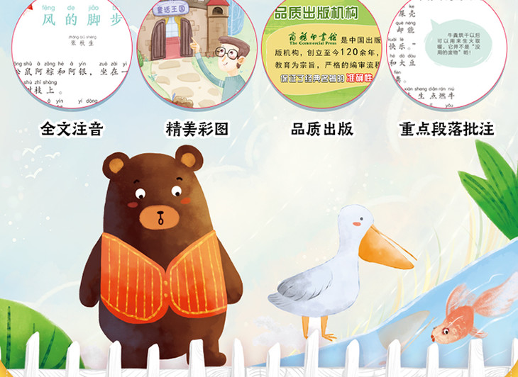 《和大人一起读》共四册,以统编小学语文一年级上册教材选篇为参考,根据一年级学生的认知水平,对市场上已有产品进行梳理,精选了多篇适合一年级学生阅读的作品。全四册内容均为儿童文学作品汇编,其中包括我国著名儿童文学作家金波、樊发稼、王一梅、张秋生、冰波等人的优秀作品,也包括外国儿童文学的经典作品。稿件涵盖童话、儿童诗歌、经典成语故事等文学体裁,为一年级学生提供了大量的优秀作品。