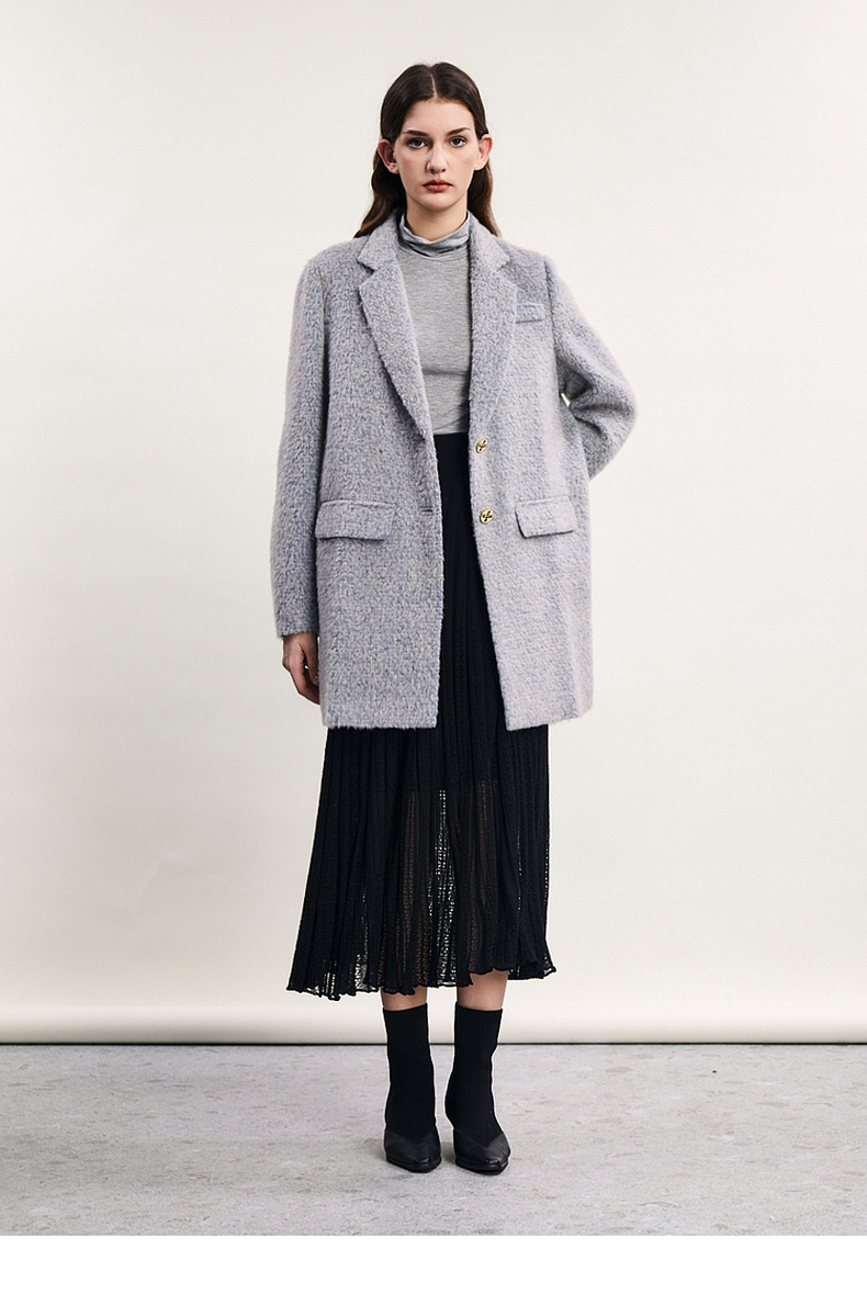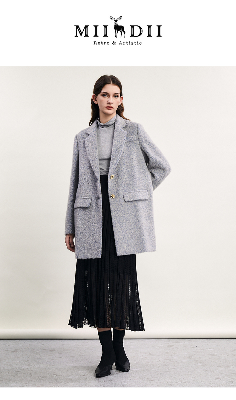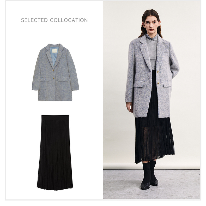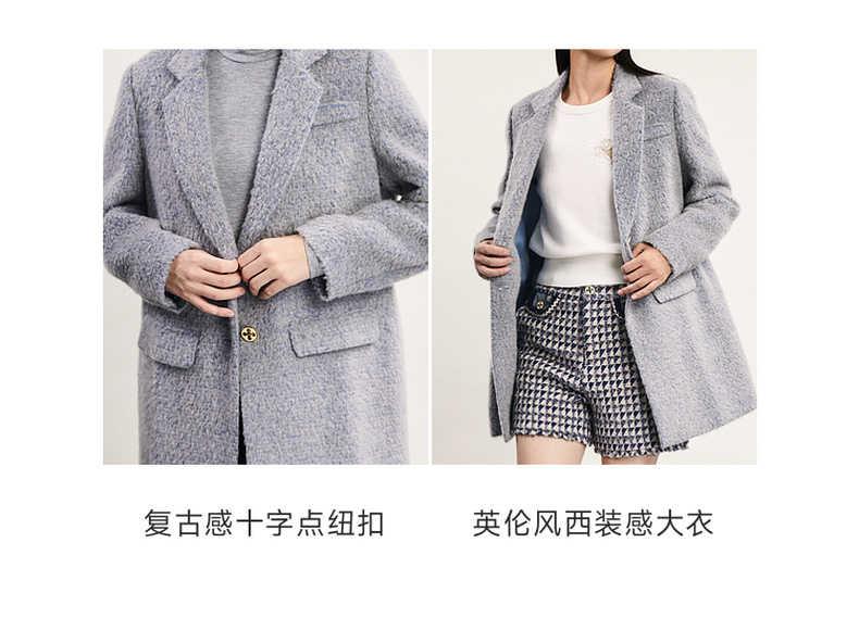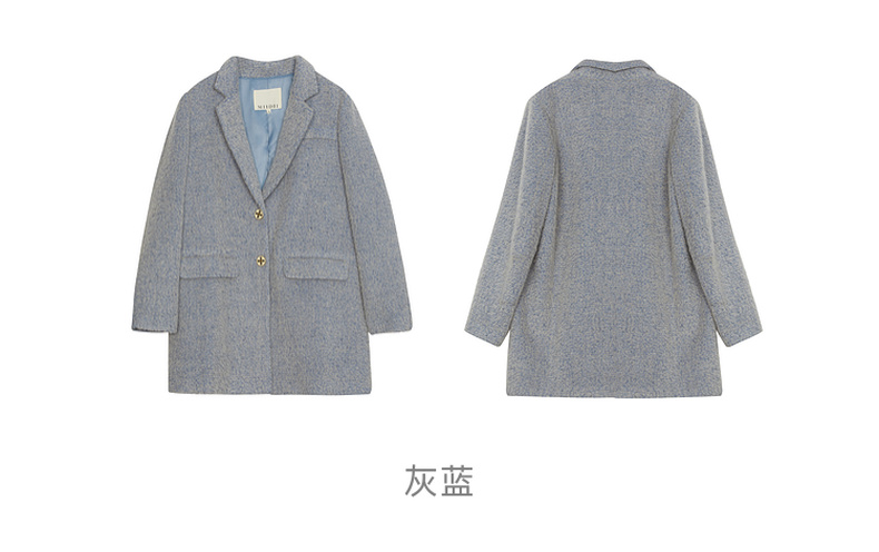 谜底毛呢大衣女2024春新款通勤风时尚西装领单排扣外套241MD0104