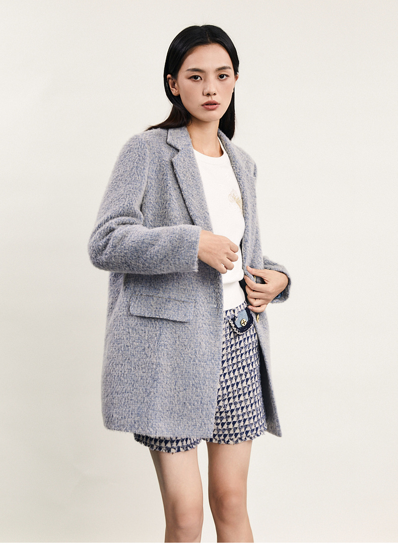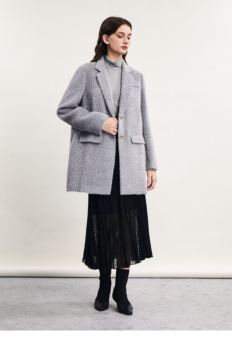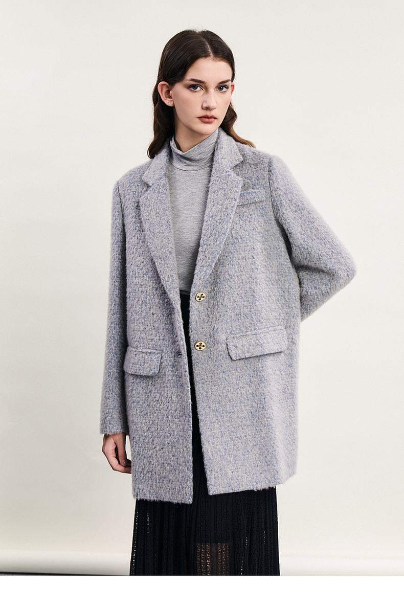 谜底毛呢大衣女2024春新款通勤风时尚西装领单排扣外套241MD0104
