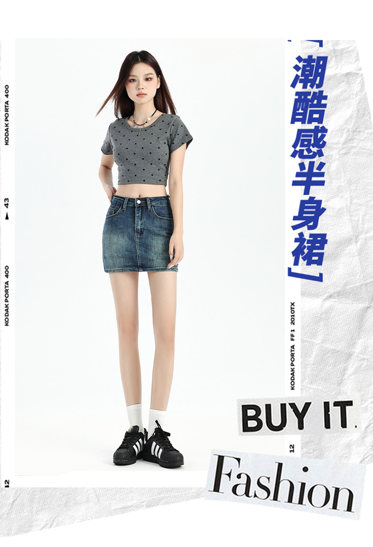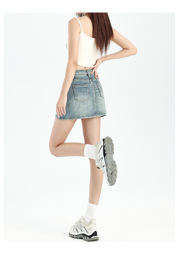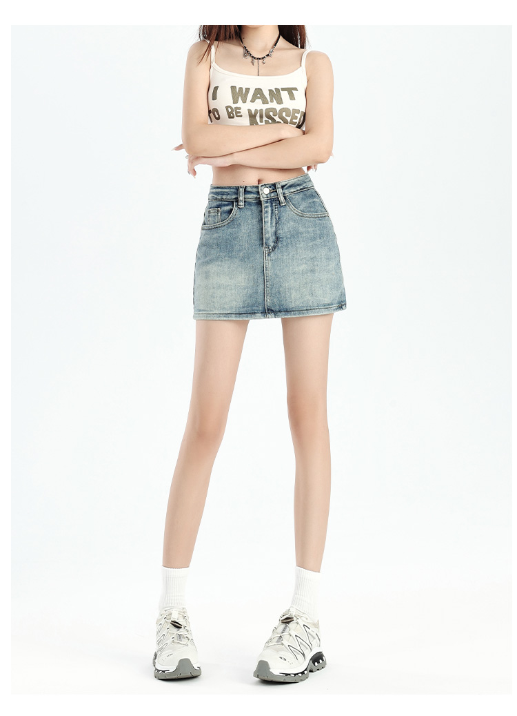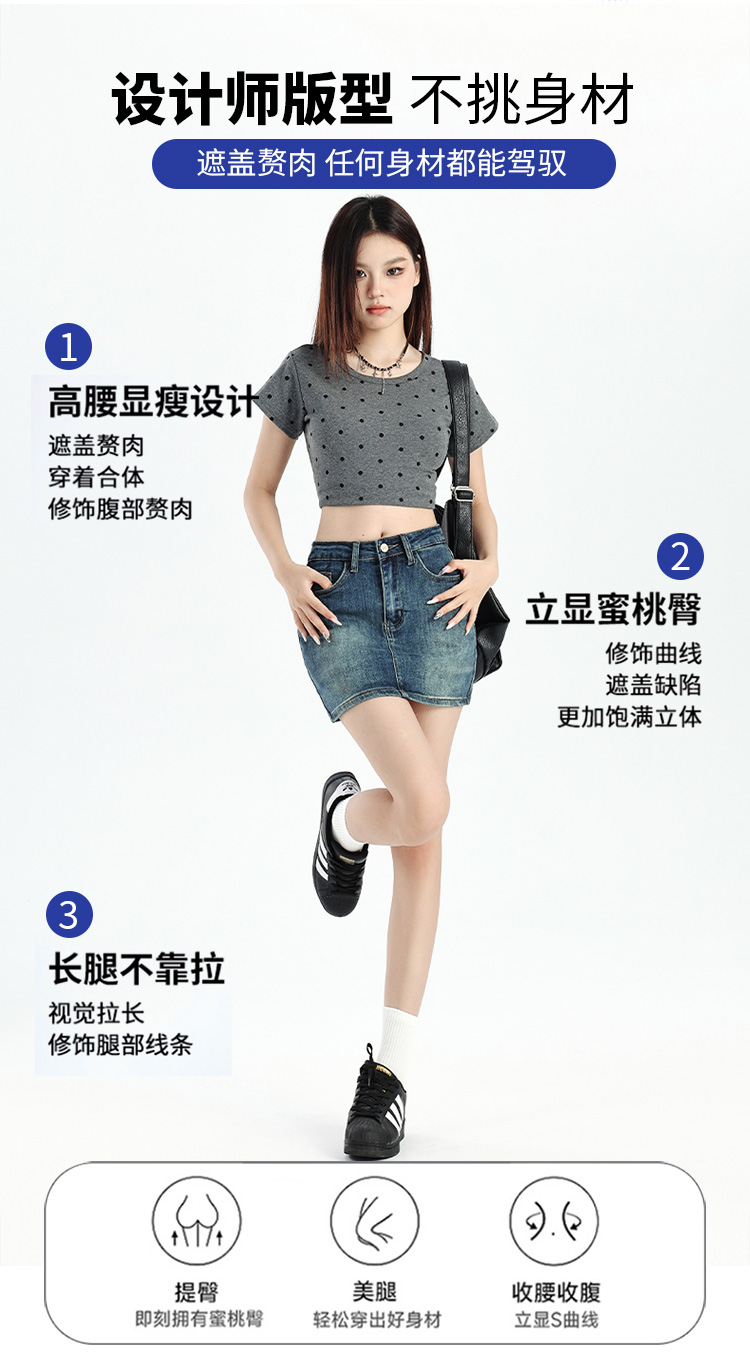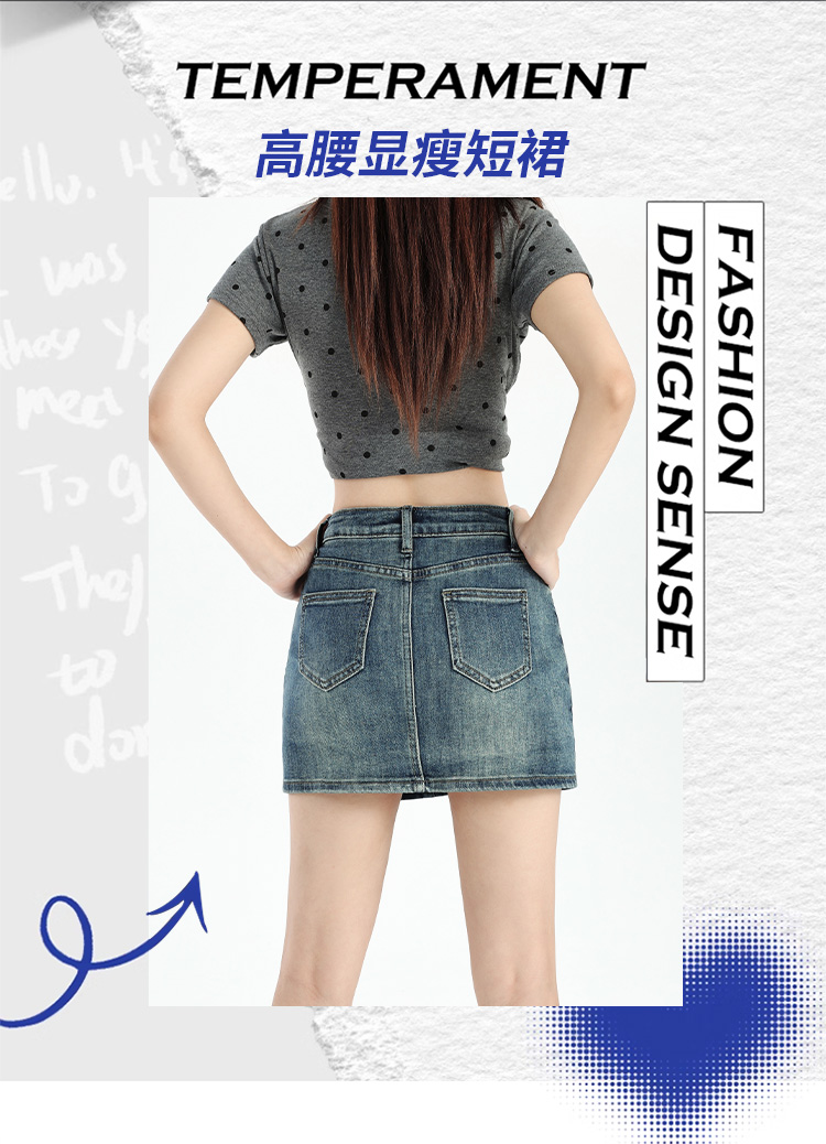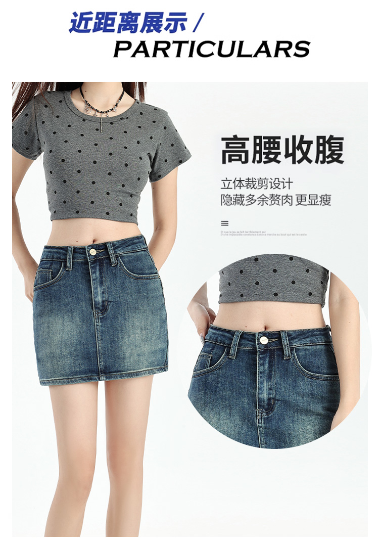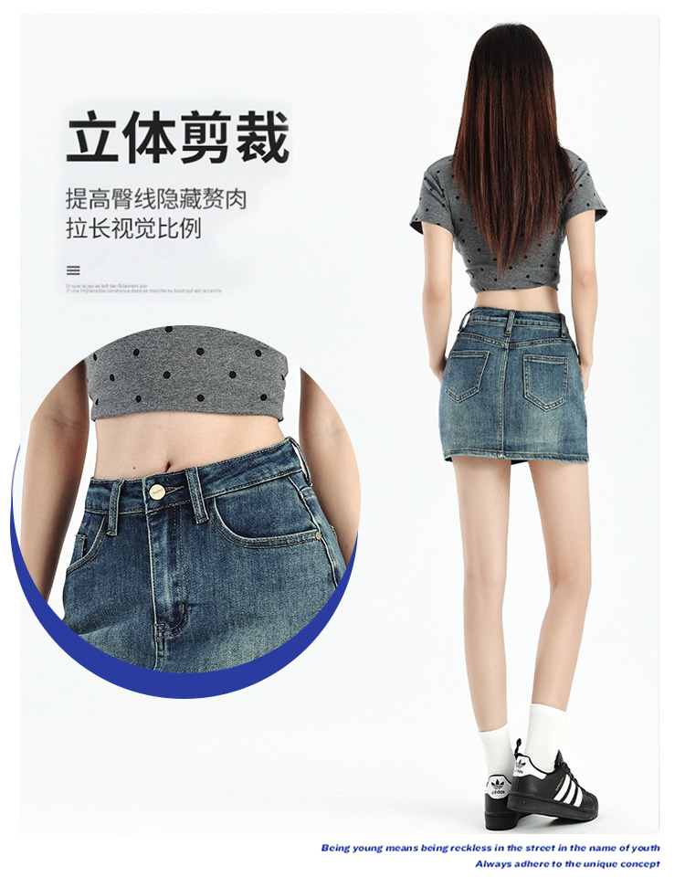 罗蒙女士夏季牛仔裙高腰显瘦短裙简约百搭舒适牛仔裙子女休闲通勤