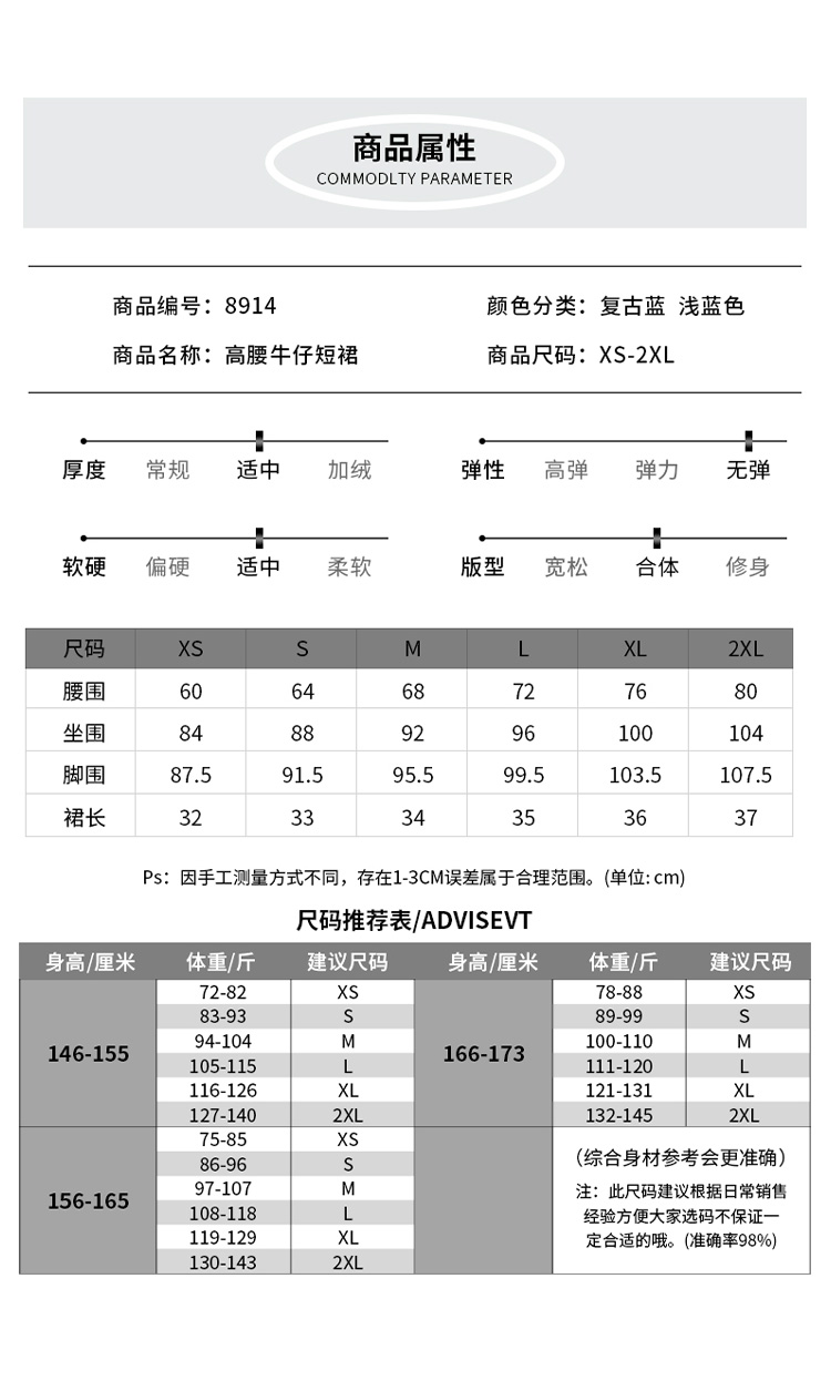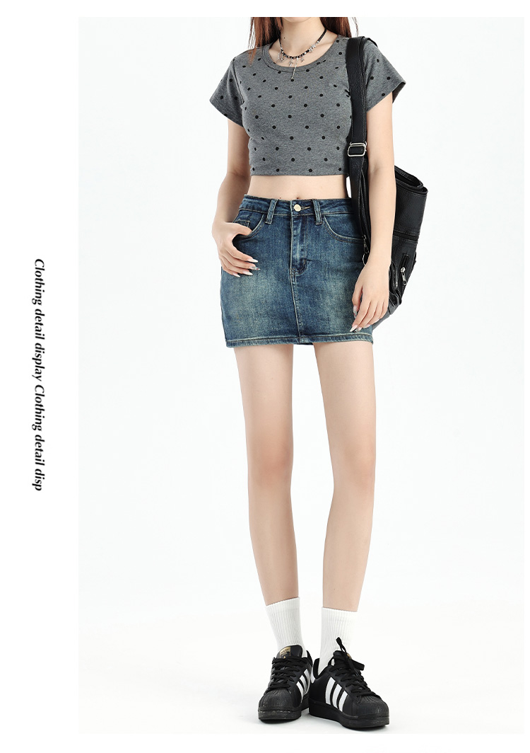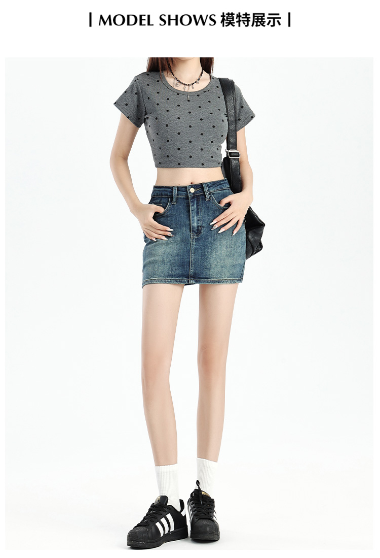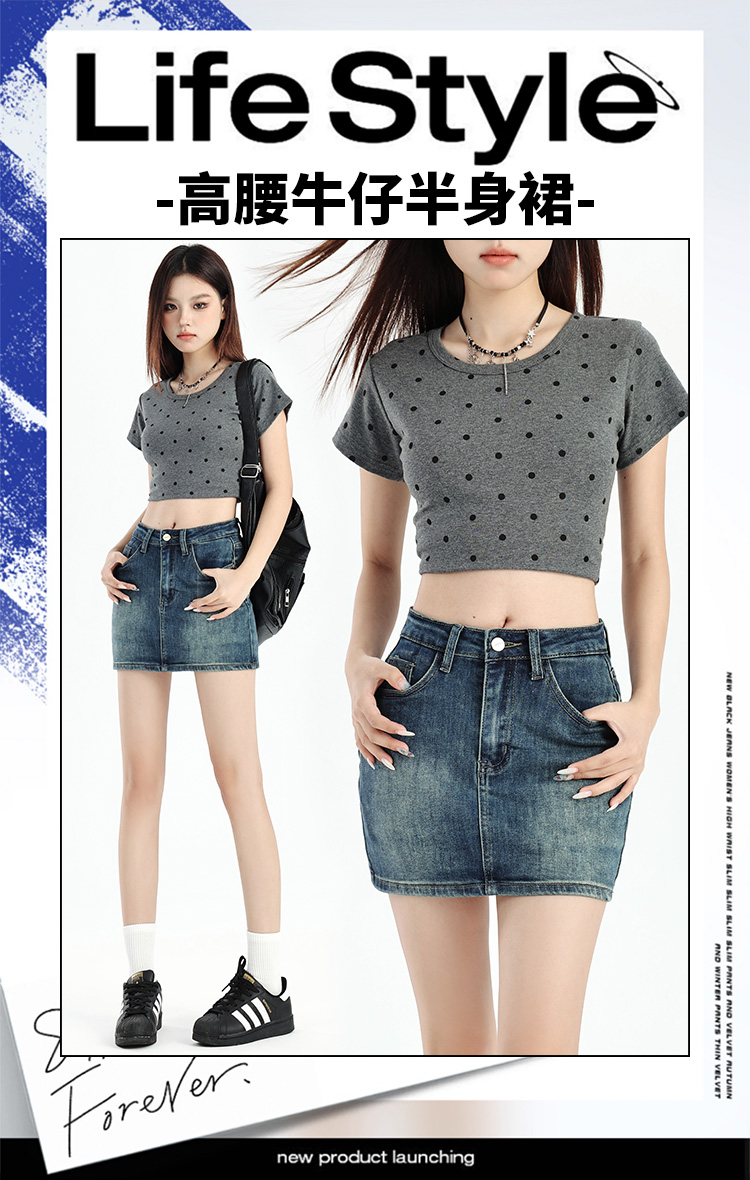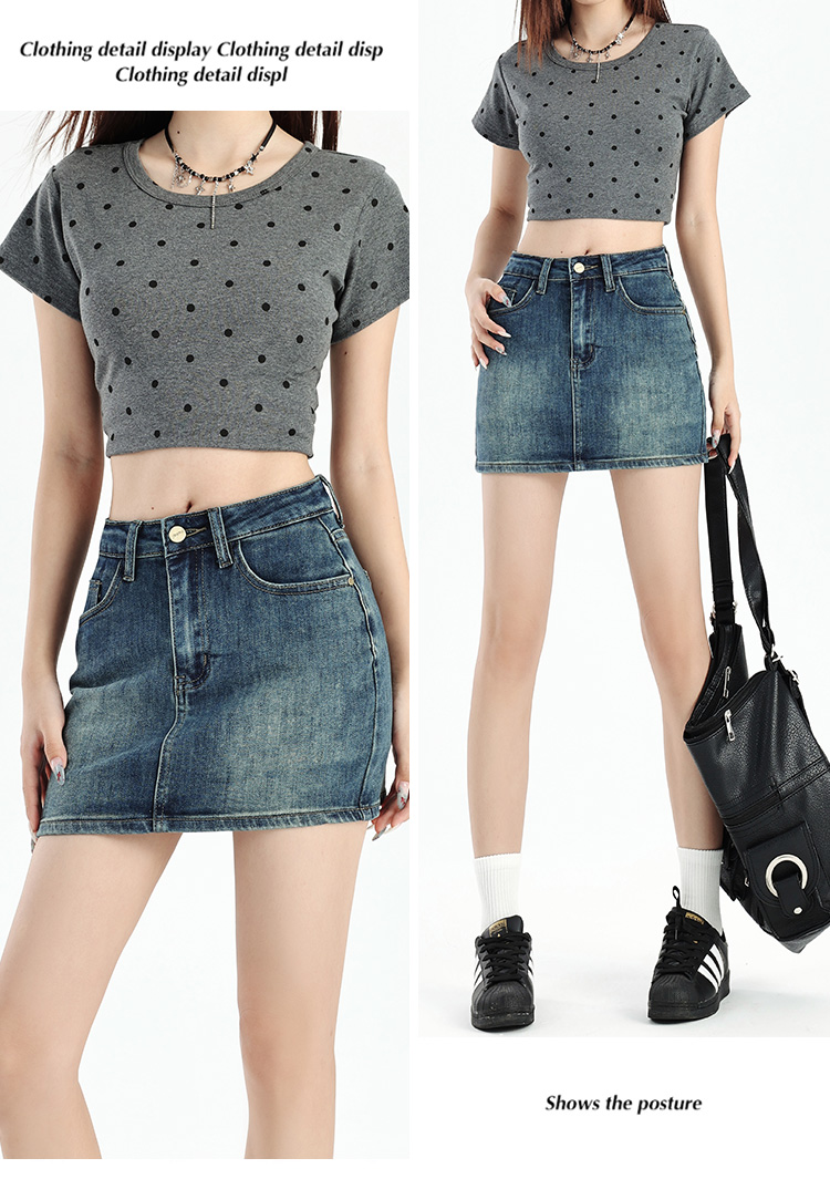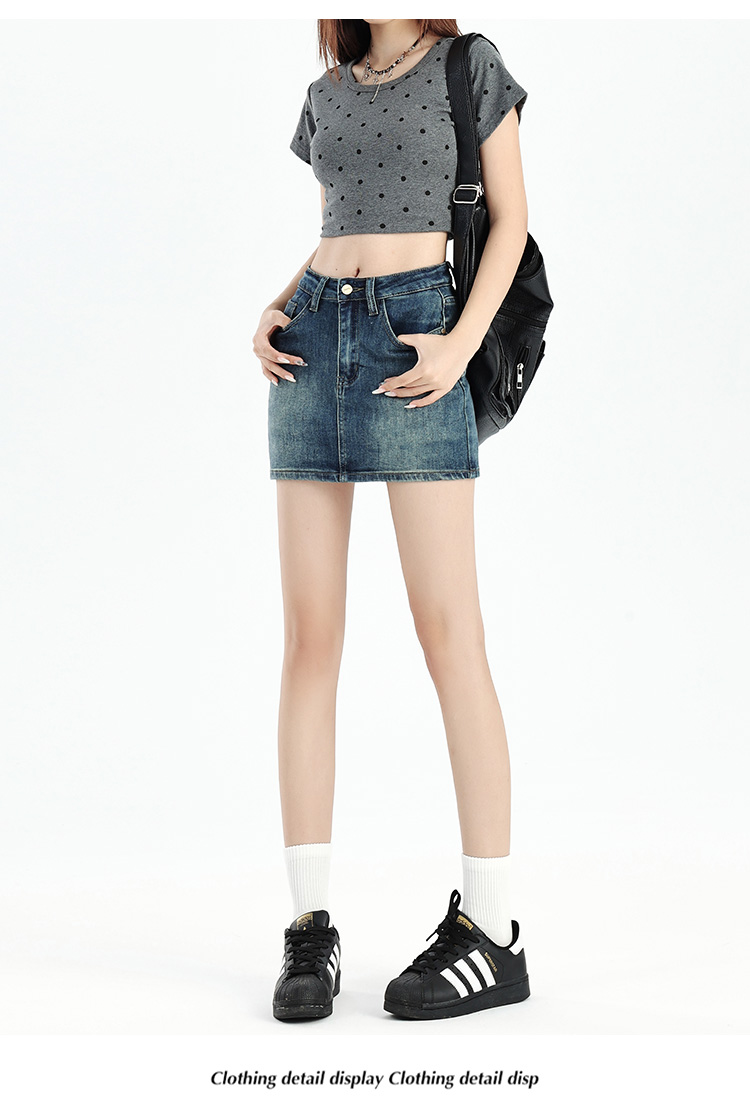 罗蒙女士夏季牛仔裙高腰显瘦短裙简约百搭舒适牛仔裙子女休闲通勤