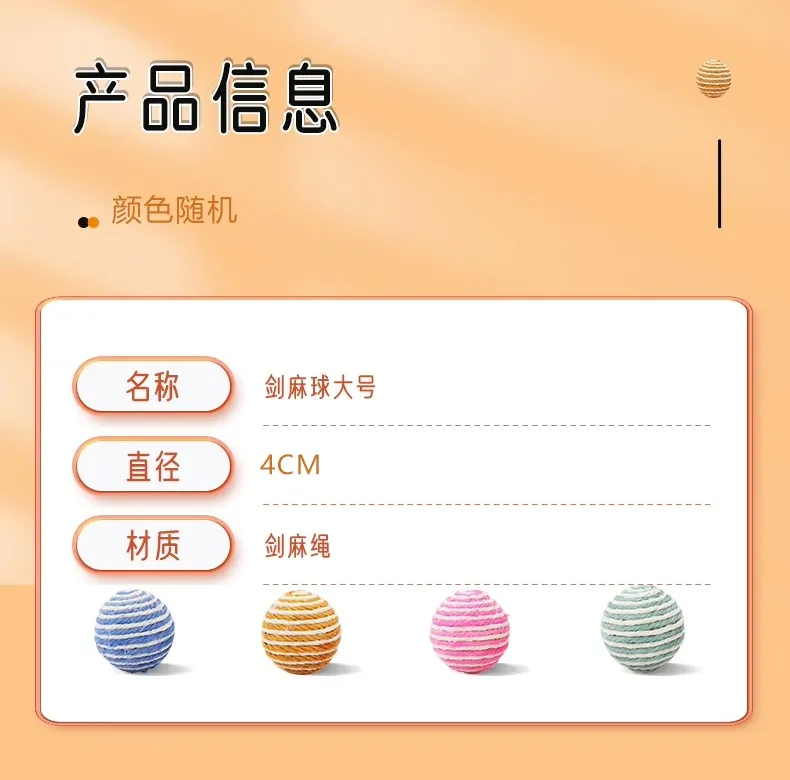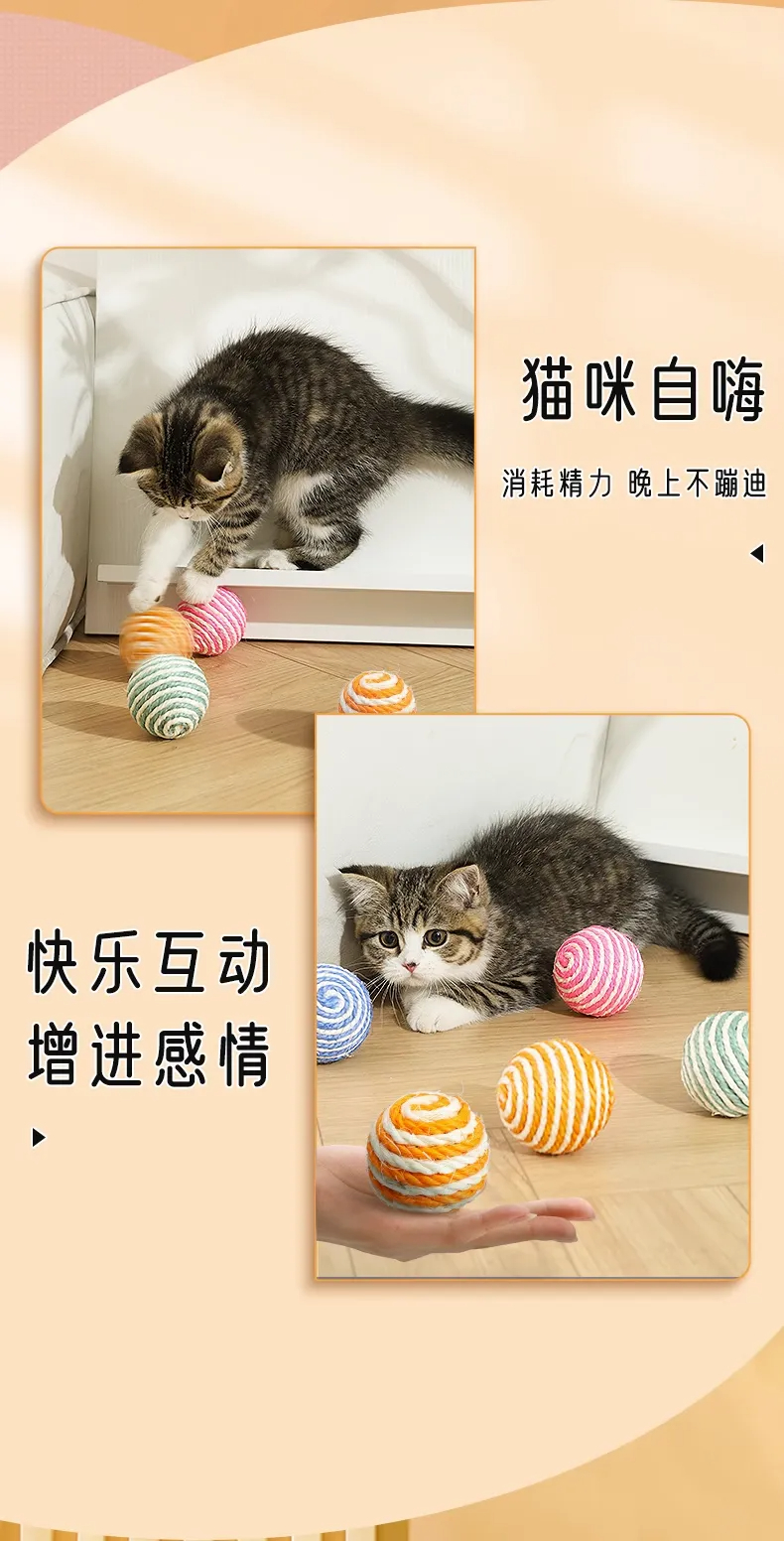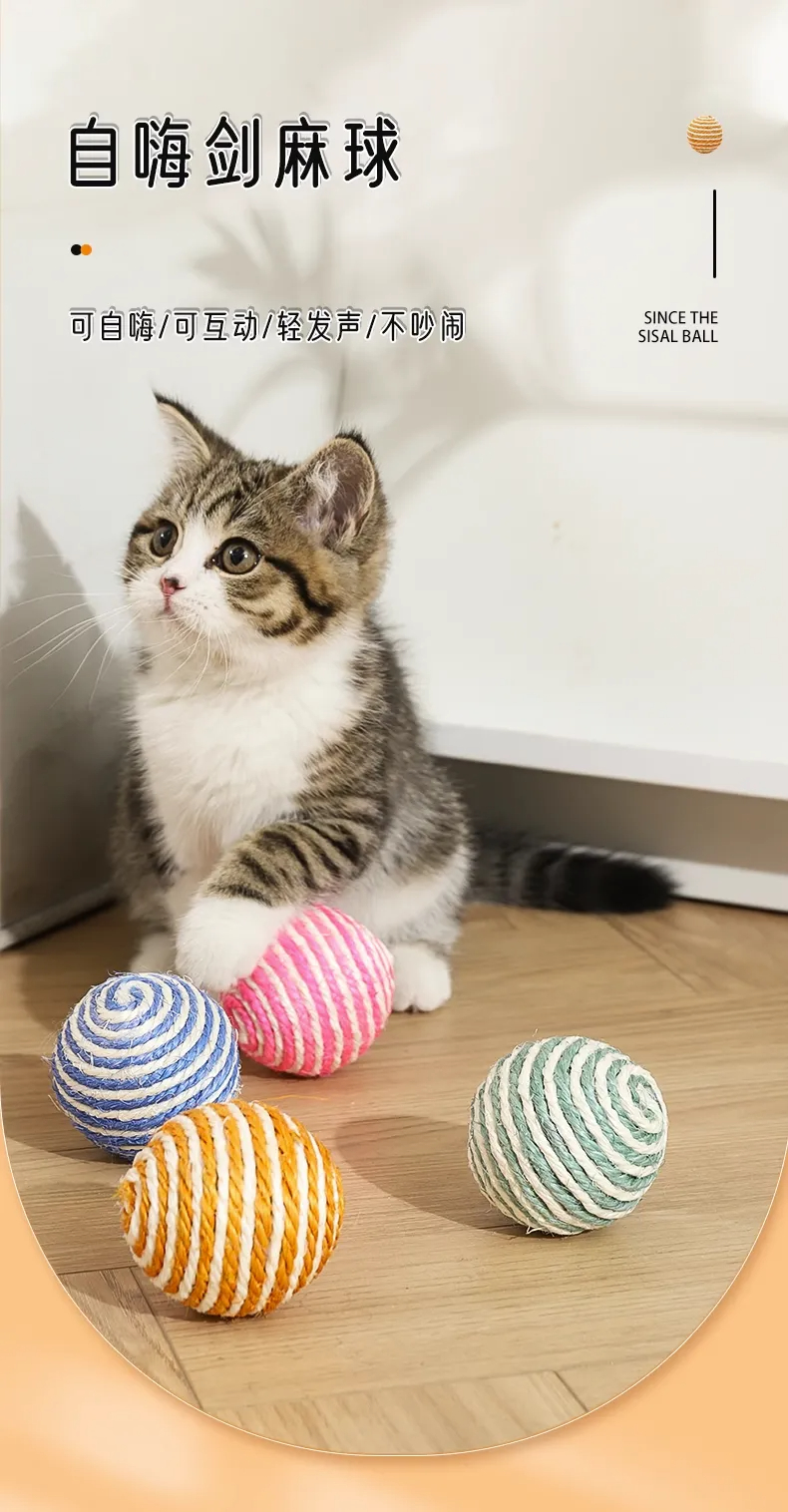 猫咪自嗨玩具啃咬球剑麻球猫玩具磨牙耐咬抓颜色随机1个