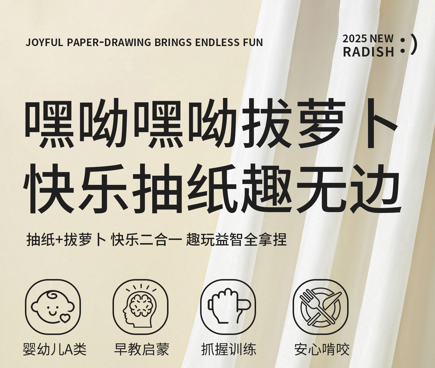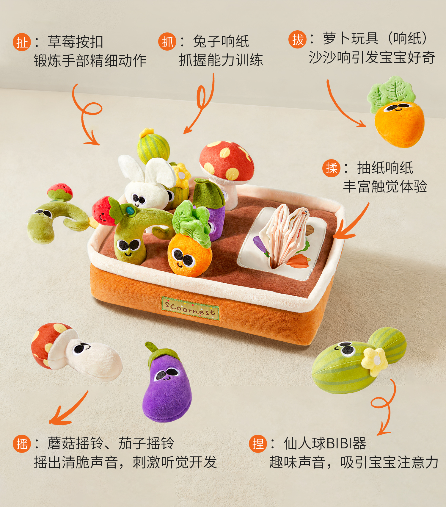 科巢拔萝卜抽纸婴儿玩具宝宝可啃咬0到1岁儿童早教新生婴儿礼物摇铃