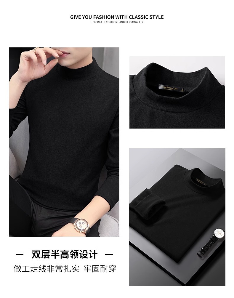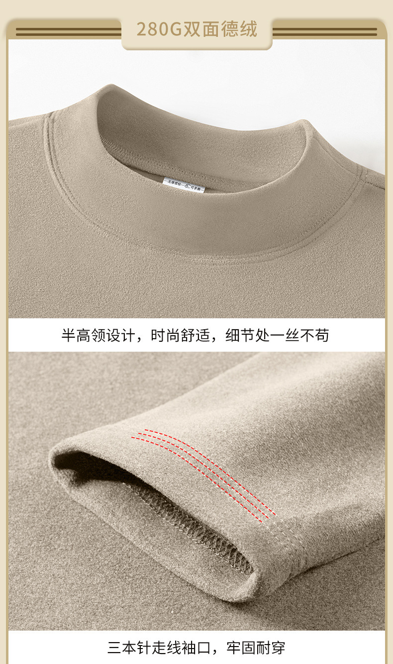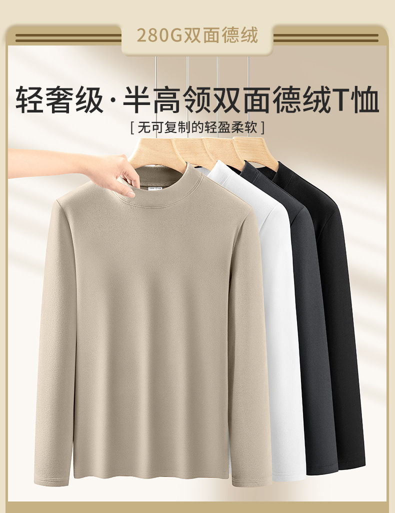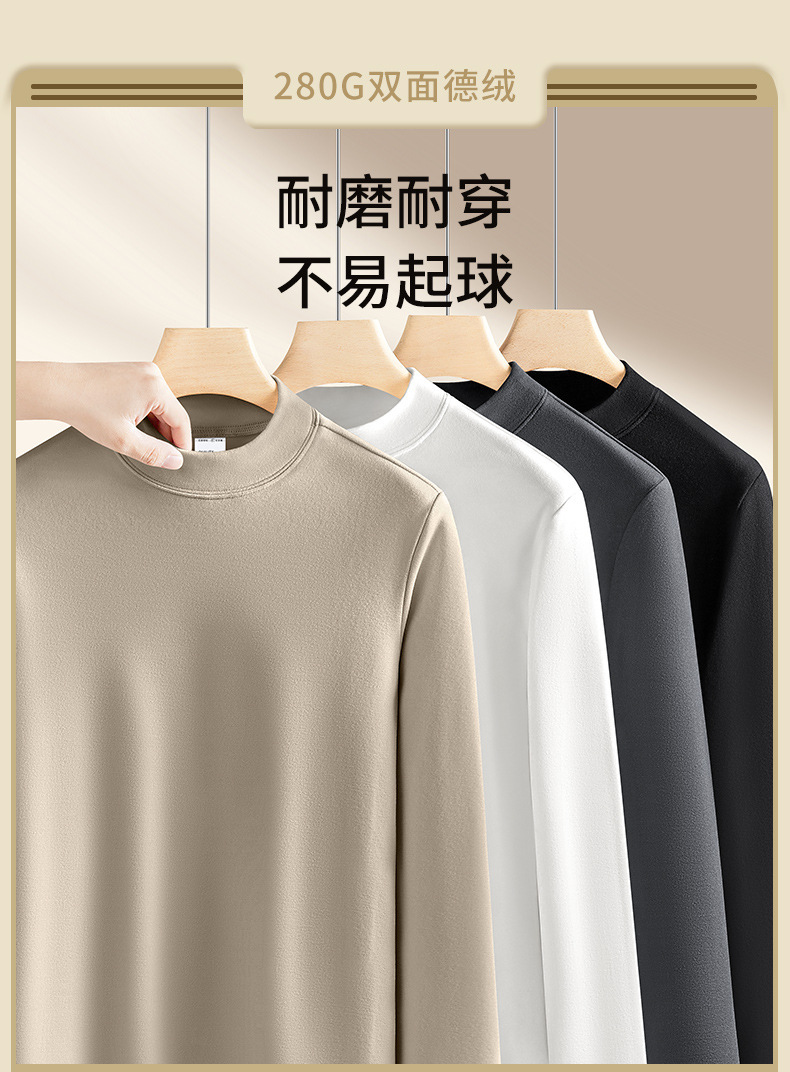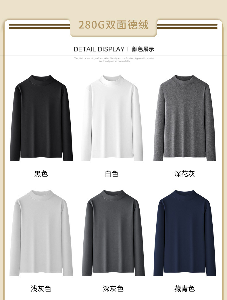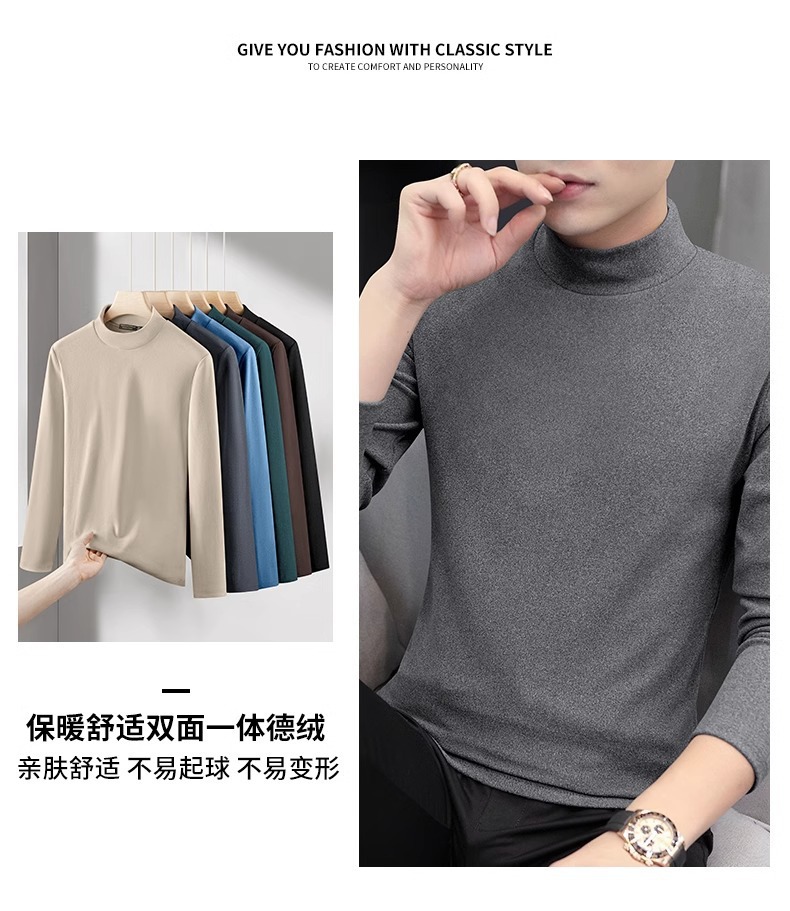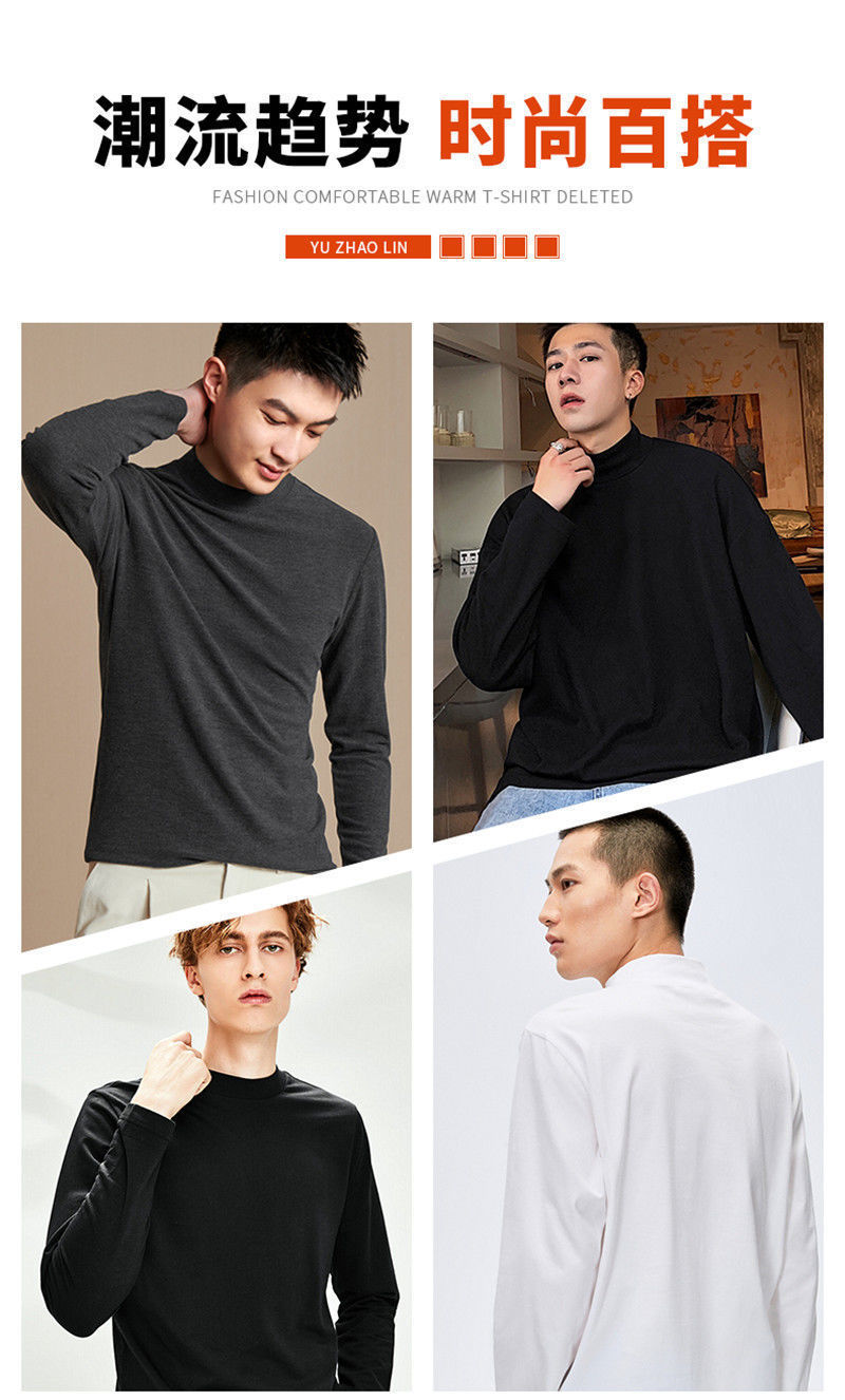 【买一送一】超值2件装 防静电蓄热速暖男士打底衫 秋冬德绒抗菌半高领保暖打底衫男长袖简约内搭双面磨毛加绒上衣男