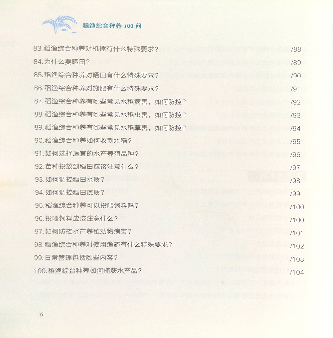 稻渔综合种养100问 种养技术 稻田养殖 问题解答 29629