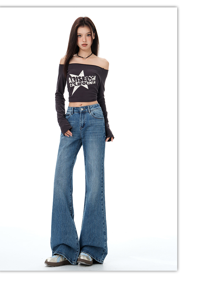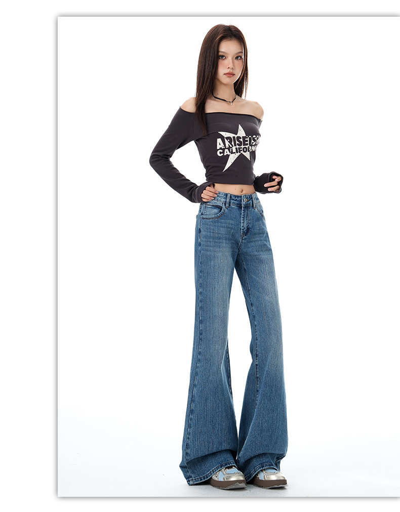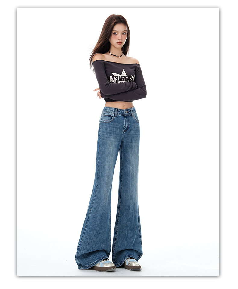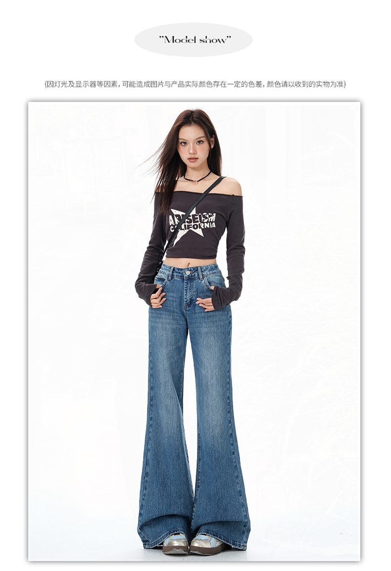 罗蒙秋冬女士牛仔裤复古微喇牛仔裤显瘦垂感拖地长裤