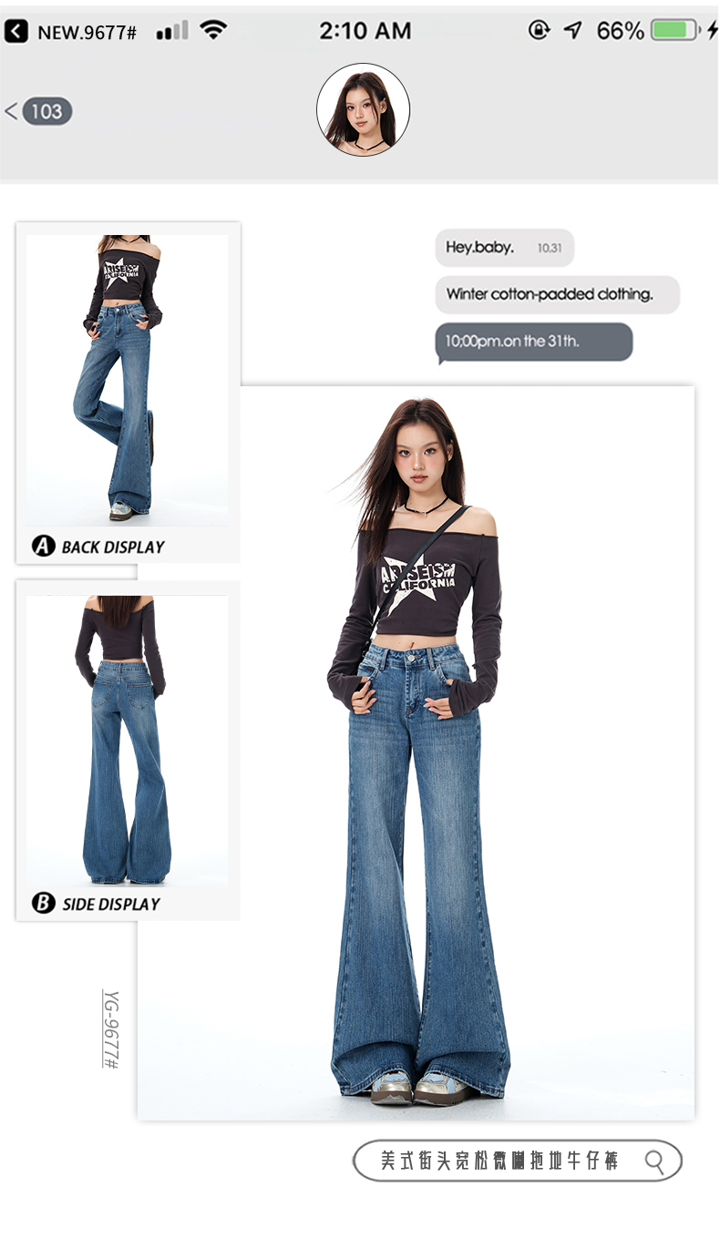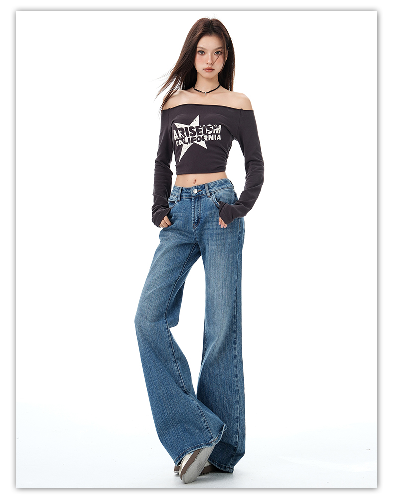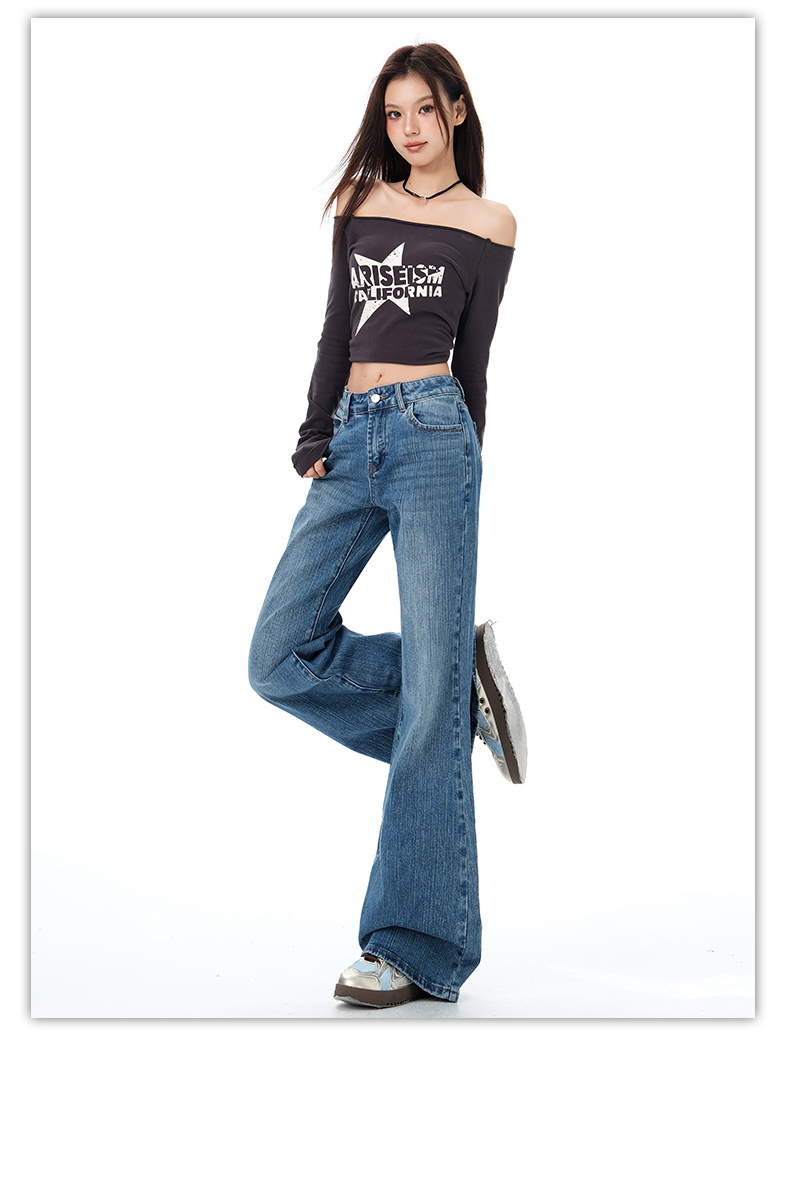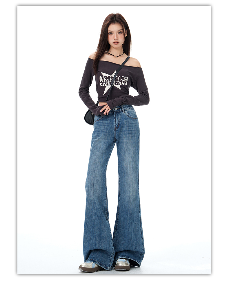 罗蒙秋冬女士牛仔裤复古微喇牛仔裤显瘦垂感拖地长裤