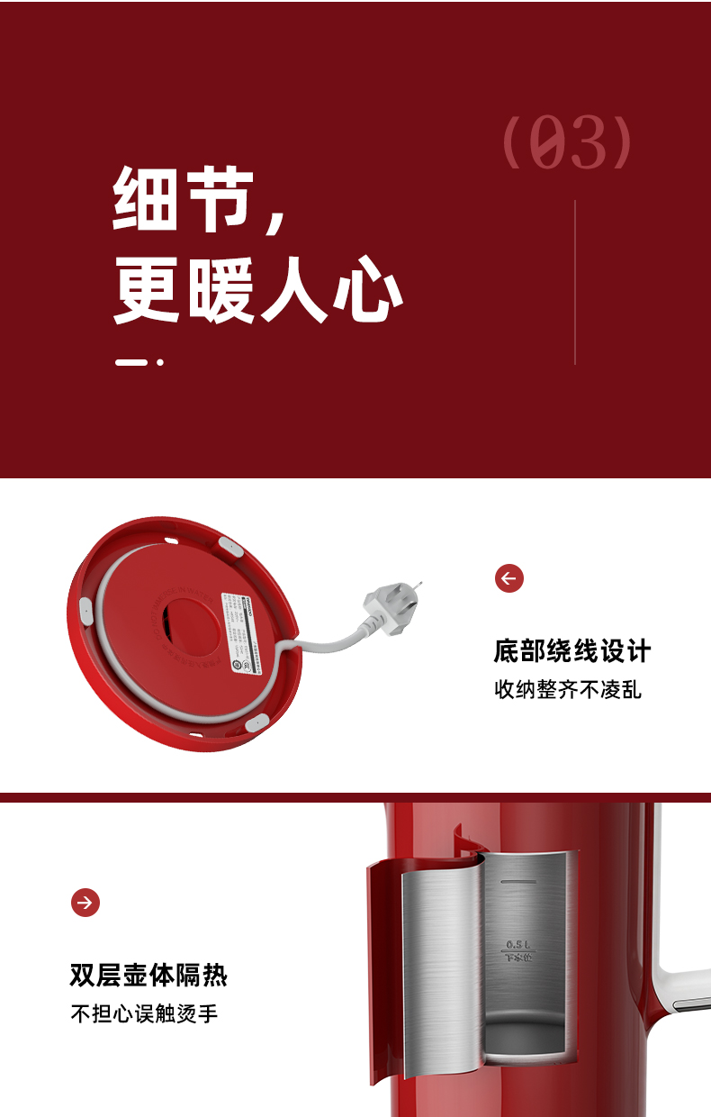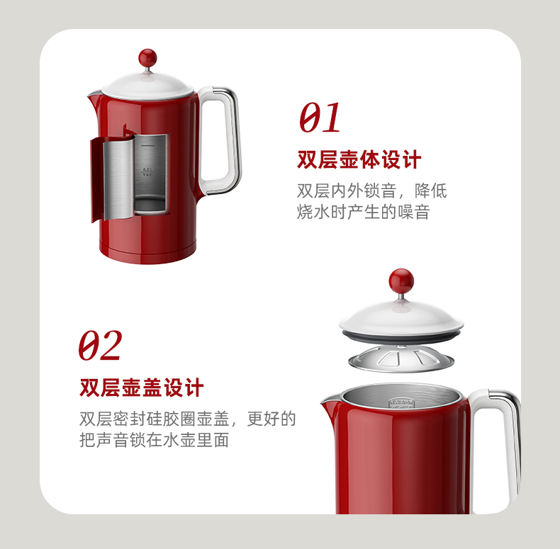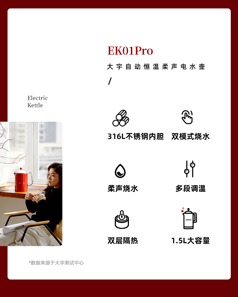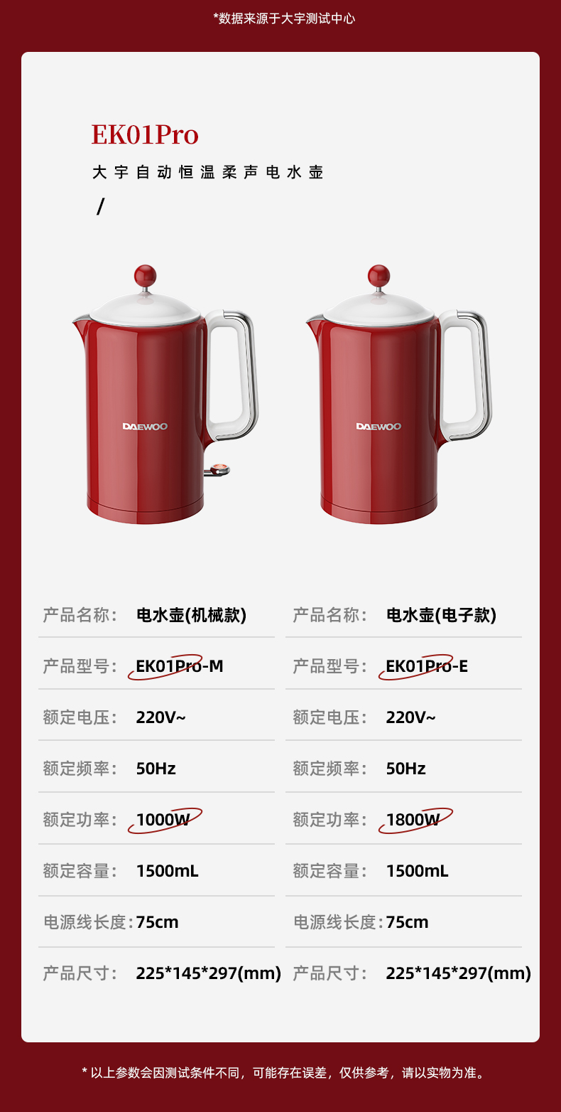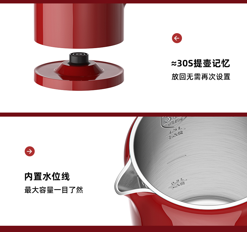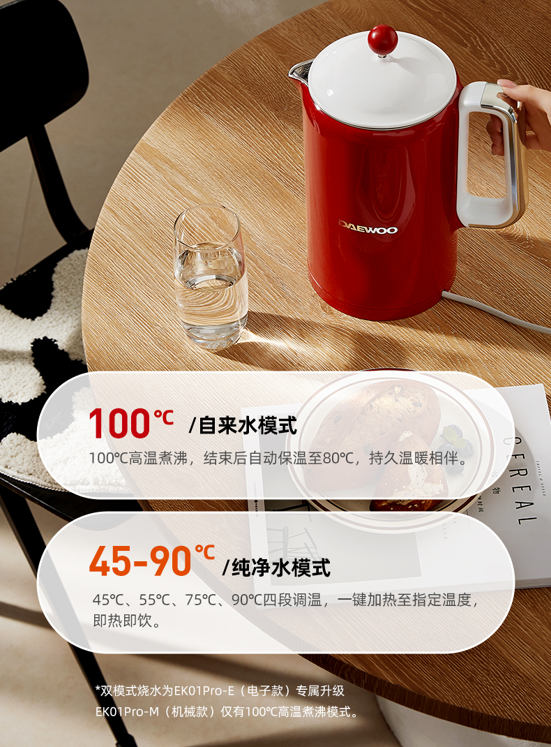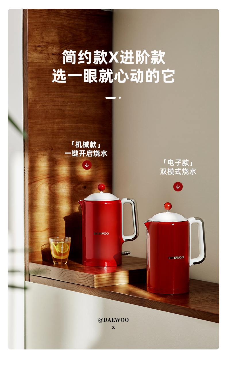 大宇电热水壶机械款热水壶家用烧水壶全一体不锈钢大容量EK01