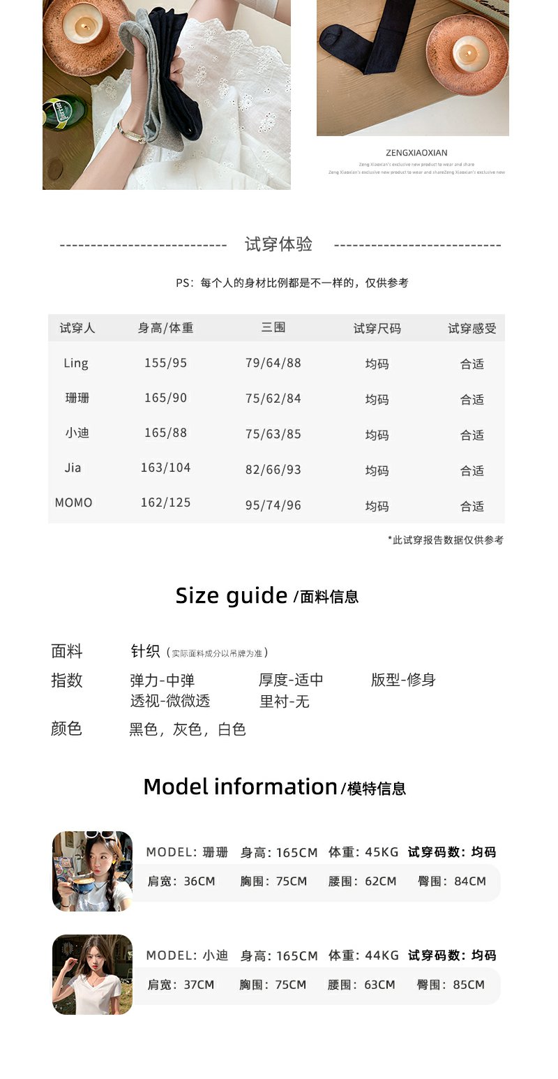 <曾小咸推荐>3色薄袜子韩系百搭显瘦纯色中筒袜