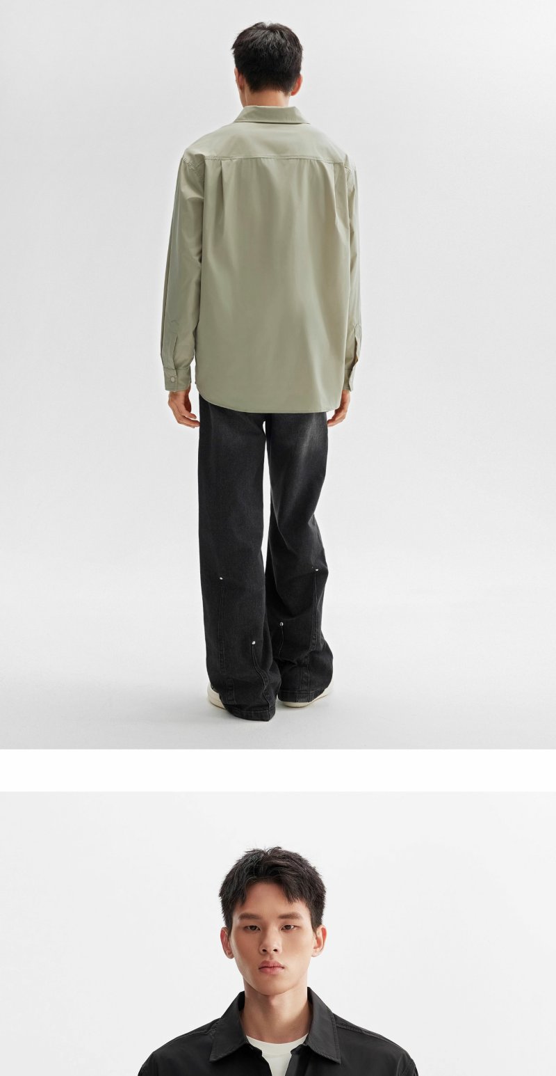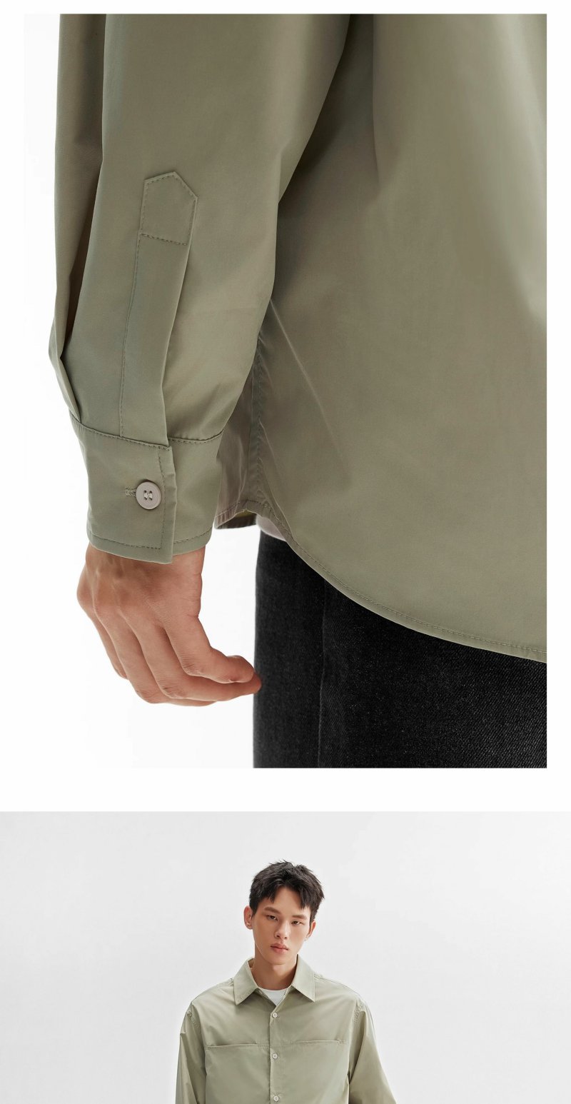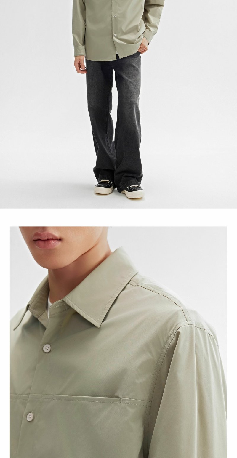 CHINISM折扣季 轻薄长袖衬衫男秋季新款浅绿色美式休闲男生衬衣 商品图2