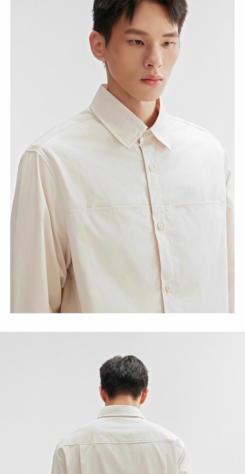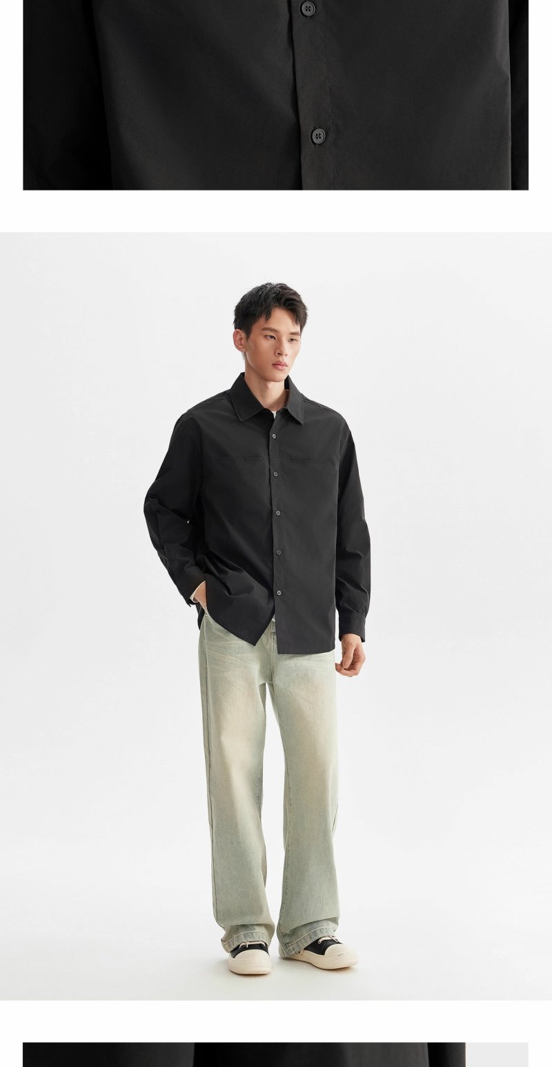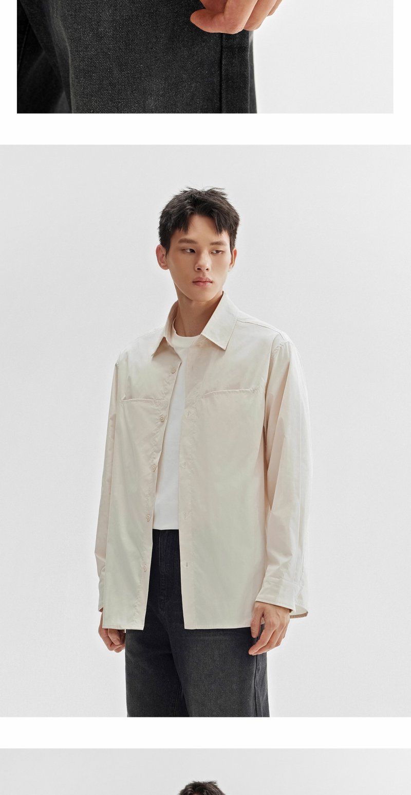CHINISM折扣季 轻薄长袖衬衫男秋季新款浅绿色美式休闲男生衬衣 商品图2