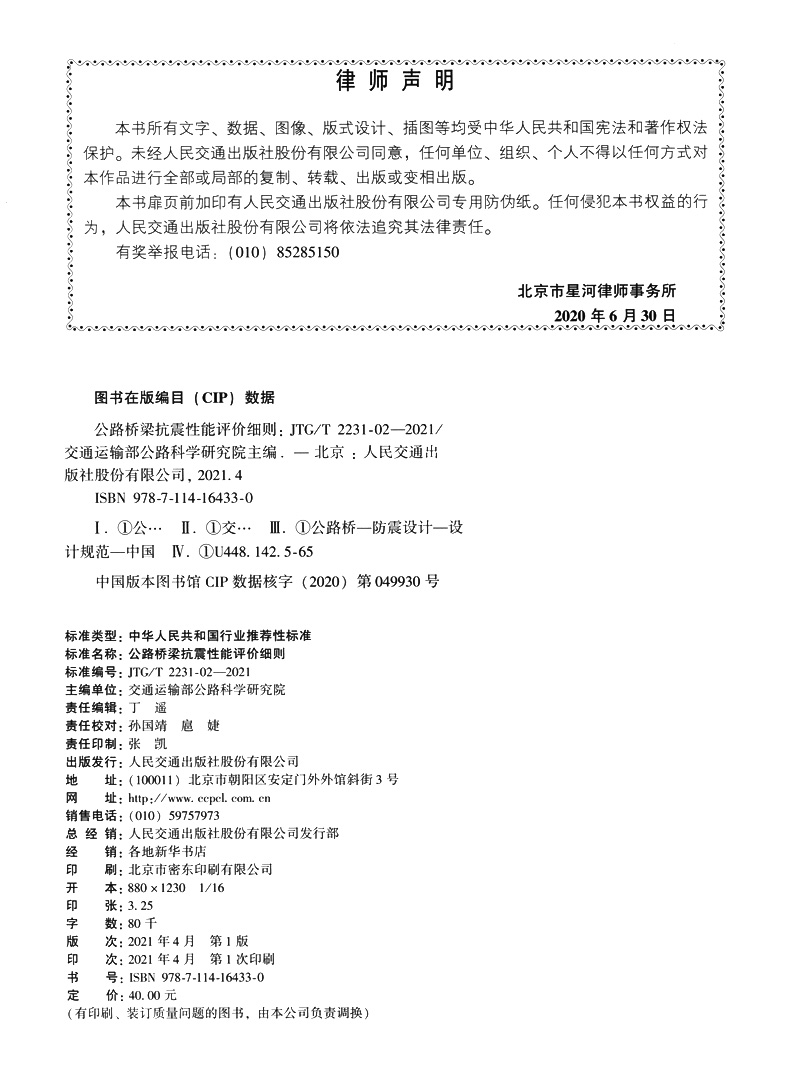 书名:公路桥梁抗震性能评价细则(JTG/T 2231-02—2021)