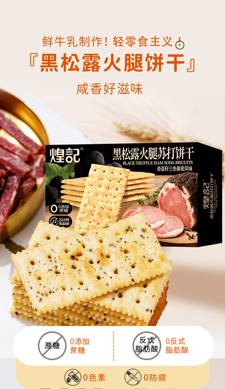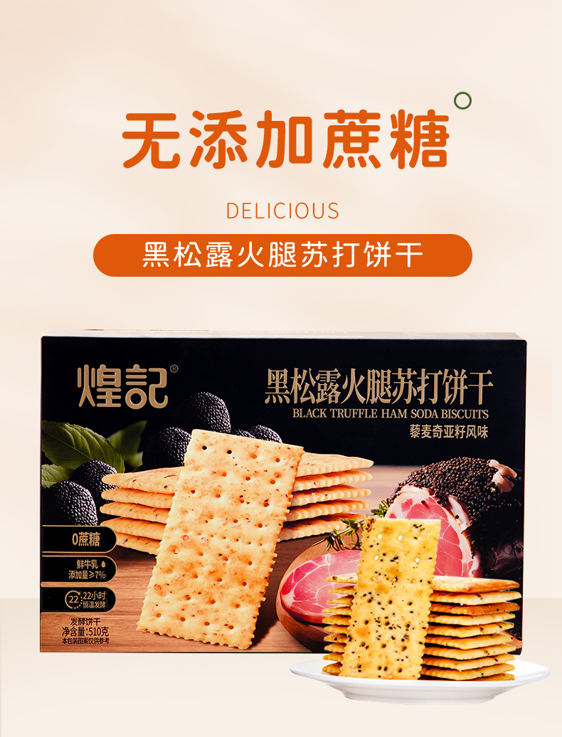 煌记 黑松露火腿苏打饼干0蔗糖510g