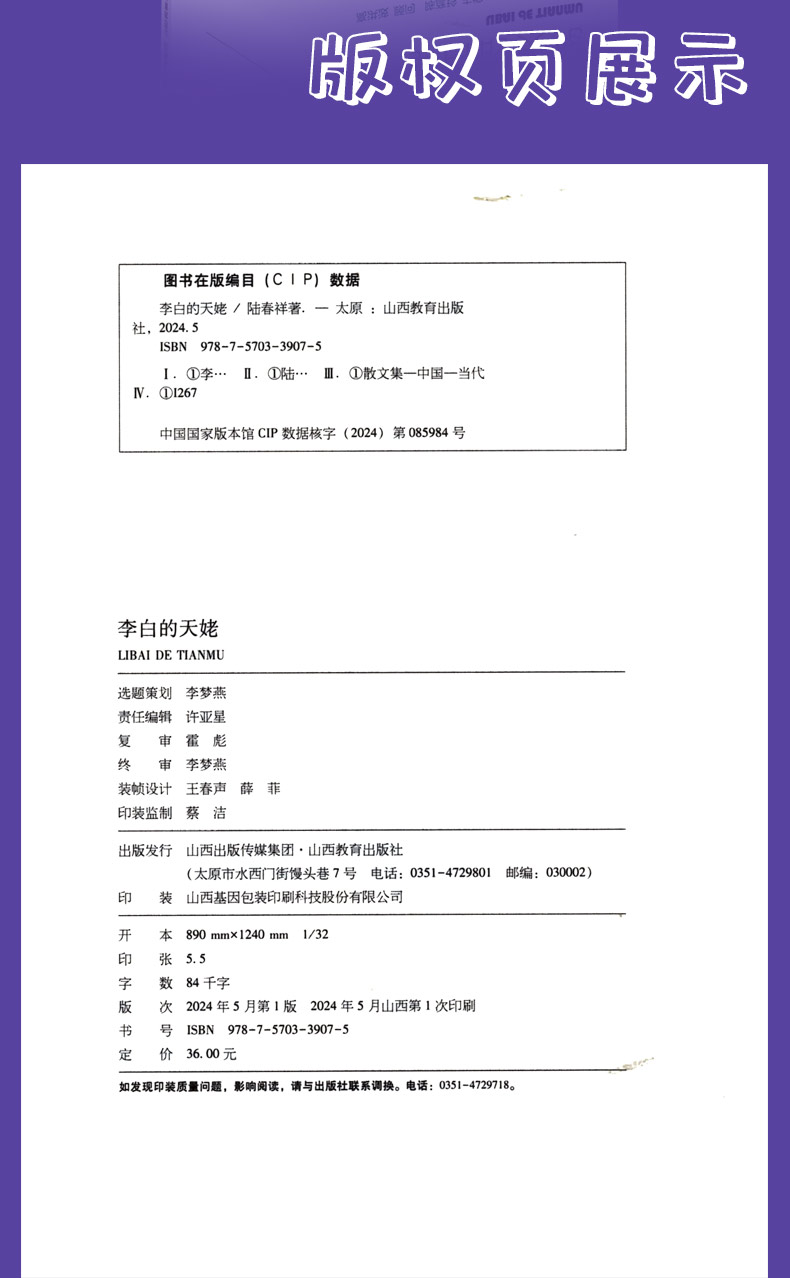 正版 阳光麦田第三季 李白的天姥 陆春祥著 中国当代散文集 山西教育出版社出版