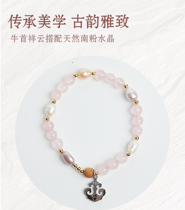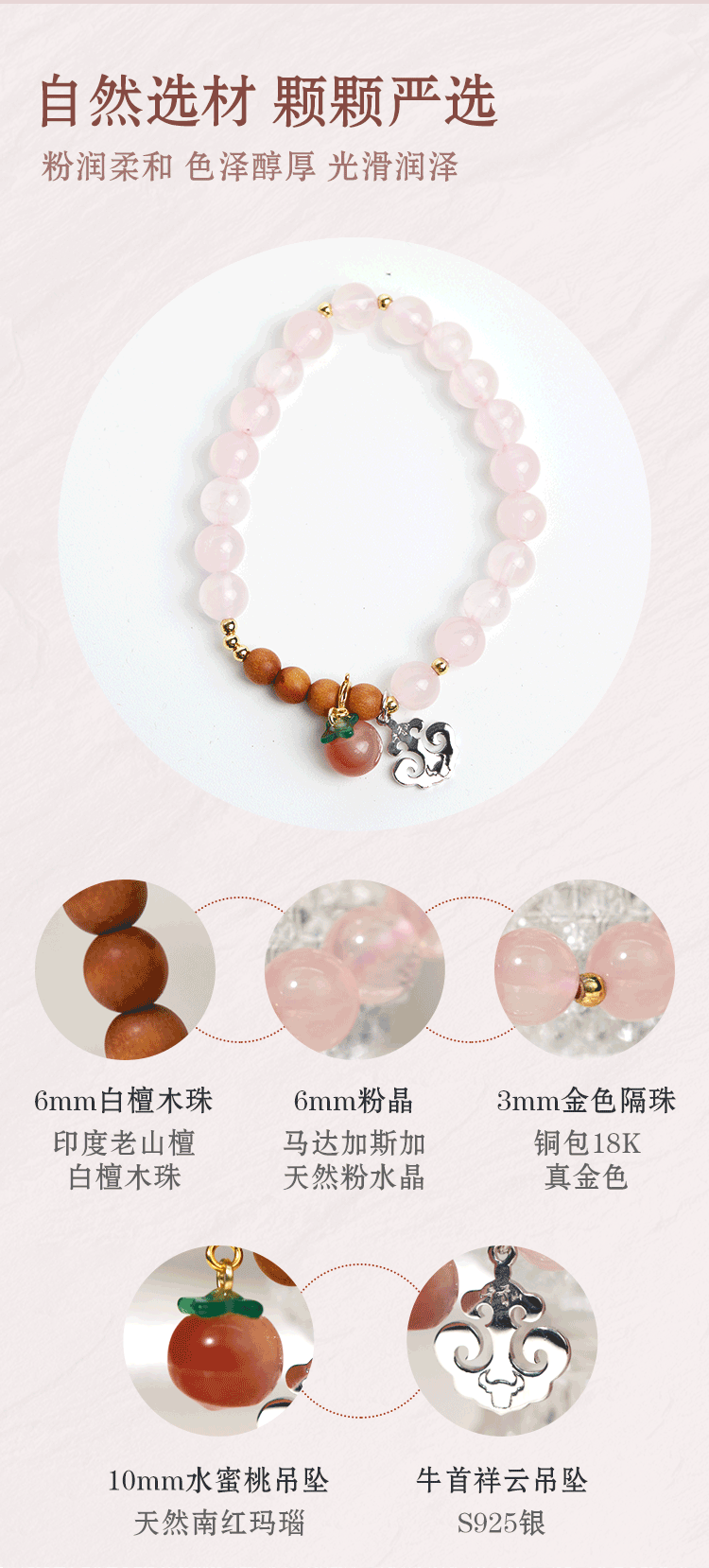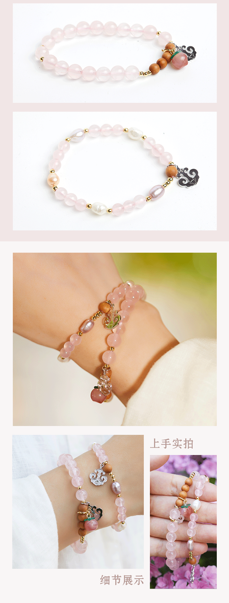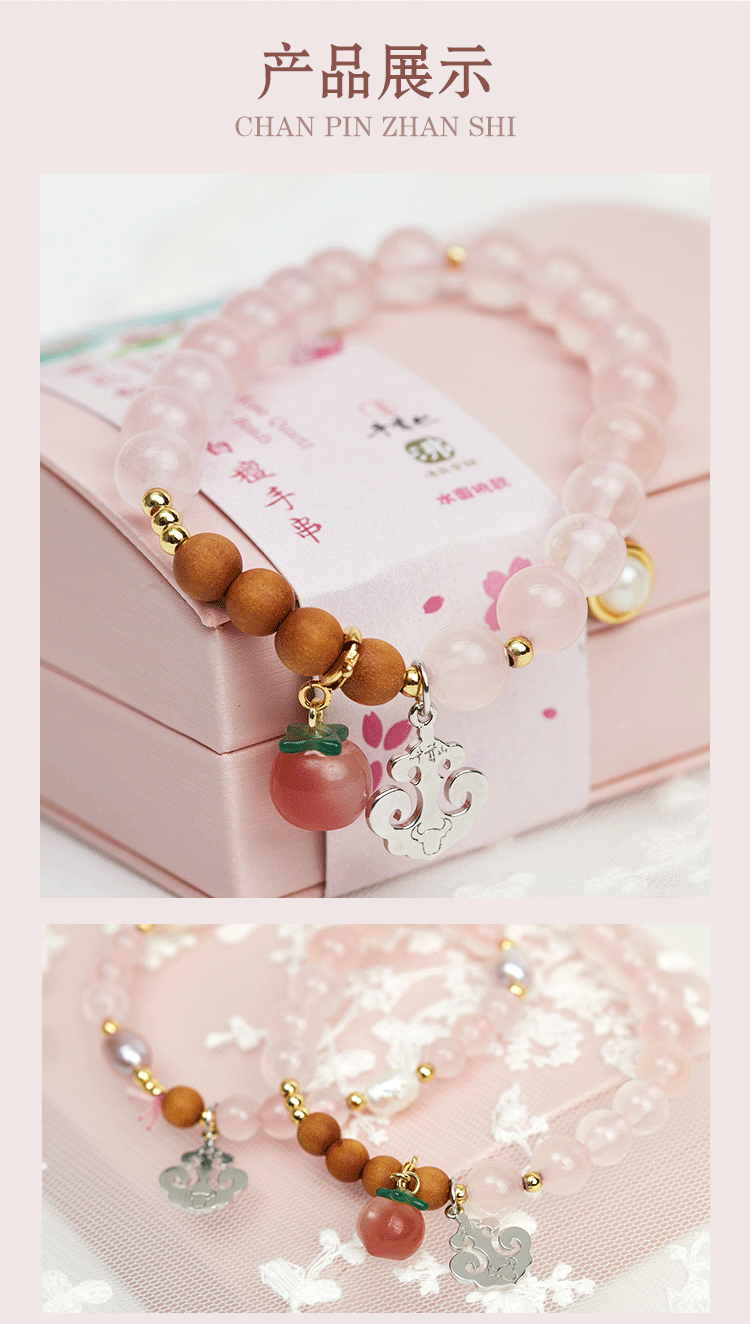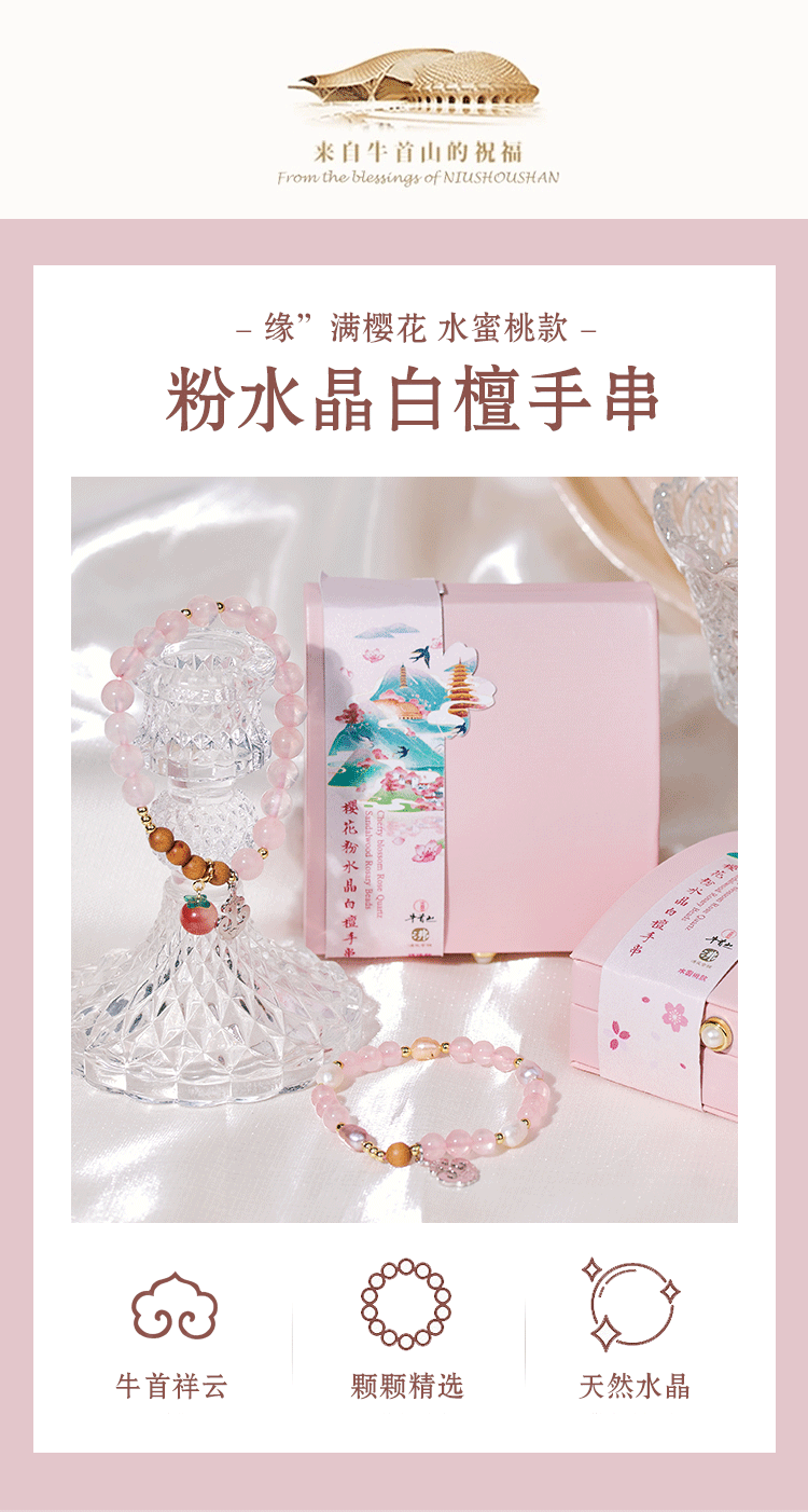 牛首山缘满樱花粉水晶白檀手串手链古韵雅致粉润柔和吉祥礼物纪念