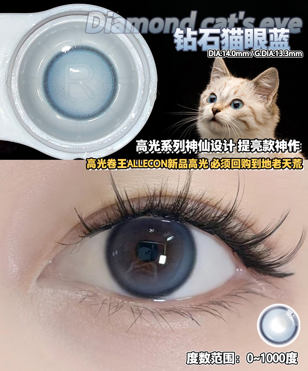 allecon 钻石猫眼蓝 半年抛 2片 14.0mm 着色13.4mm 基弧8.6 含水38% 韩国进口