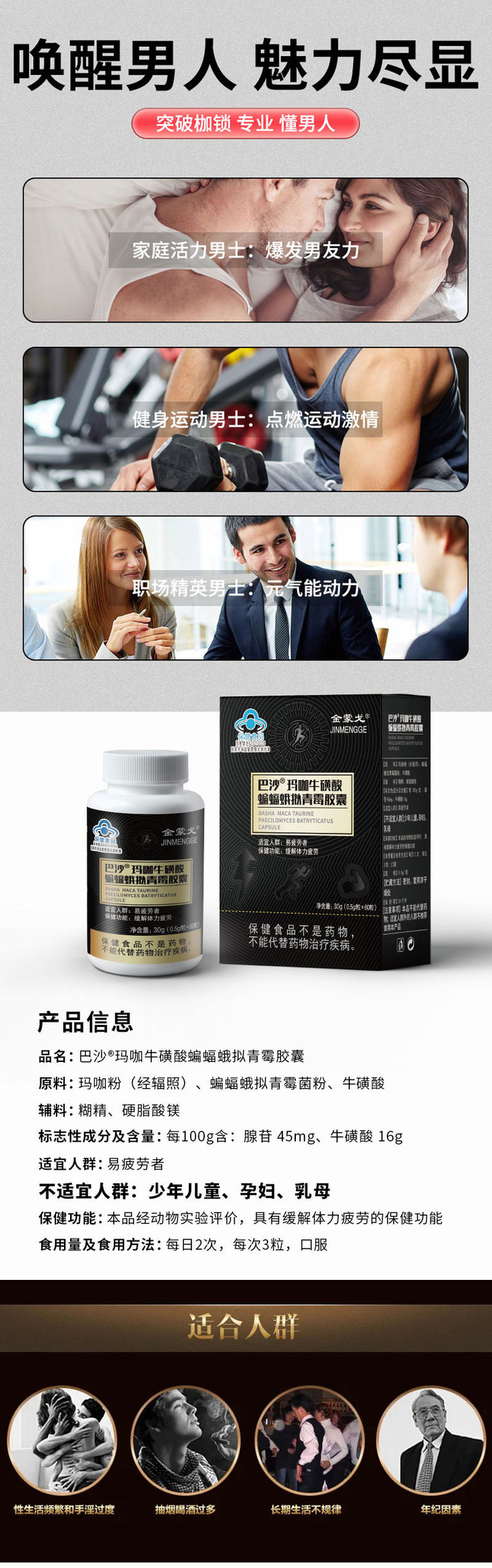 巴沙玛咖(黑武士促睾) 男性片剂 功能用品 蓝帽男性滋补 睾酮 健身 撸铁 精力