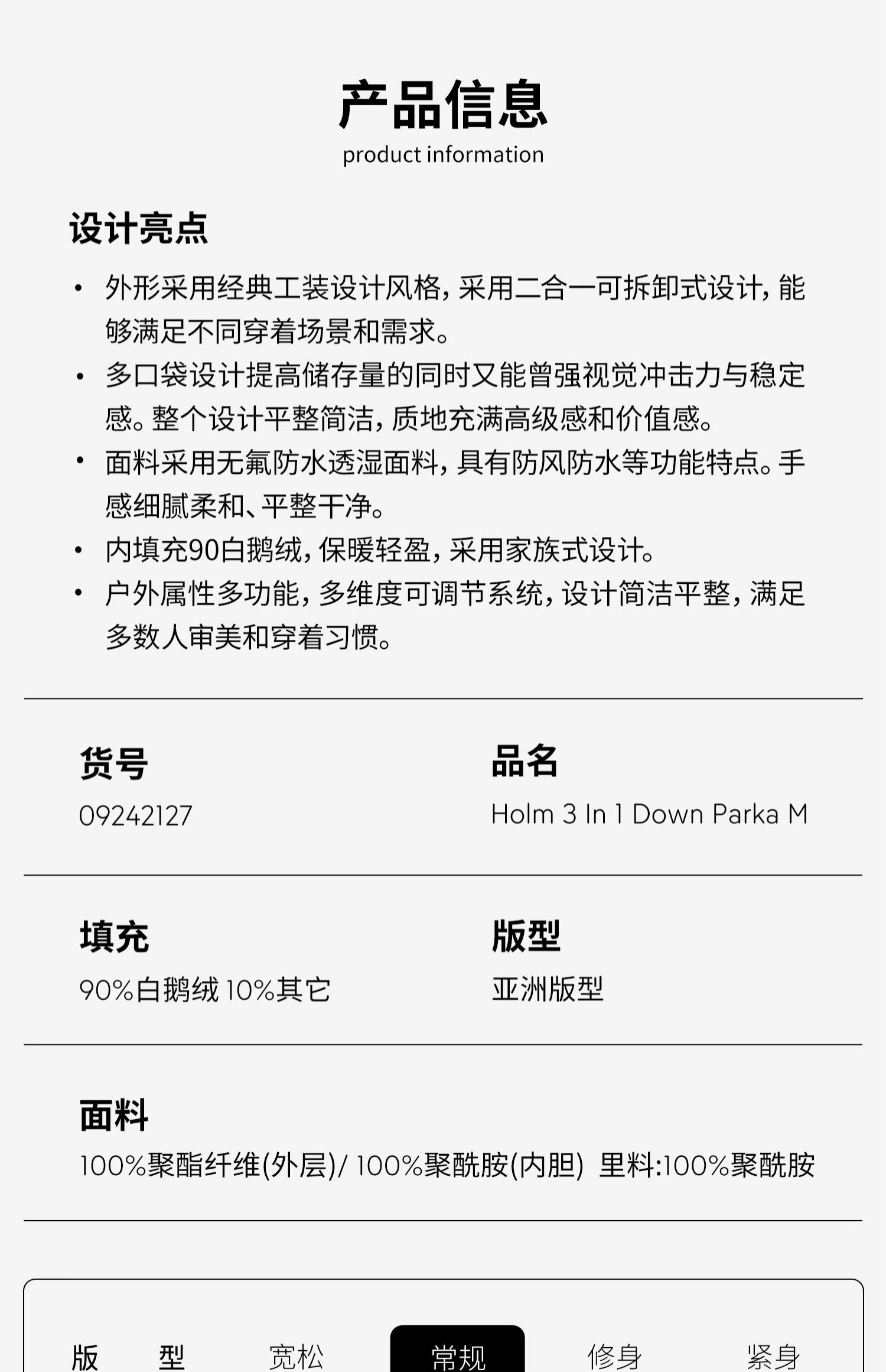 北极狐 防水冲锋衣 羽绒内胆两件套 男士户外保暖防风衣09242127