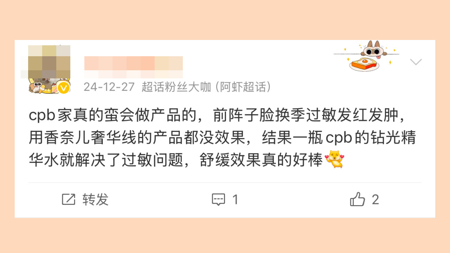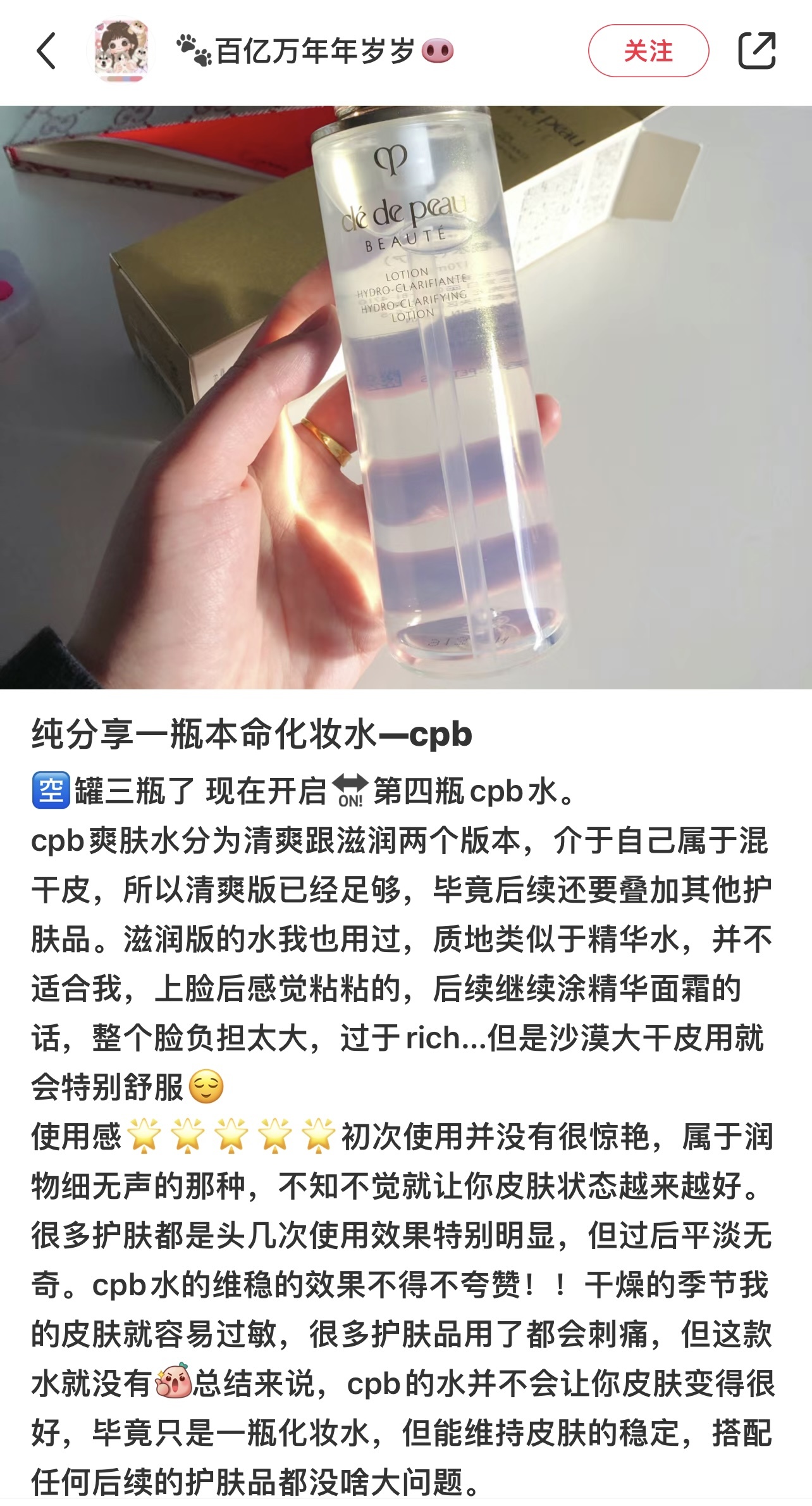 钻光精华水里含有CPB家灵魂成分亮肌赋活精粹