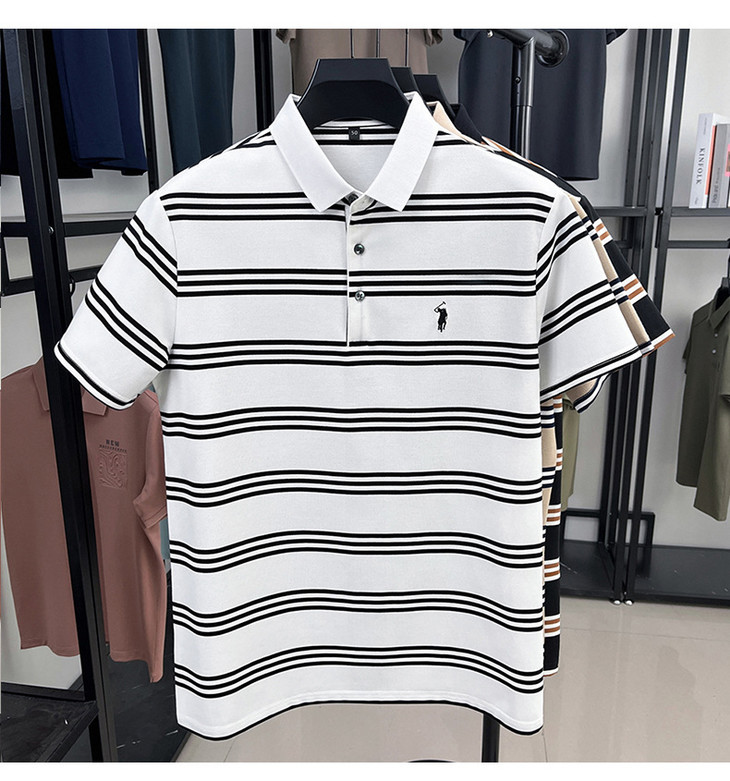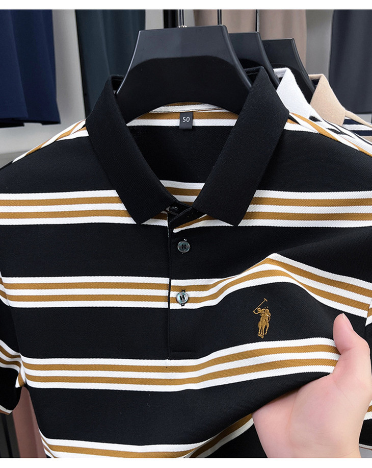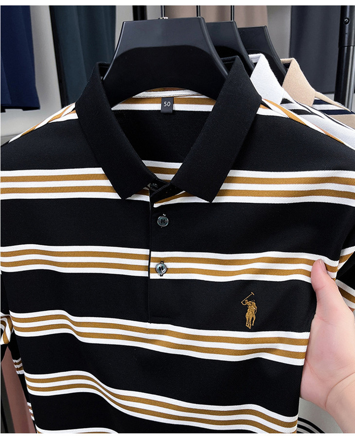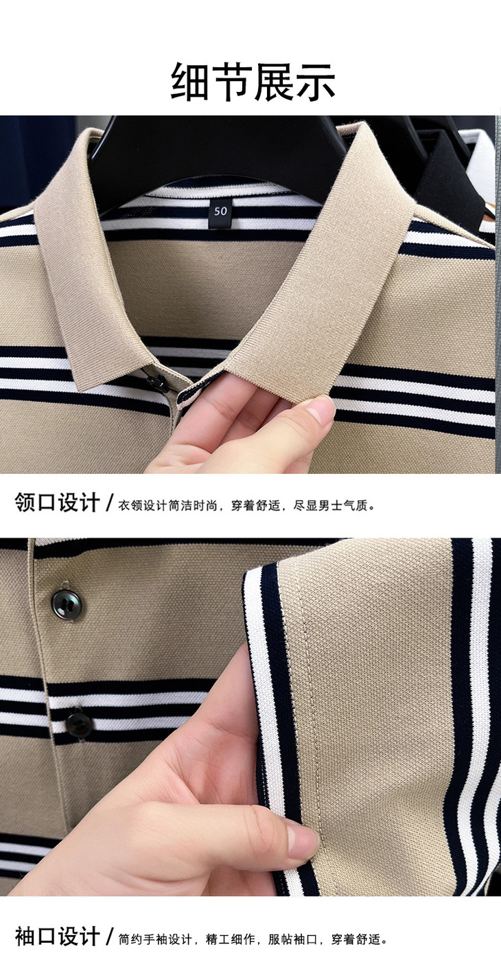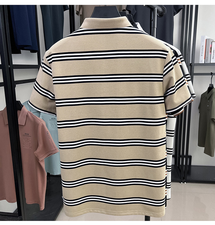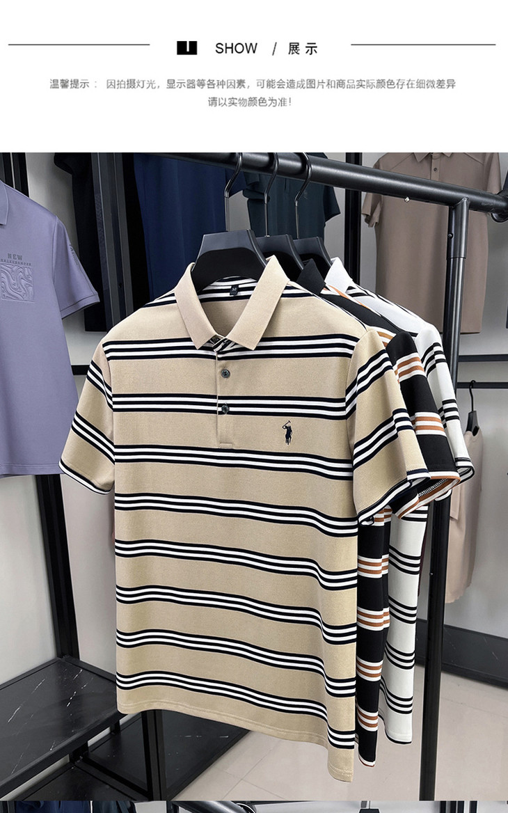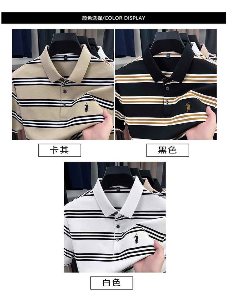 夏季条纹提花polo衫男色织条棉t恤男短袖