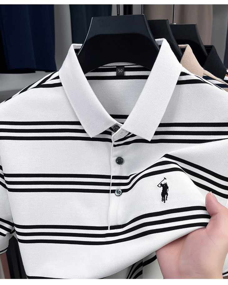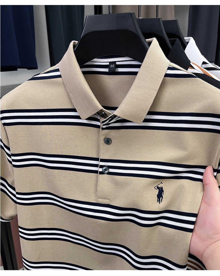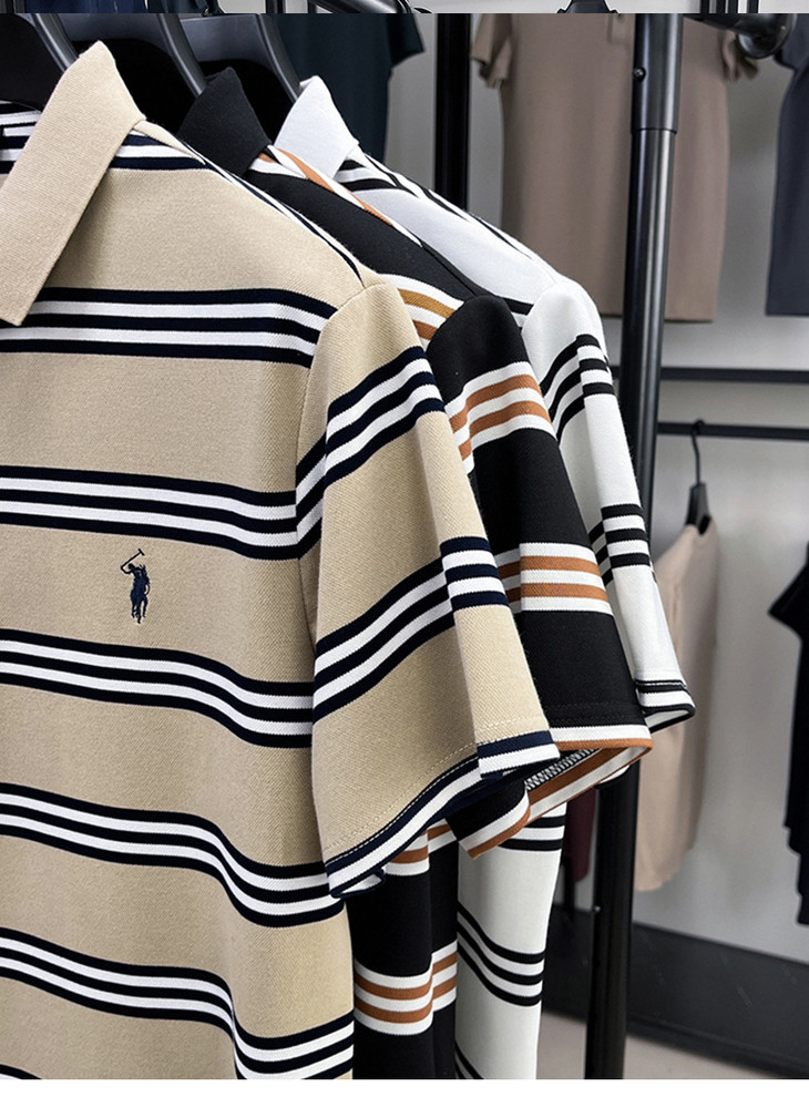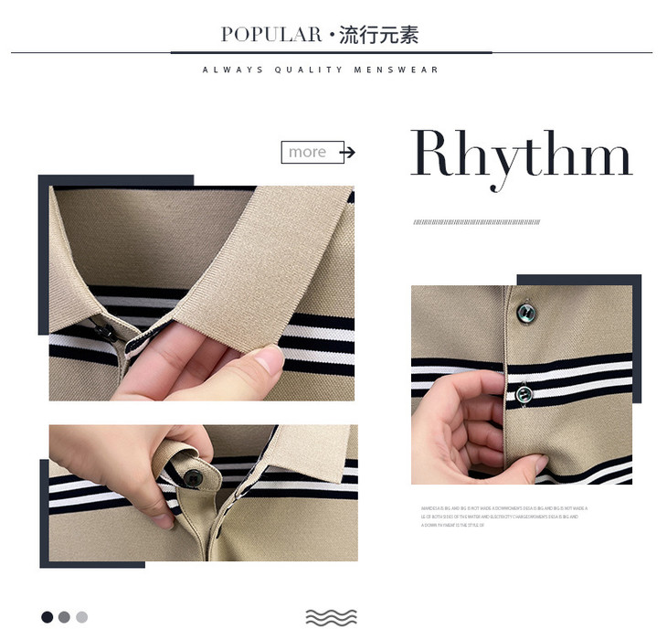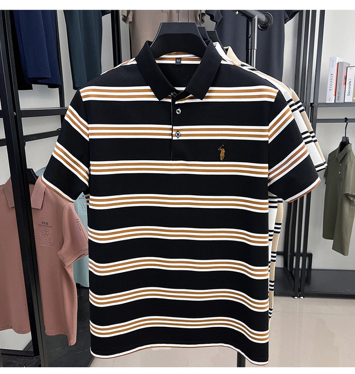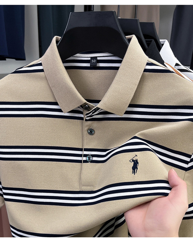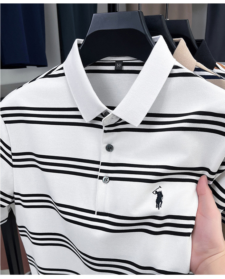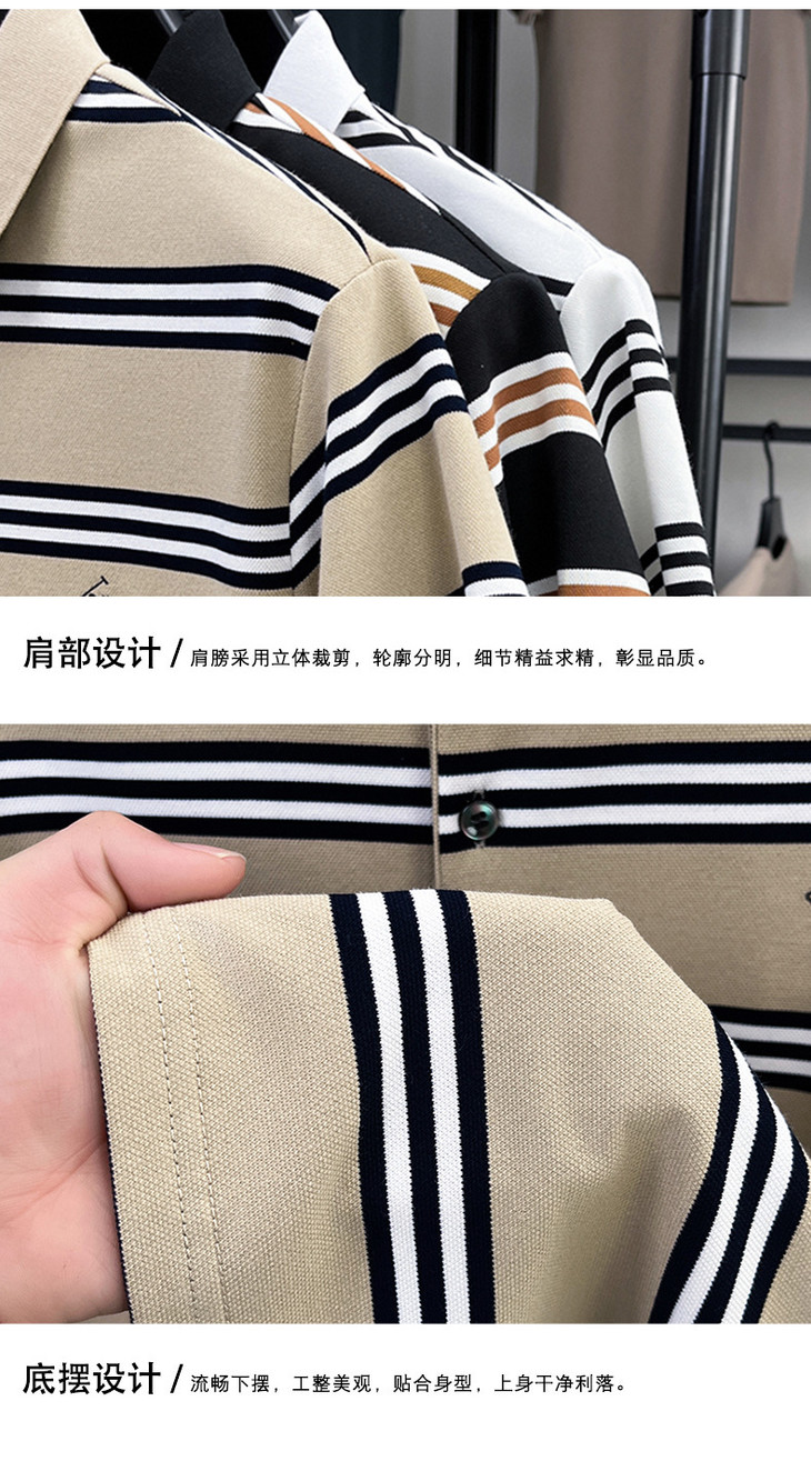 夏季条纹提花polo衫男色织条棉t恤男短袖