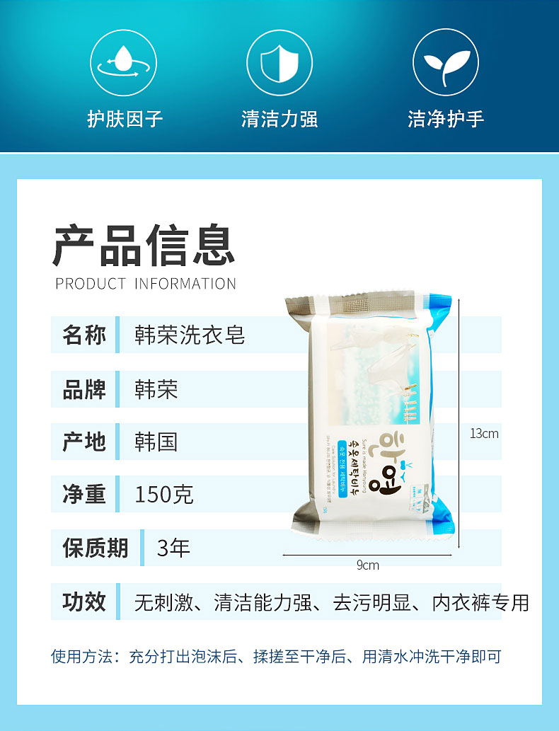 【中欧班列】XDR 韩国韩荣内衣皂150g 2块