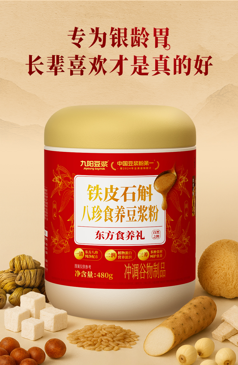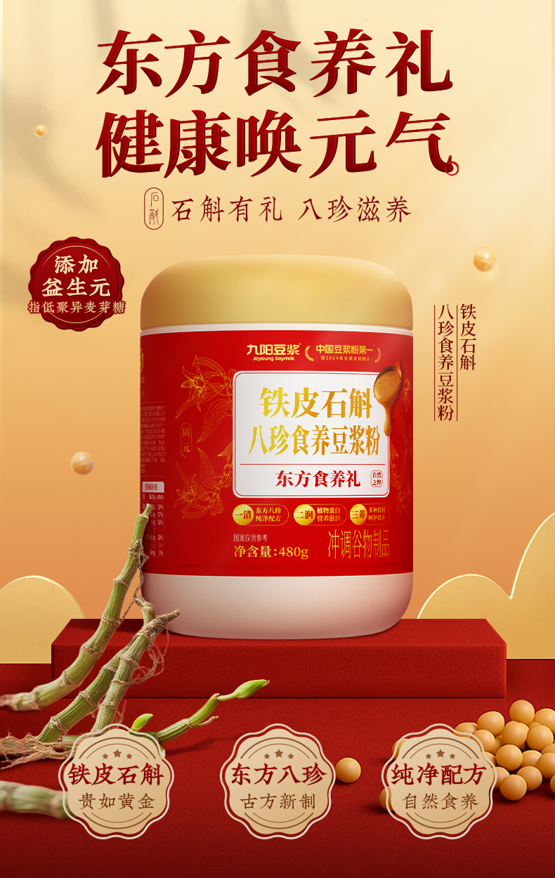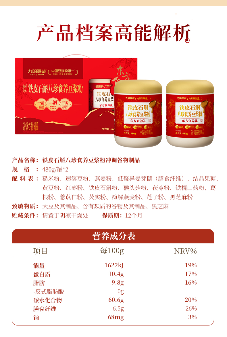 “国民豆浆品牌”九阳豆浆 新年豆浆粉礼盒 五红五黑食养豆浆五福临门礼盒/铁皮石斛八珍食养豆浆礼盒 营养丰富 细腻丝滑 480g/罐