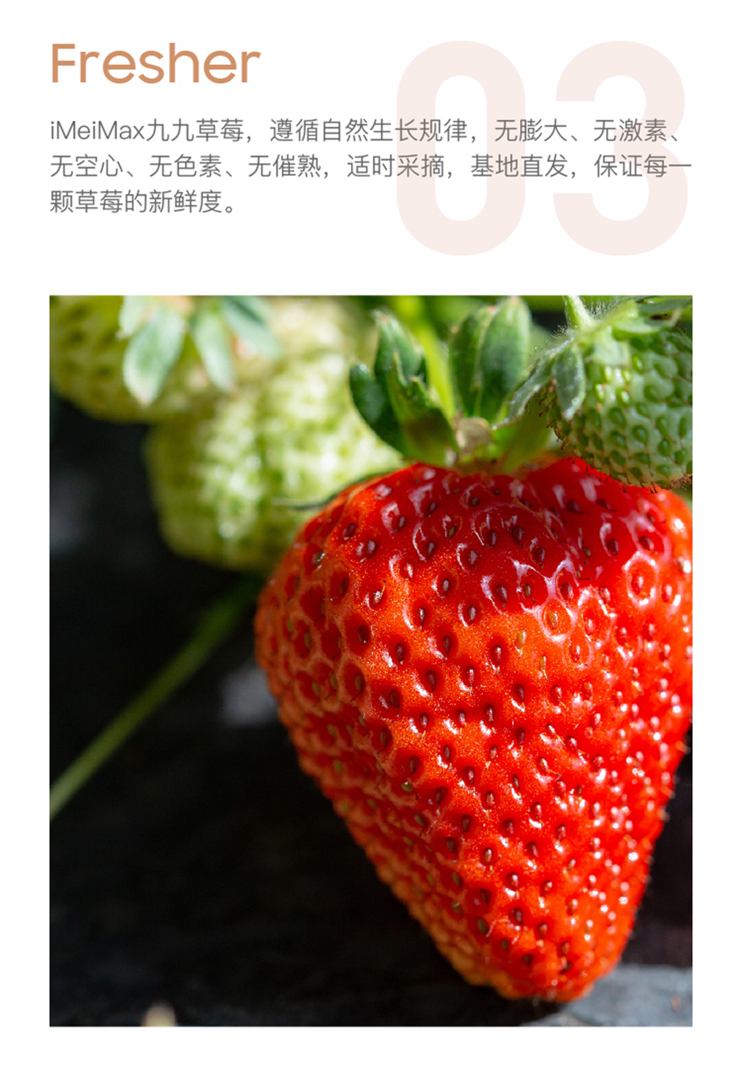 注:为避免因草莓成熟过度而在快递途中碰撞损伤严重,采摘时会选择未完全成熟的果实,收到包裹后如果草莓泛白部分过多,放置两到三天后即可。