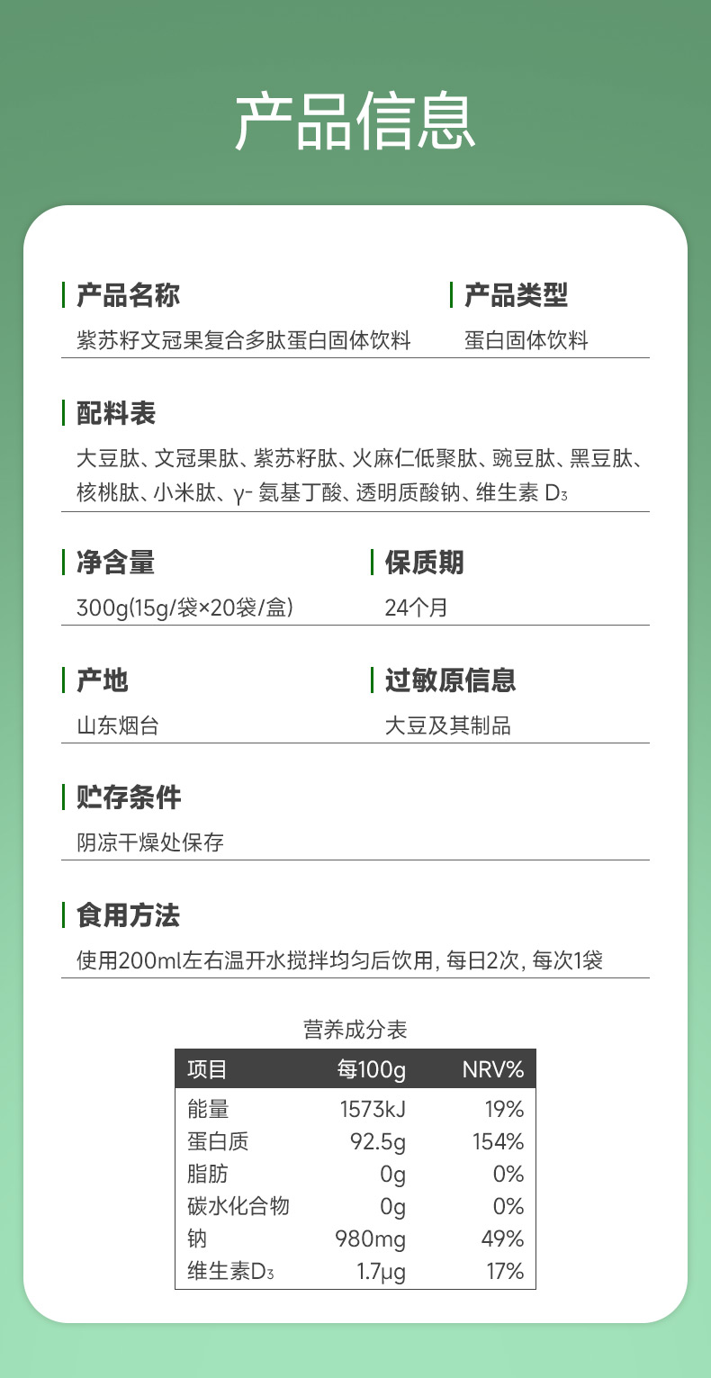 全食物日记 紫苏籽文冠果复合多肽蛋白固体饮料300g(15g*20包)全素