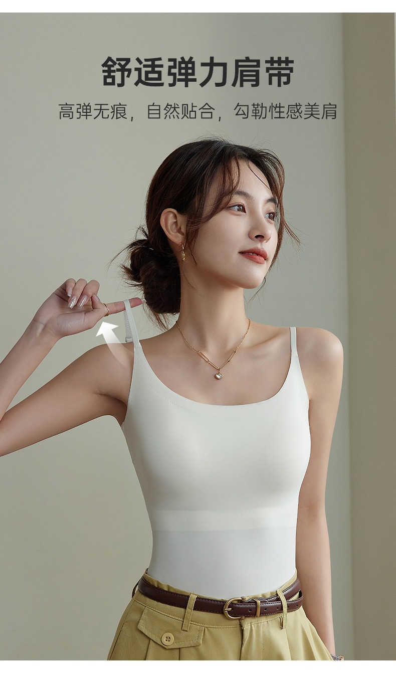 【2件更实惠】冰丝吊带,美背显瘦;自带胸垫,内外皆可穿。无痕设计,透气薄款;长衣遮臀,打底必备。