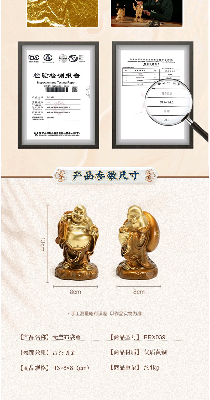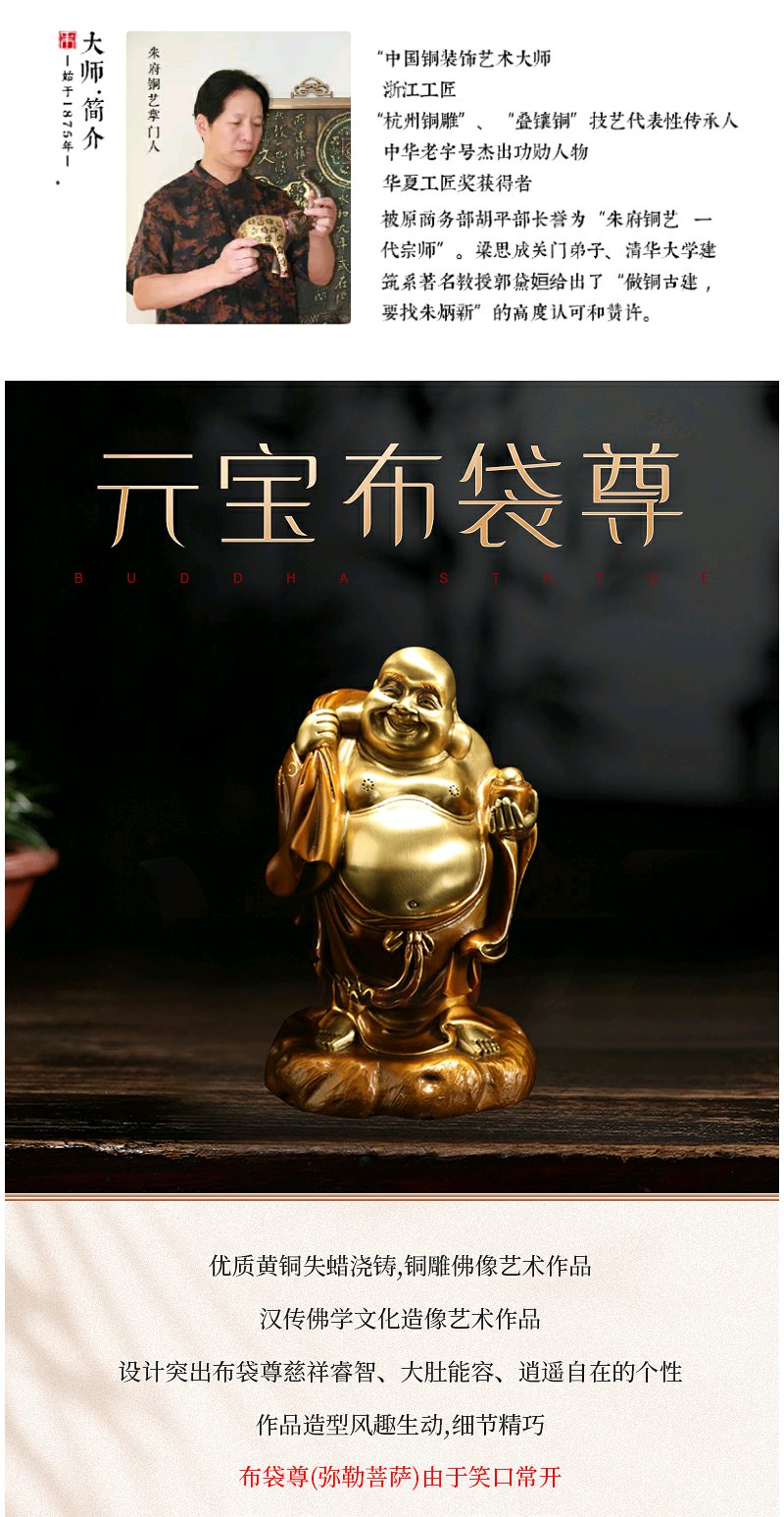 朱府铜艺 元宝布袋尊铜像摆件布袋佛家居装饰品客厅工艺品摆件