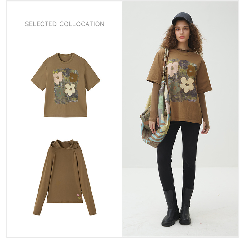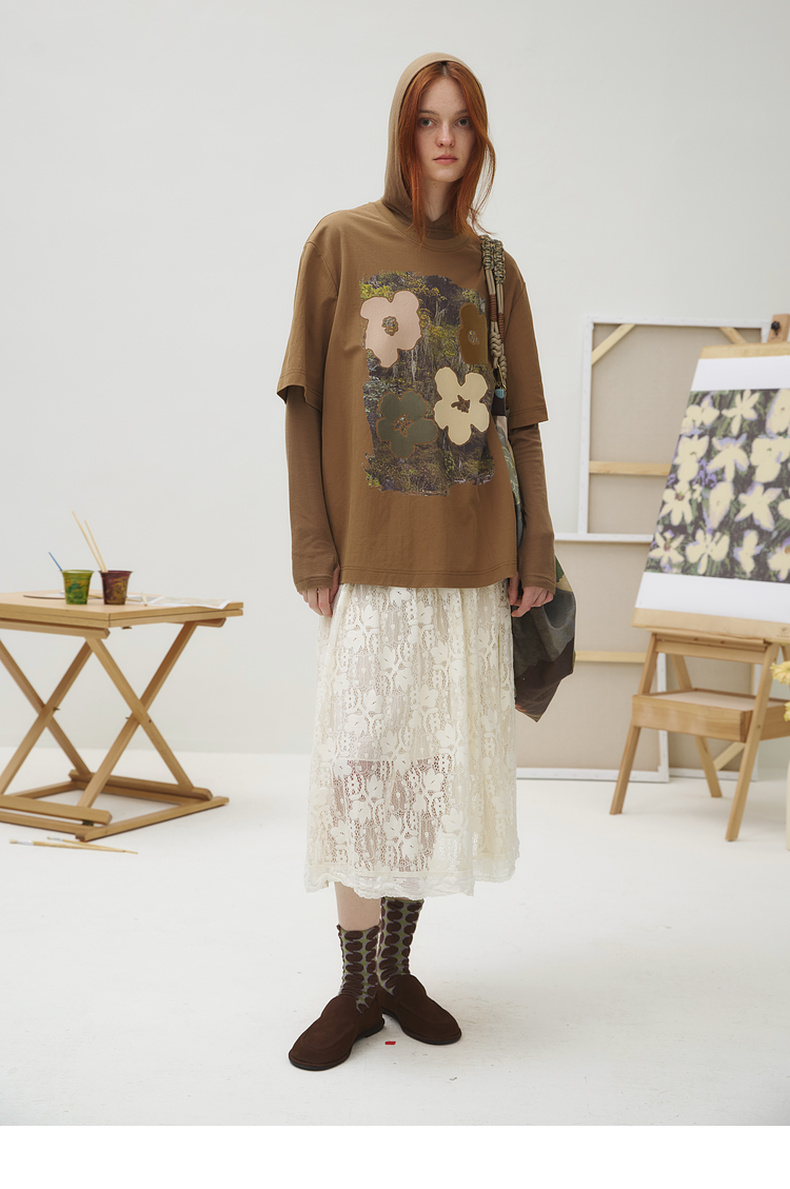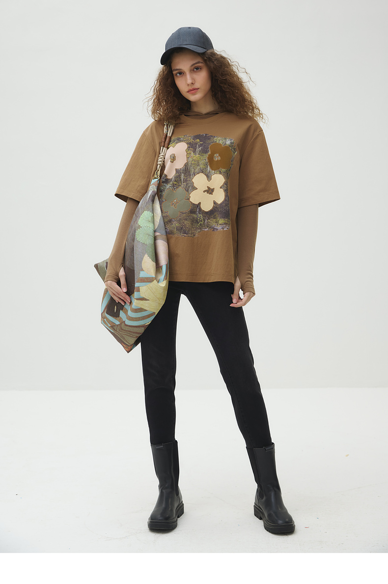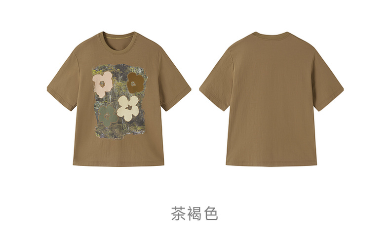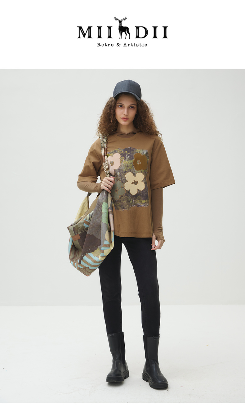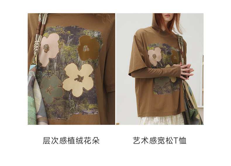 谜底T恤短袖女2025秋季新品复古立体印花宽松大廓形上衣253MT1043