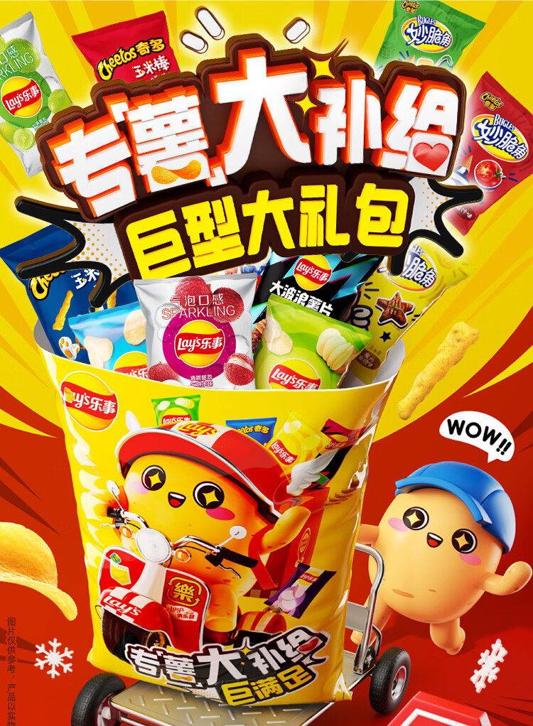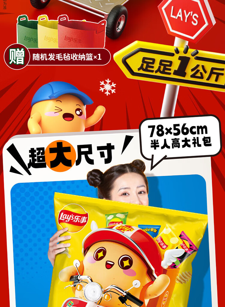乐事(Lay's)薯片 巨无霸吃货零食大礼包 肩扛大零食1kg 圣诞礼物 零食大礼包