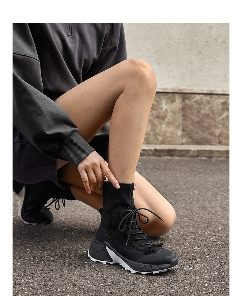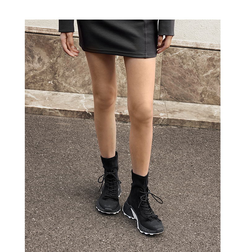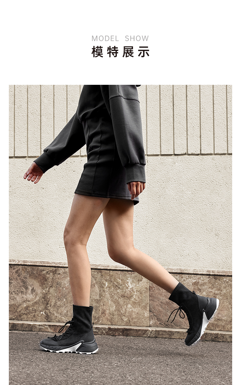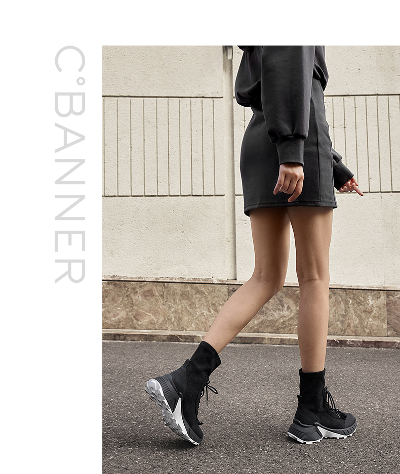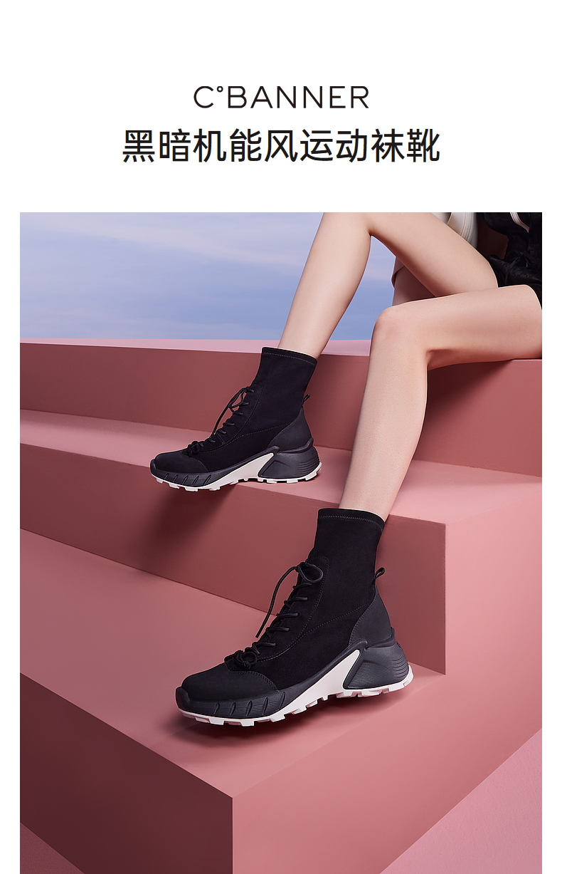 【Chic°主题款】千百度厚底高帮鞋女冬季新运动弹力袜靴休闲A24521516