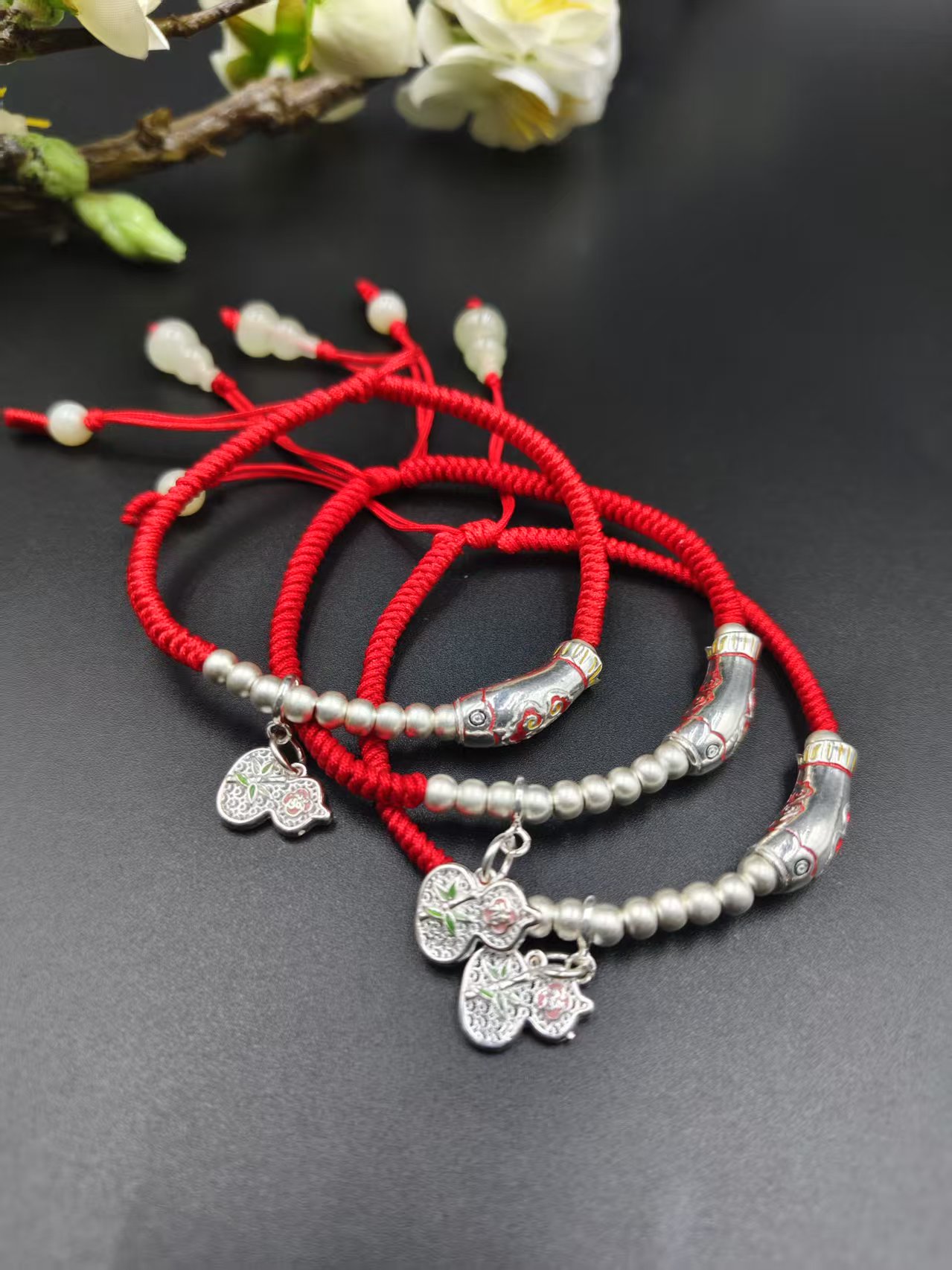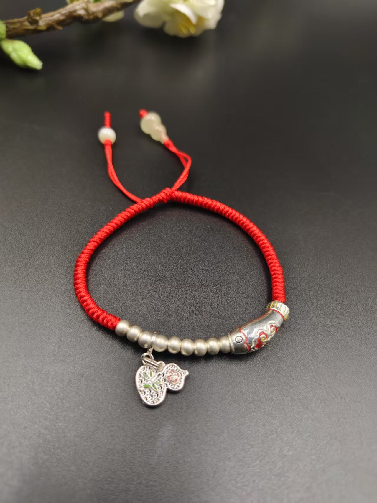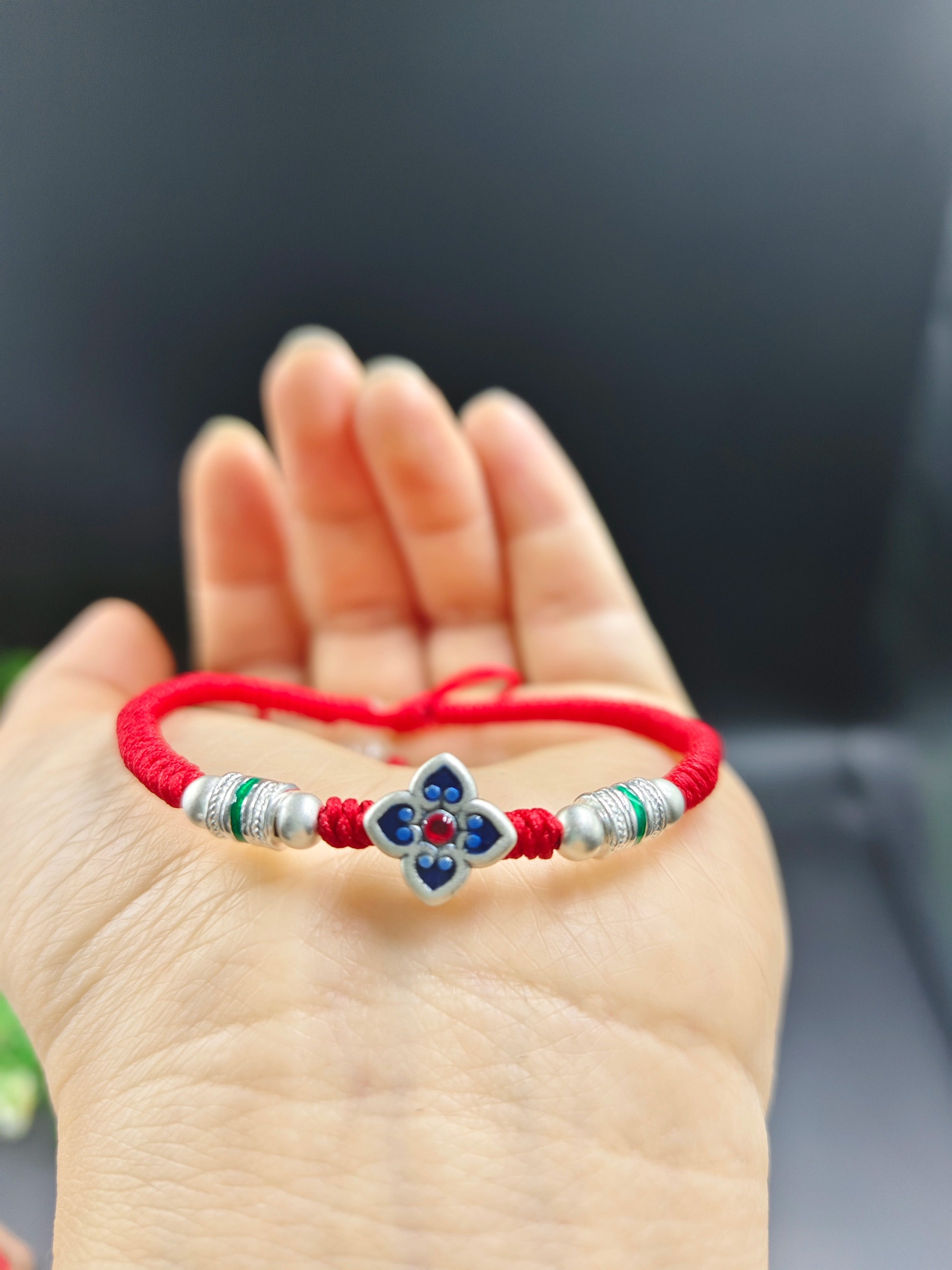 纯银红绳编绳手链