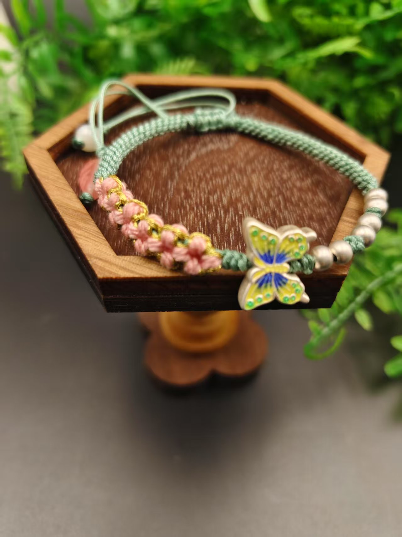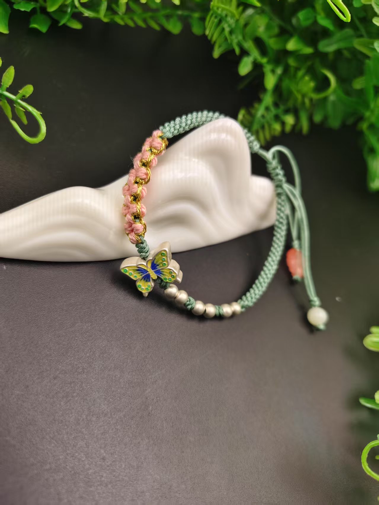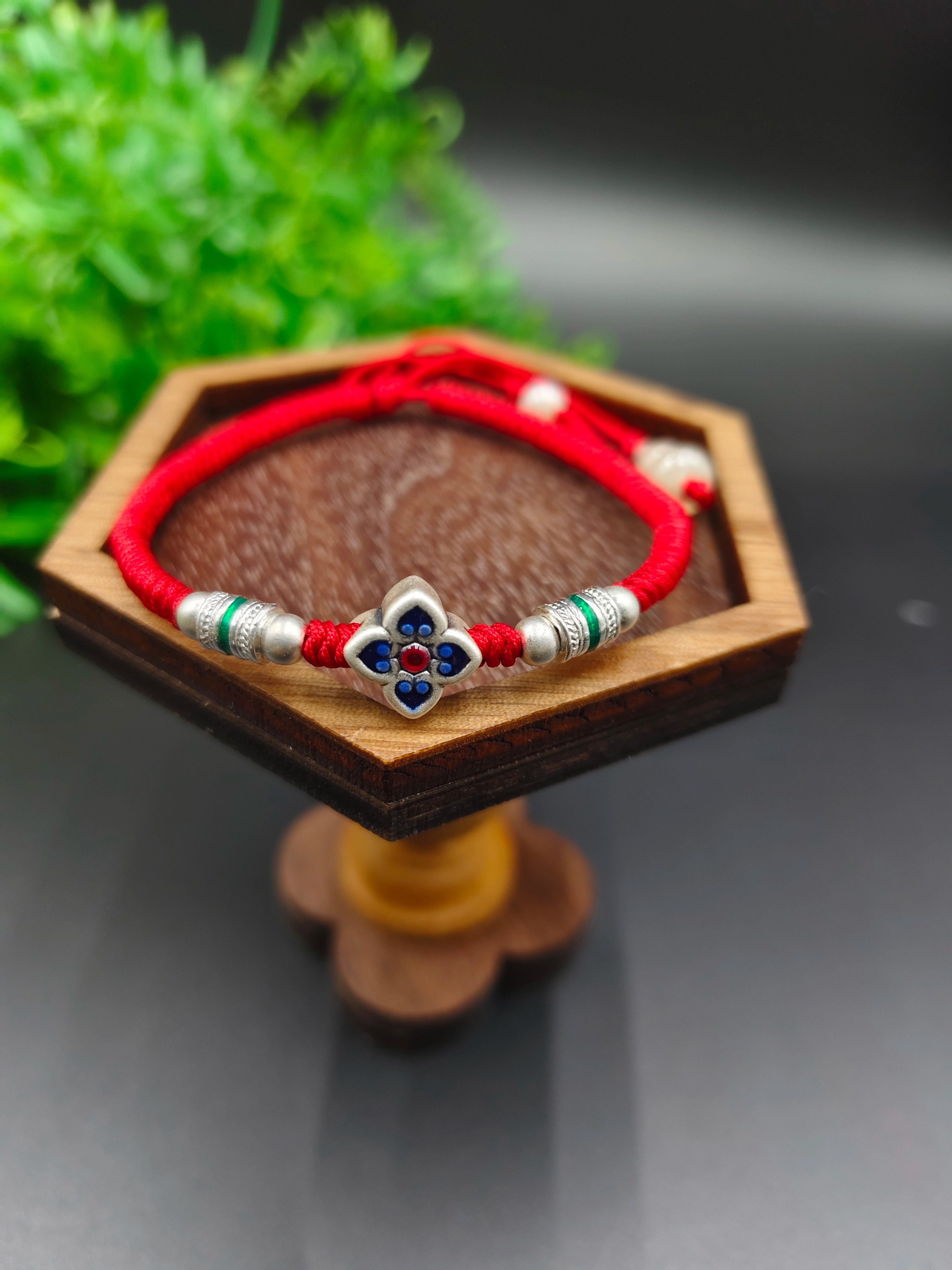 纯银红绳编绳手链