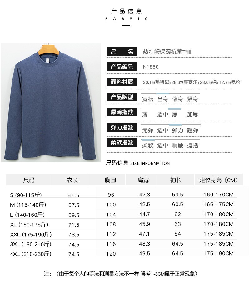 岸纾 日本进口热特姆莱赛尔保暖7A抗菌防螨260克T恤(6色可选) 经典内搭半高领柔软舒适N1850