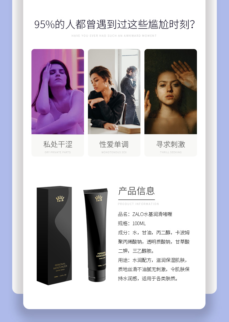 ZALO水溶性润滑啫喱 100毫升 清爽水润保湿