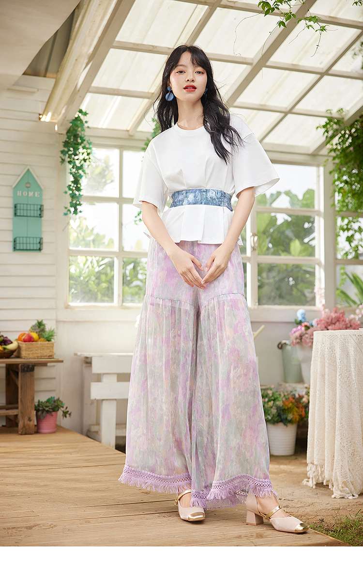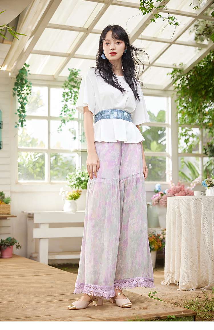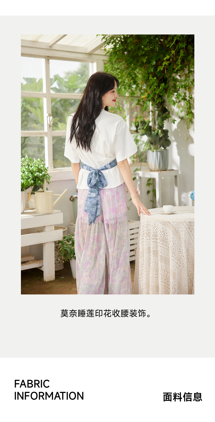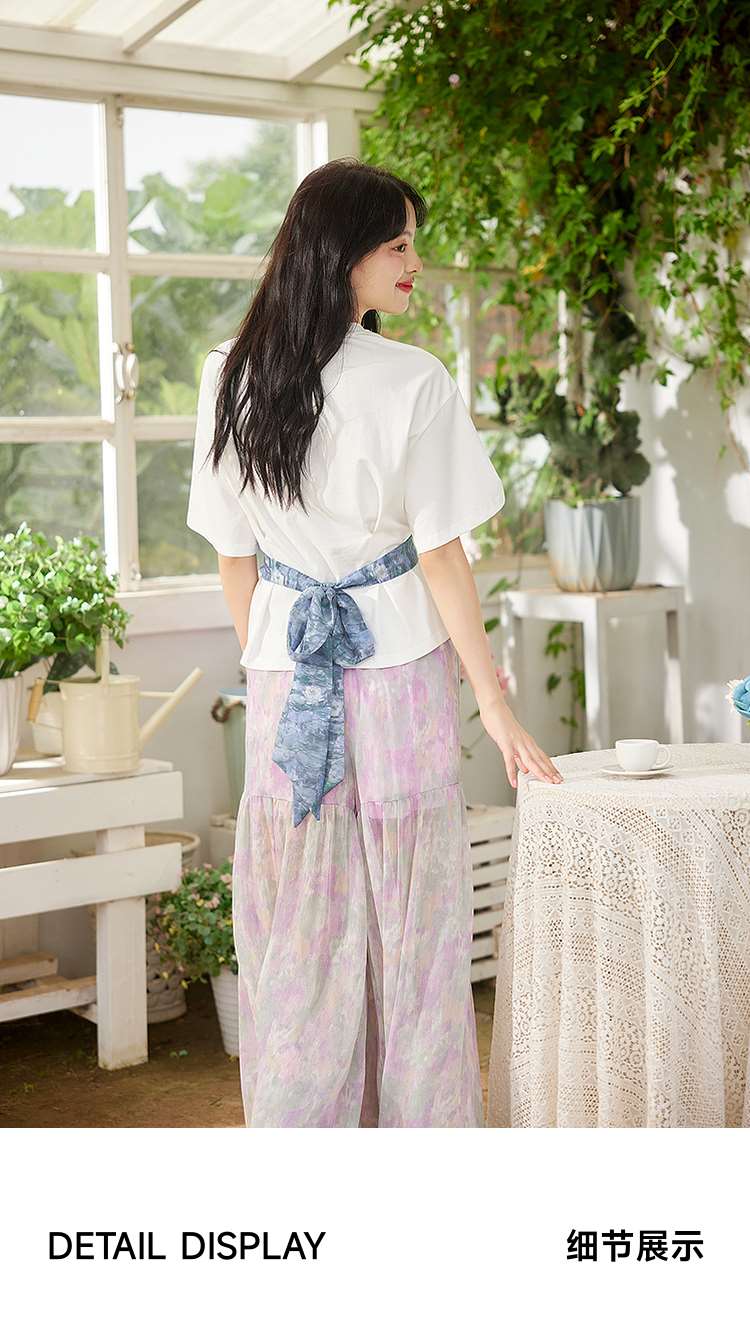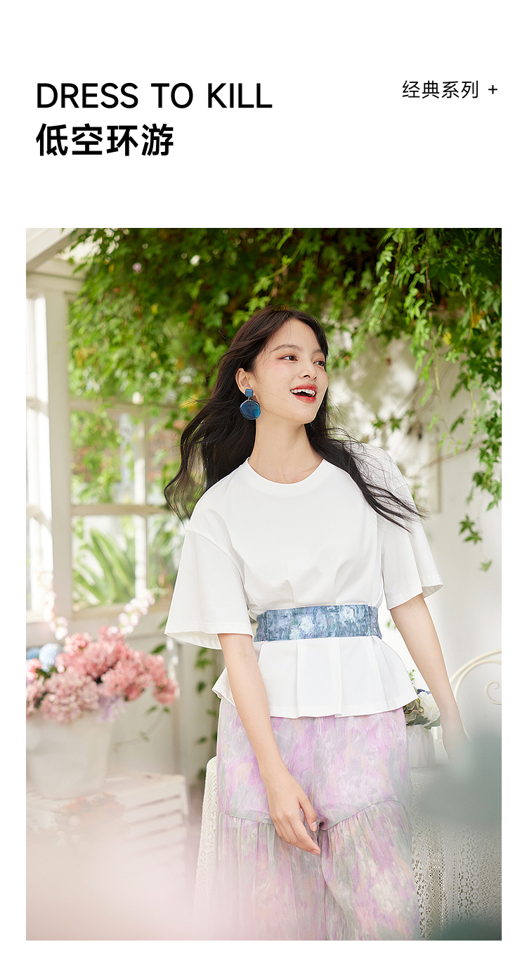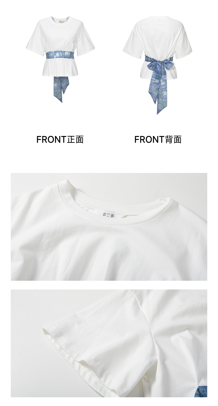 两三事低空环游2023夏季新款小清新绑带棉质短袖T恤女