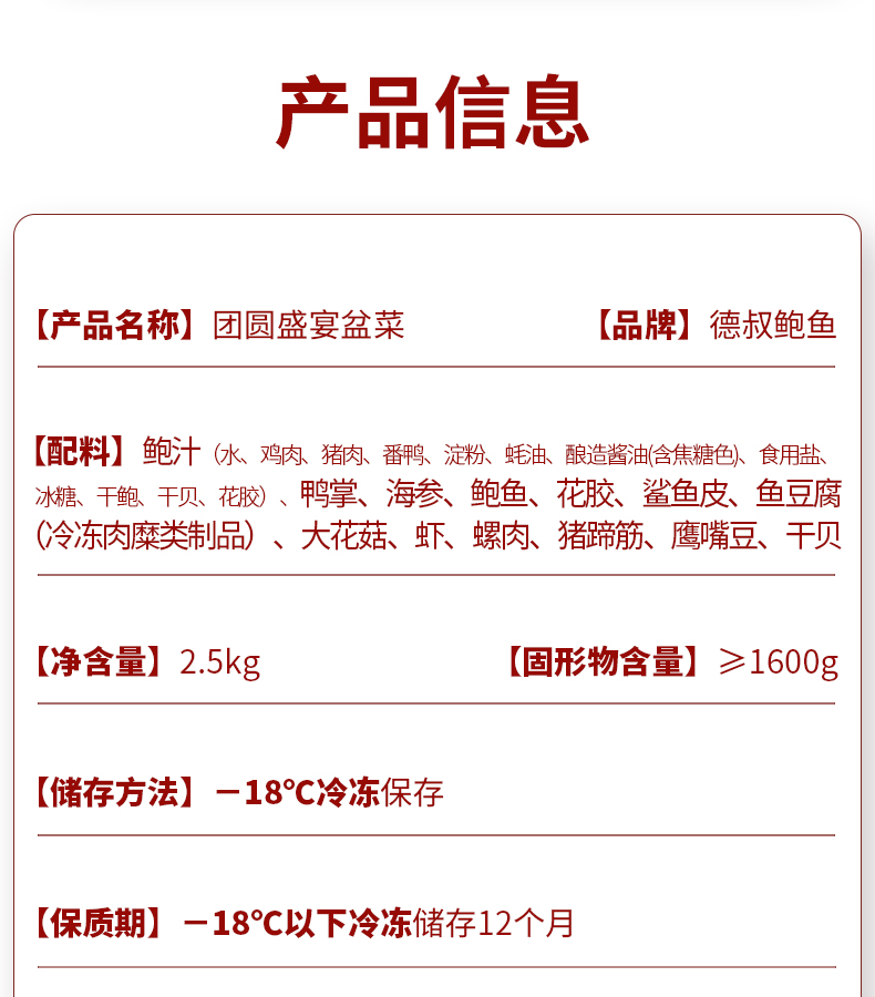 德叔鲍鱼官方正宗鲍汁溏心鲍鱼干鲍刺参大盆菜5斤家庭聚餐送礼佳品【冷冻储存】