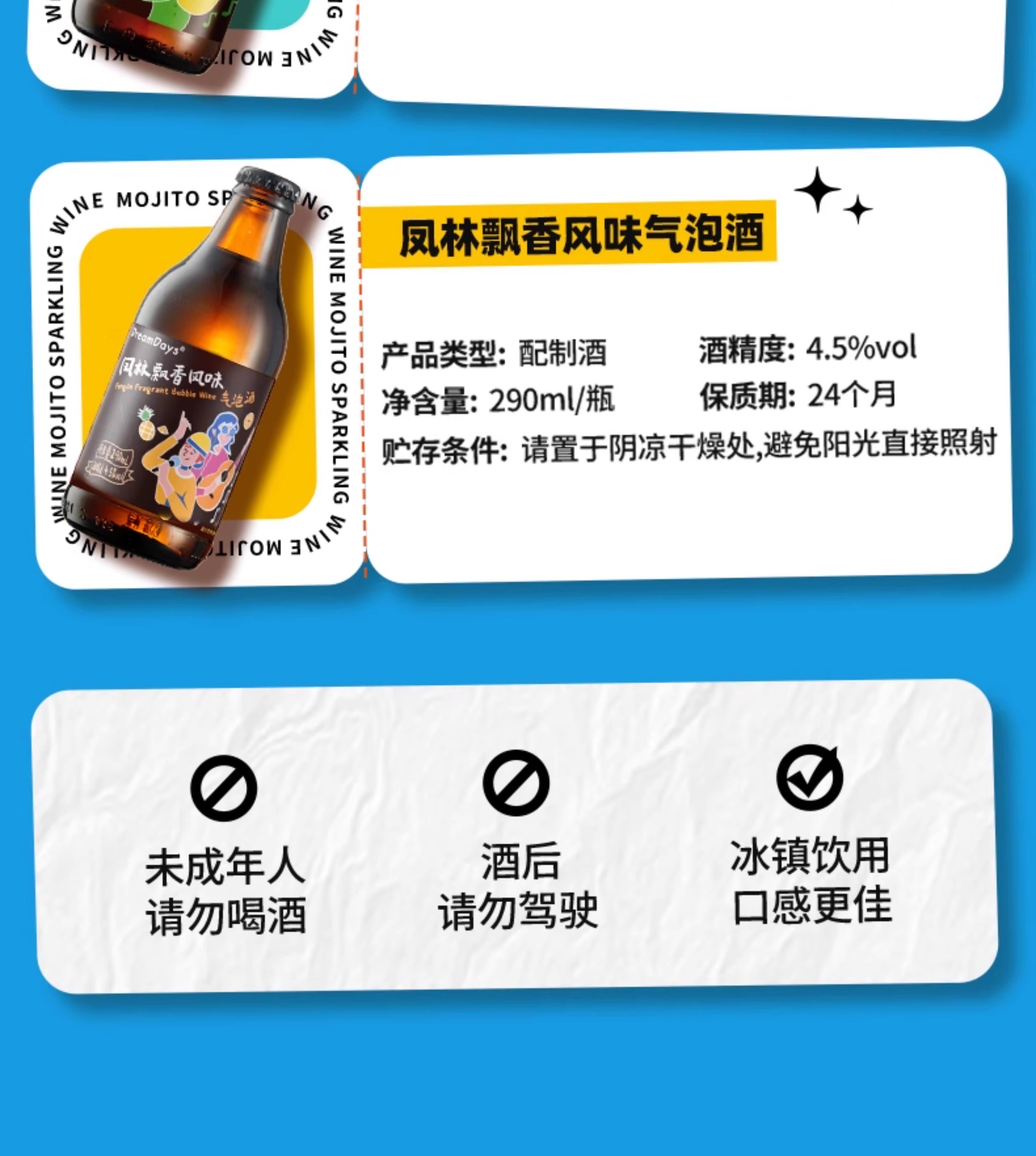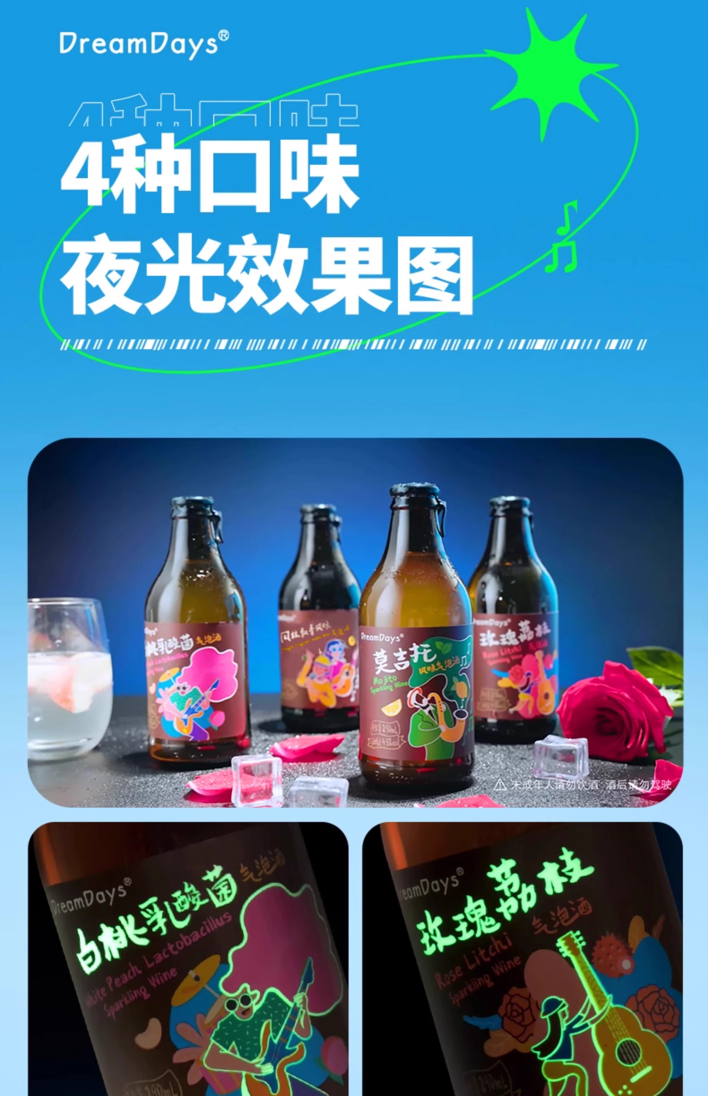 乳果那年气泡酒 玫瑰荔枝 莫吉托 白桃 微醺夜光起泡酒果酒 女士低度甜酒4.5度290ml*6瓶