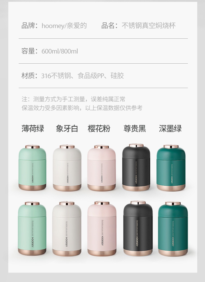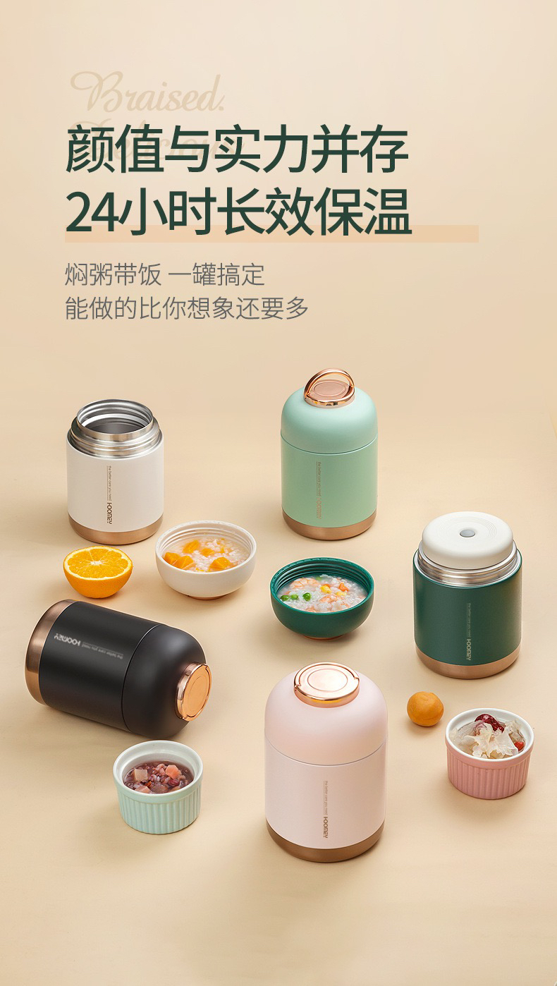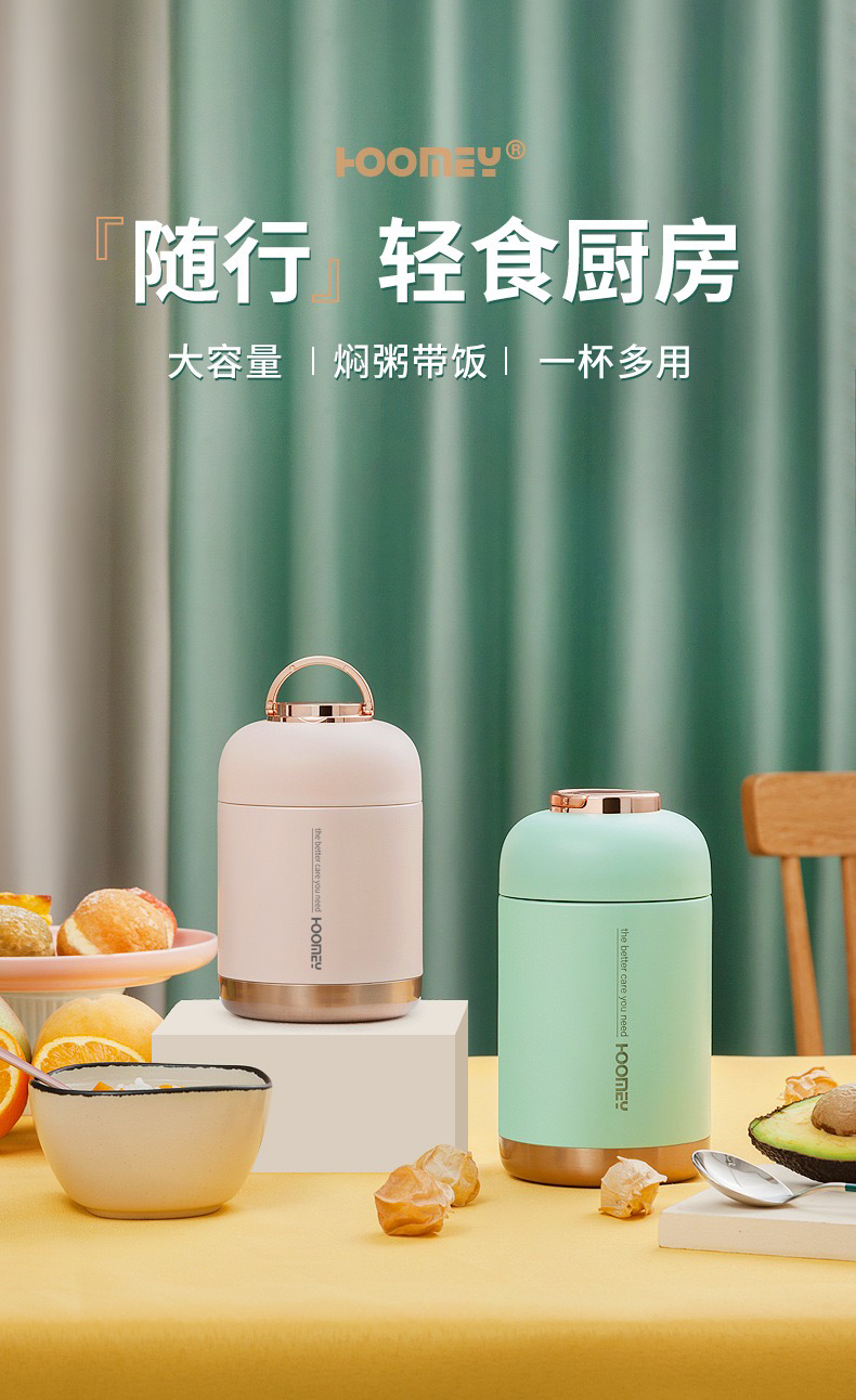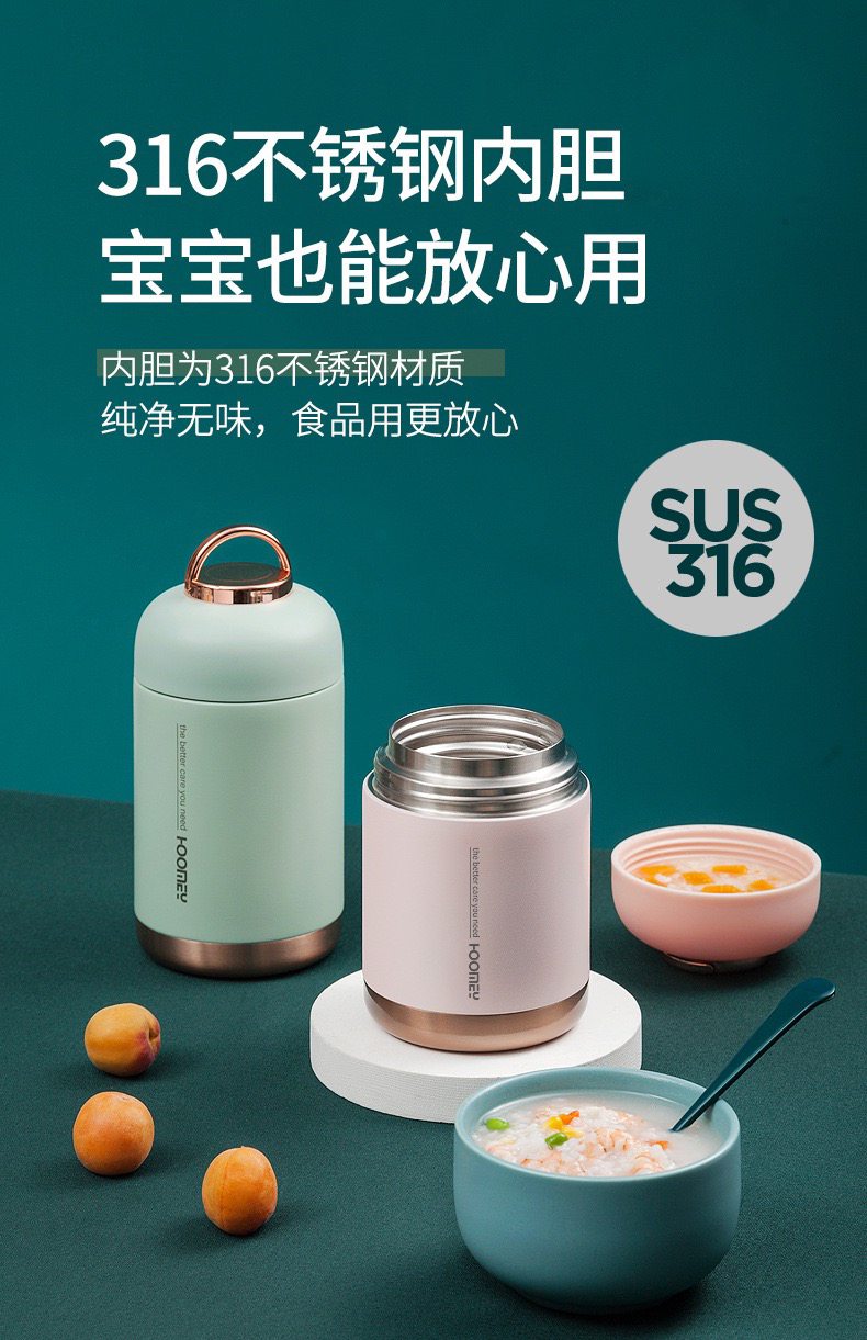 Hoomey不锈钢真空焖烧杯(送保温袋+筷勺套装)