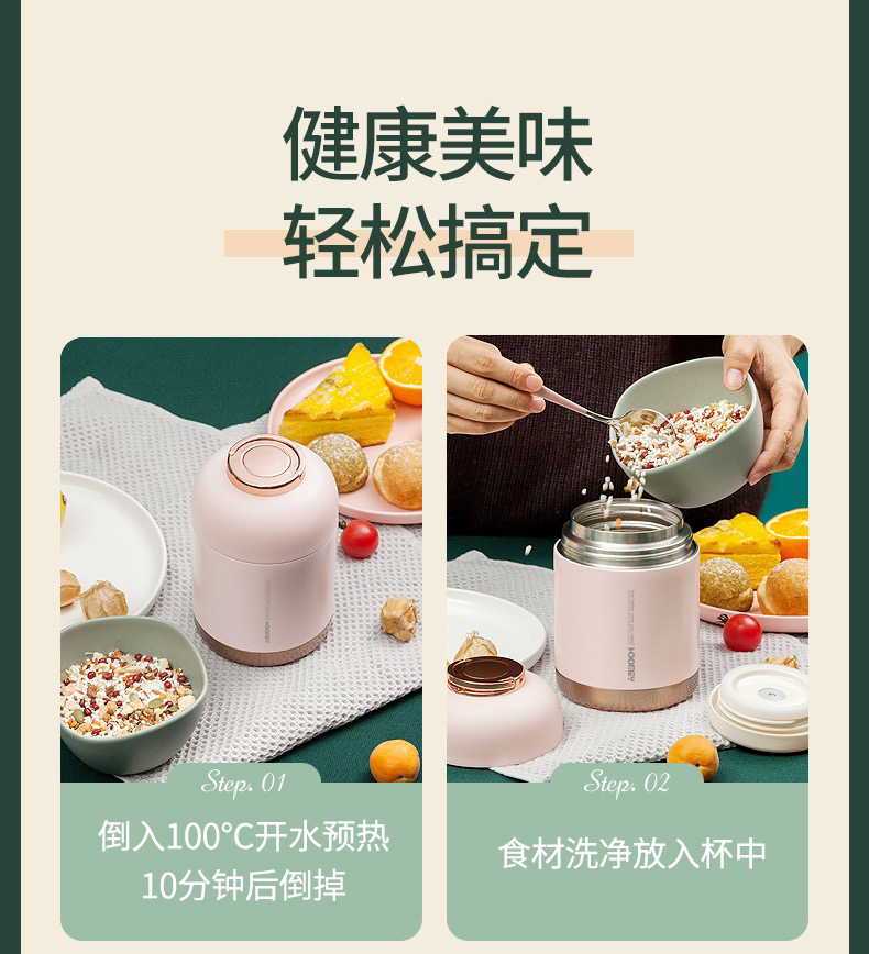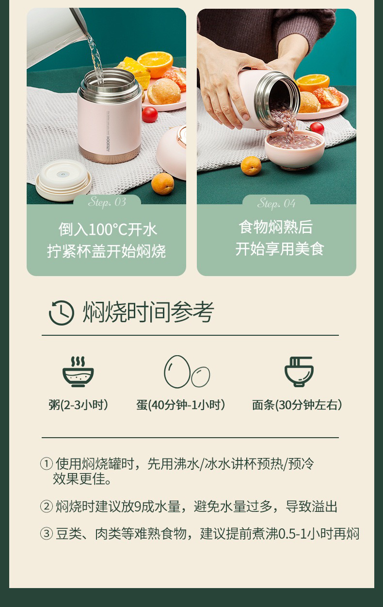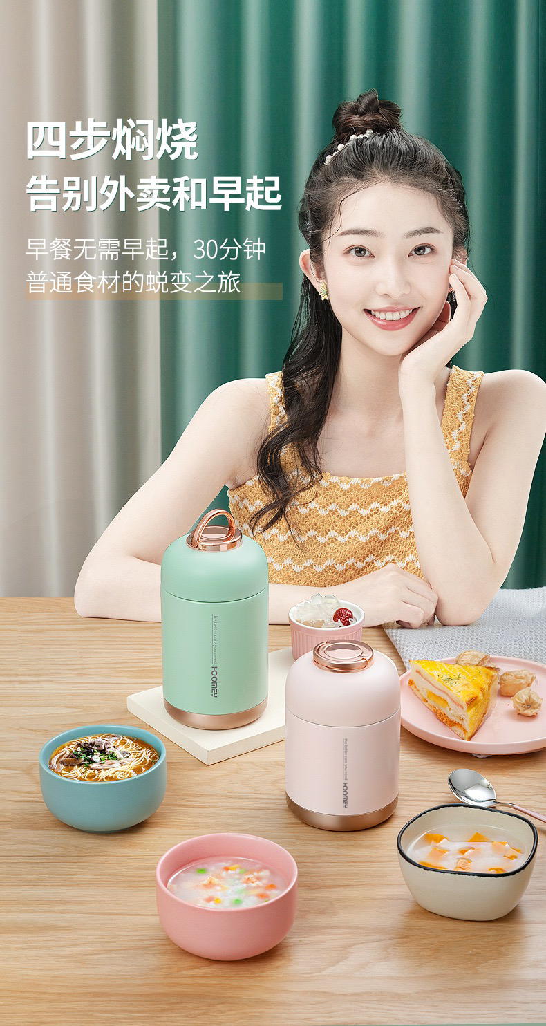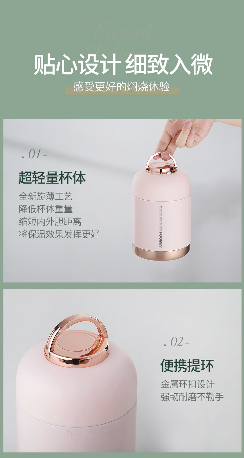 Hoomey不锈钢真空焖烧杯(送保温袋+筷勺套装)