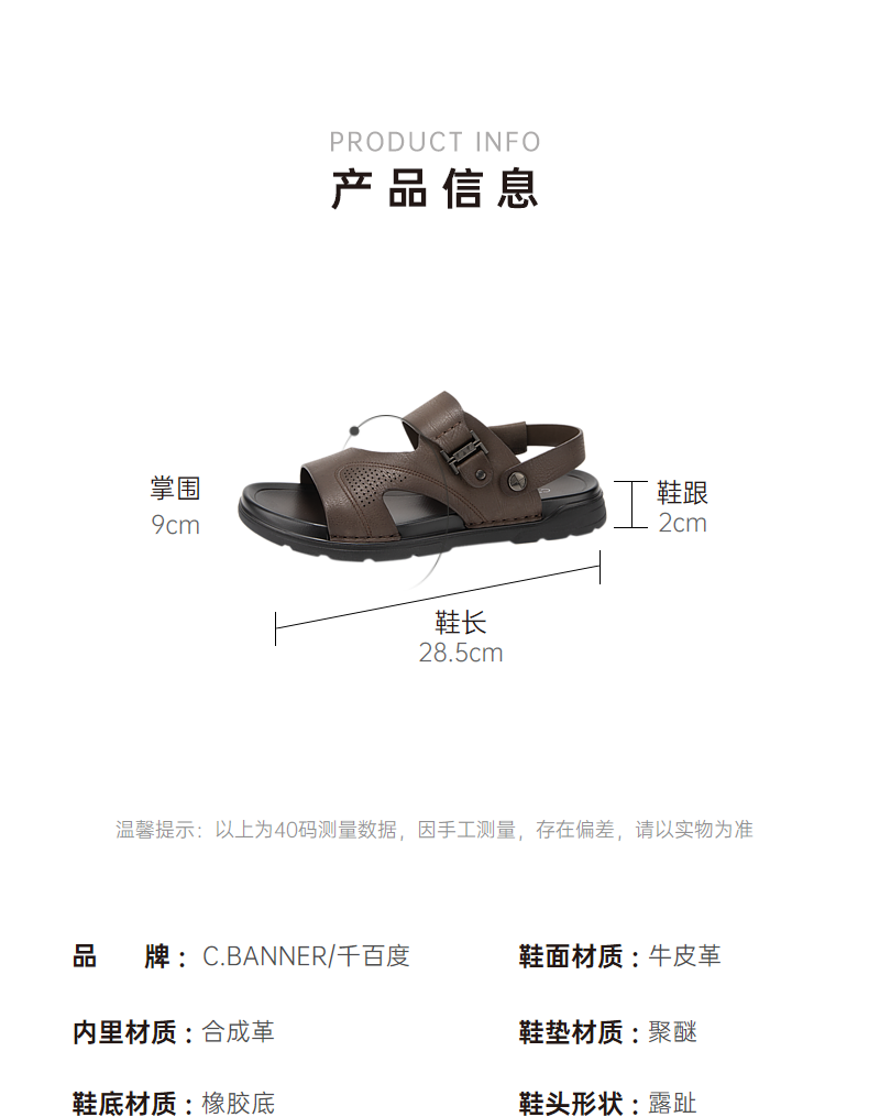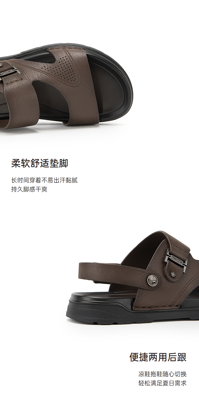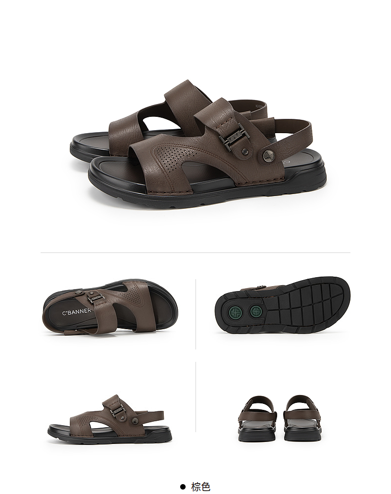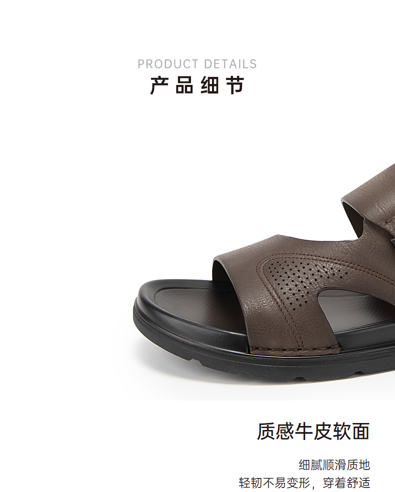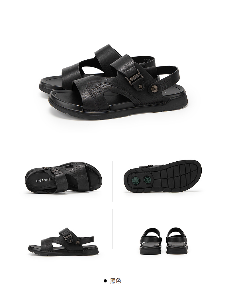 千百度男鞋休闲凉鞋夏季沙滩度假海边真皮增高两穿凉拖鞋A24324504