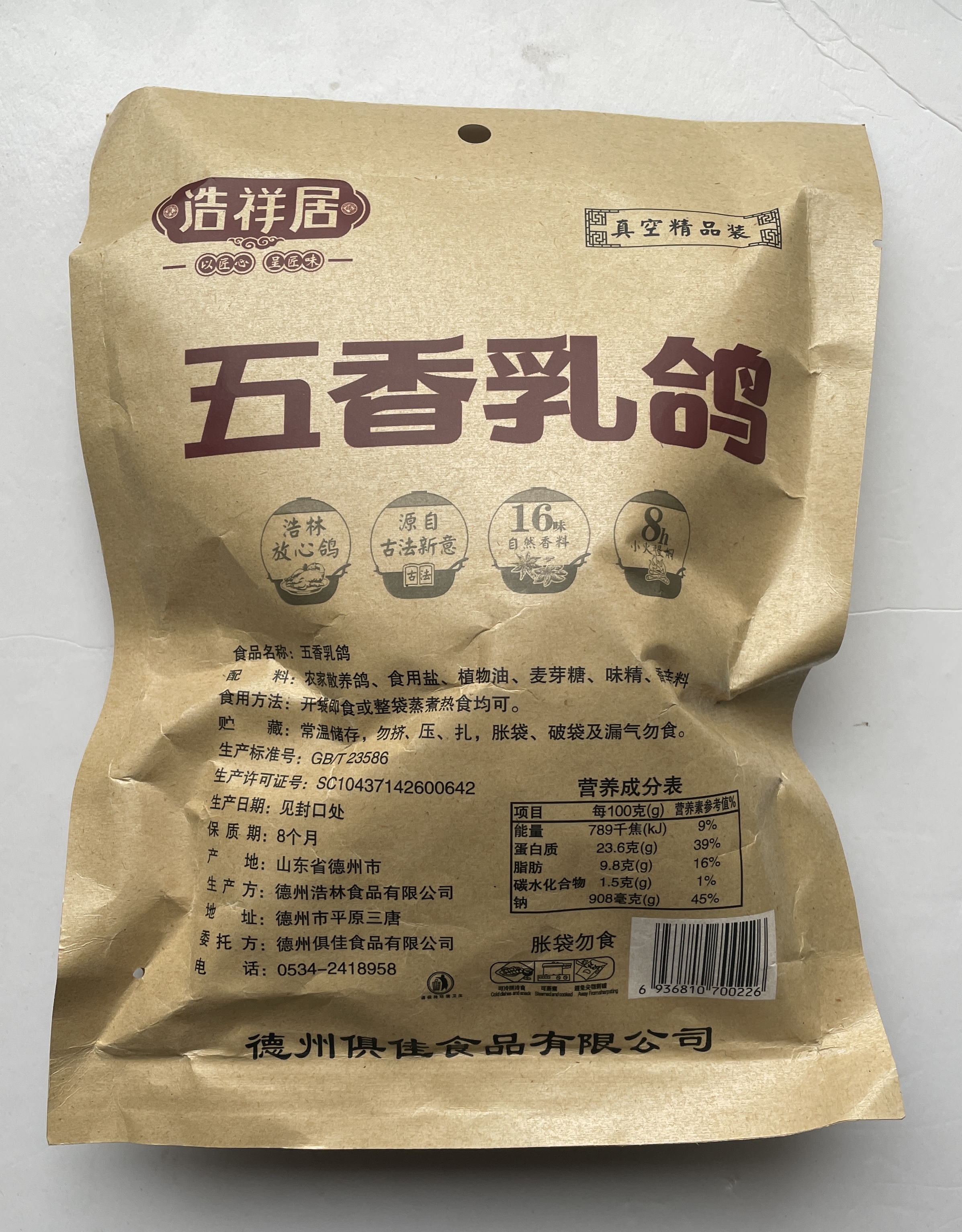 浩祥居五香乳鸽200g/袋*6袋