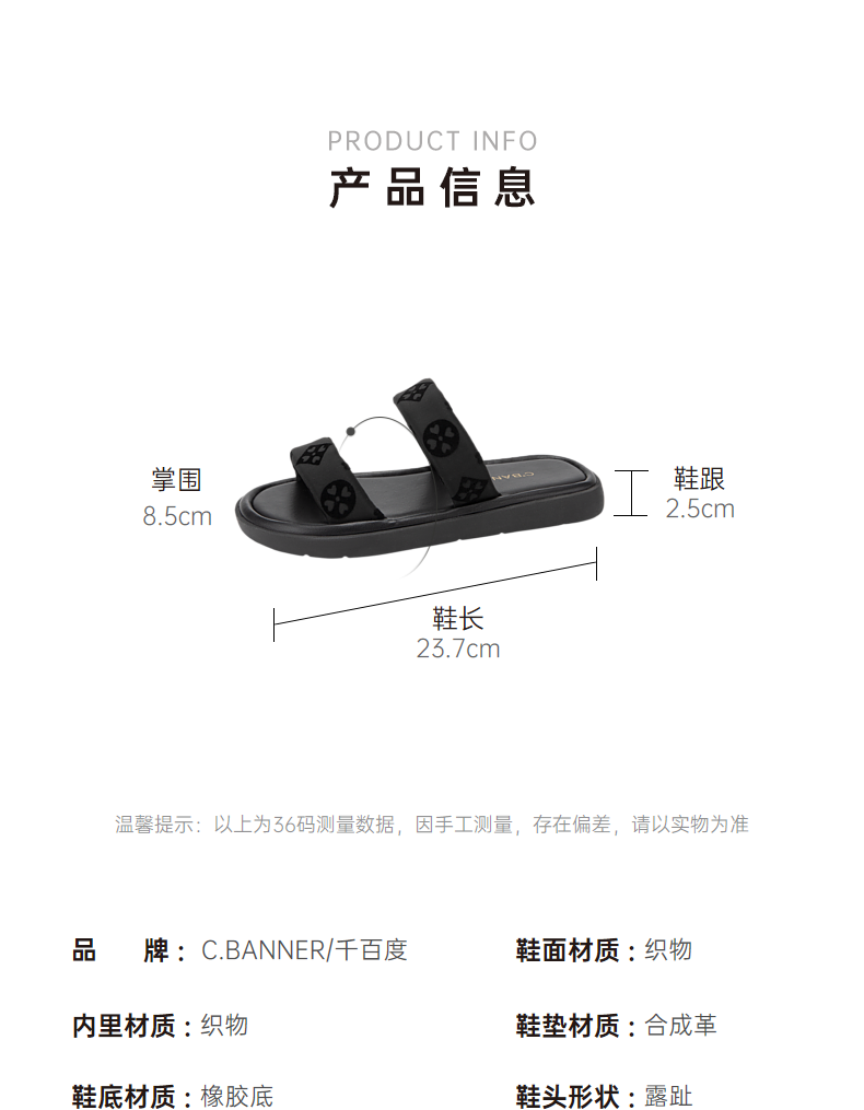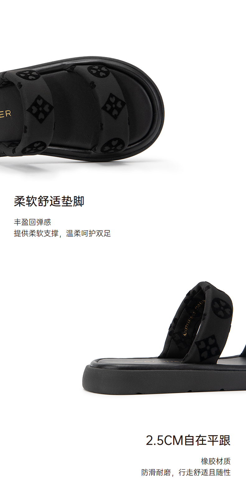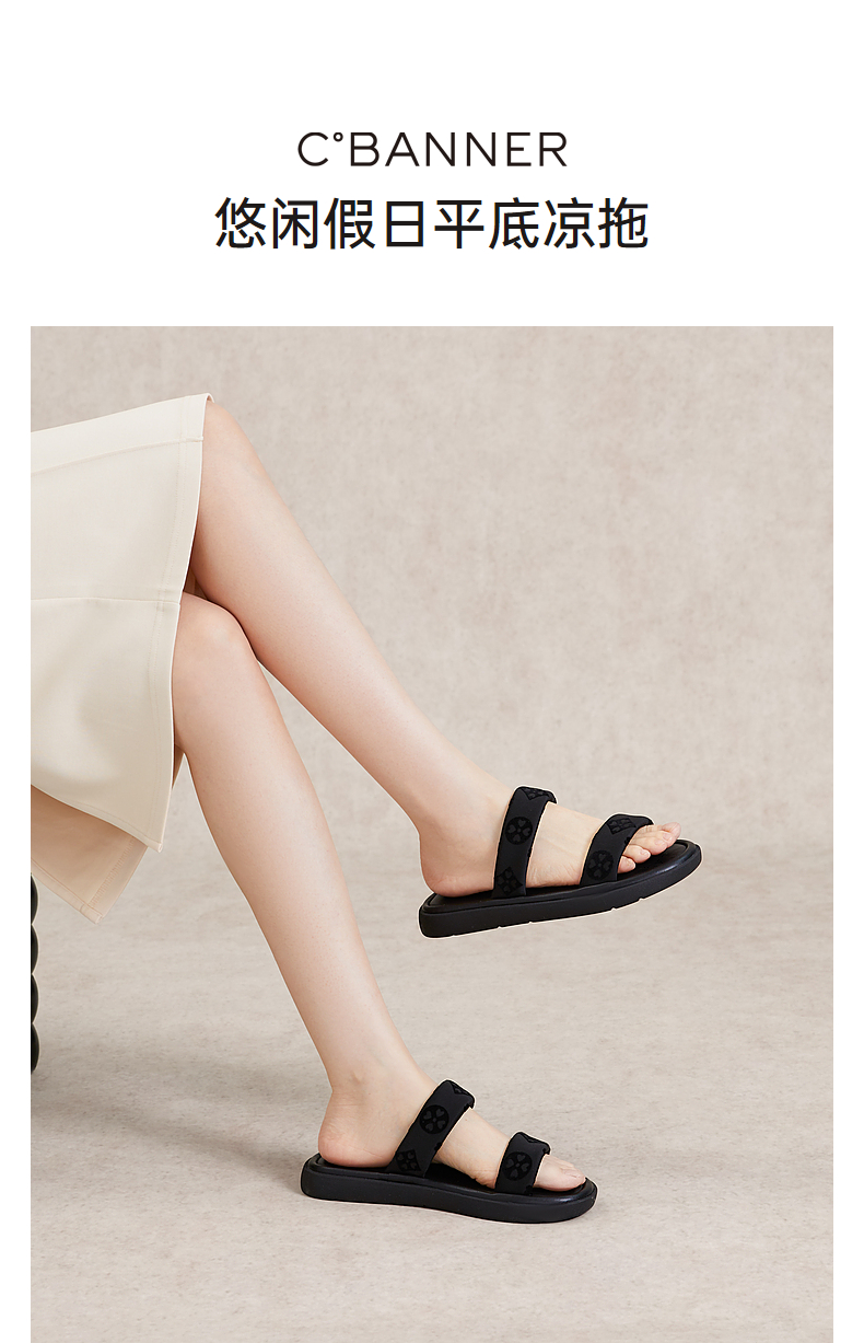 千百度沙滩海边一字拖女款夏季平底可外穿休闲舒软凉拖鞋A24375181