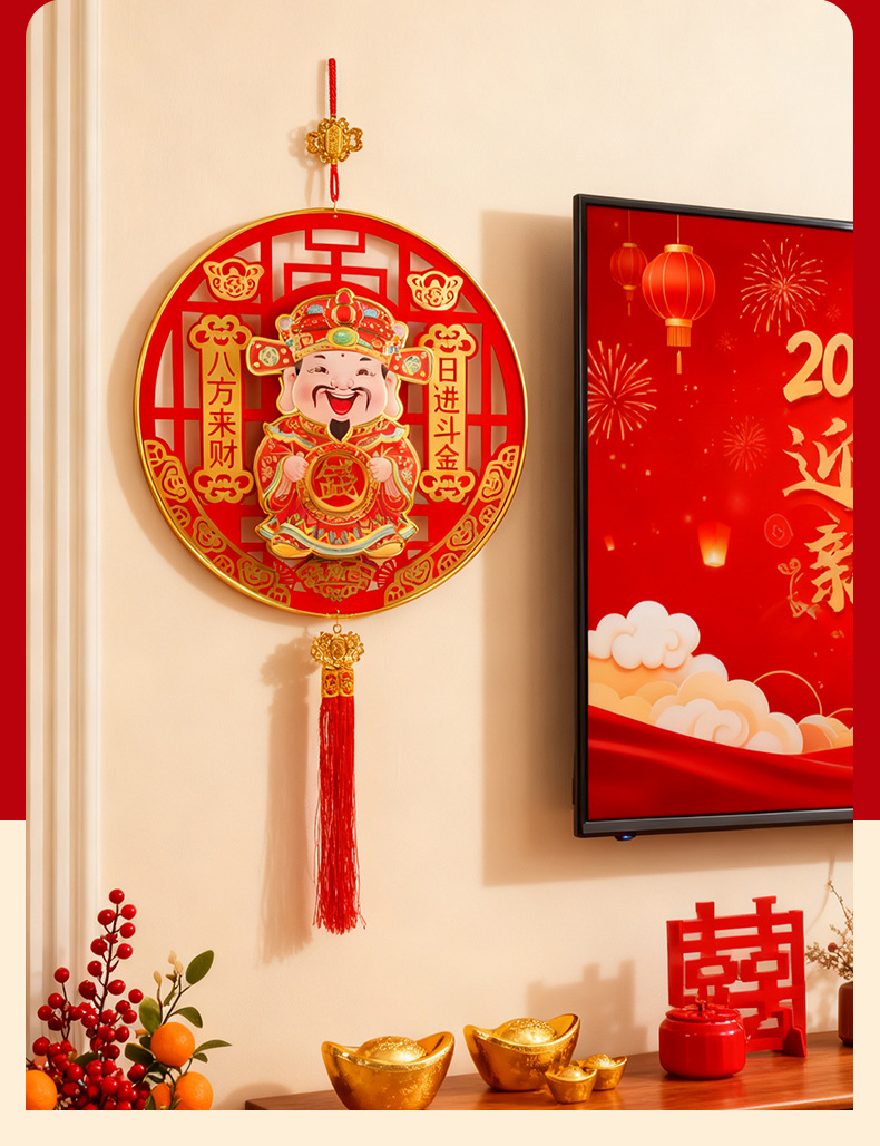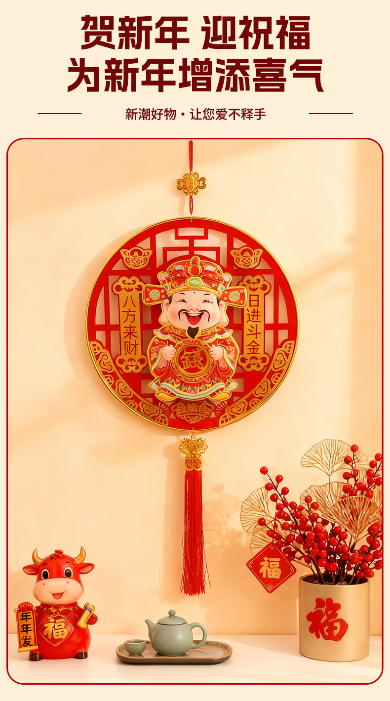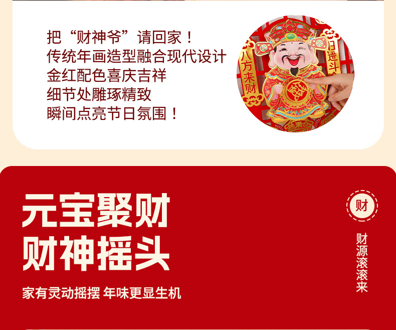 财神爷点头挂件2026新款点头加转钱背景门贴春节摇头马年装饰大门