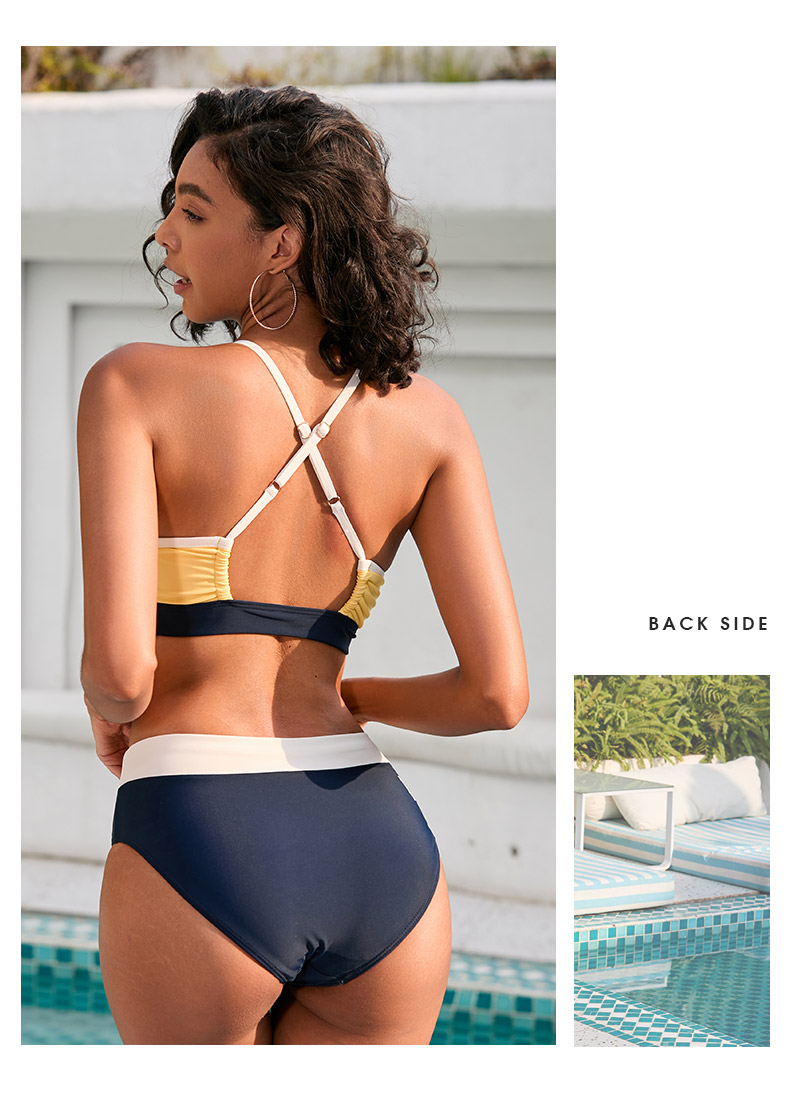 sisia泳衣女2023新款性感深v撞色显瘦度假游泳冲浪比基尼ins欧美