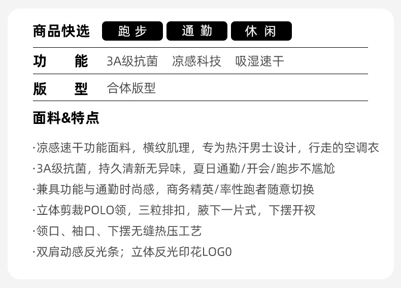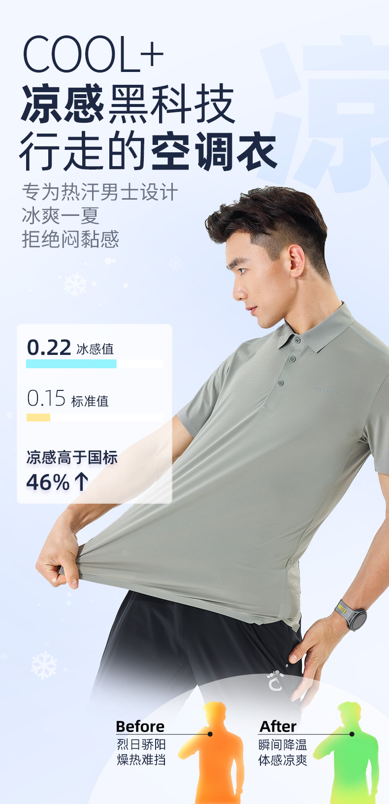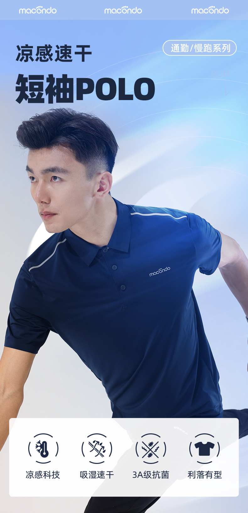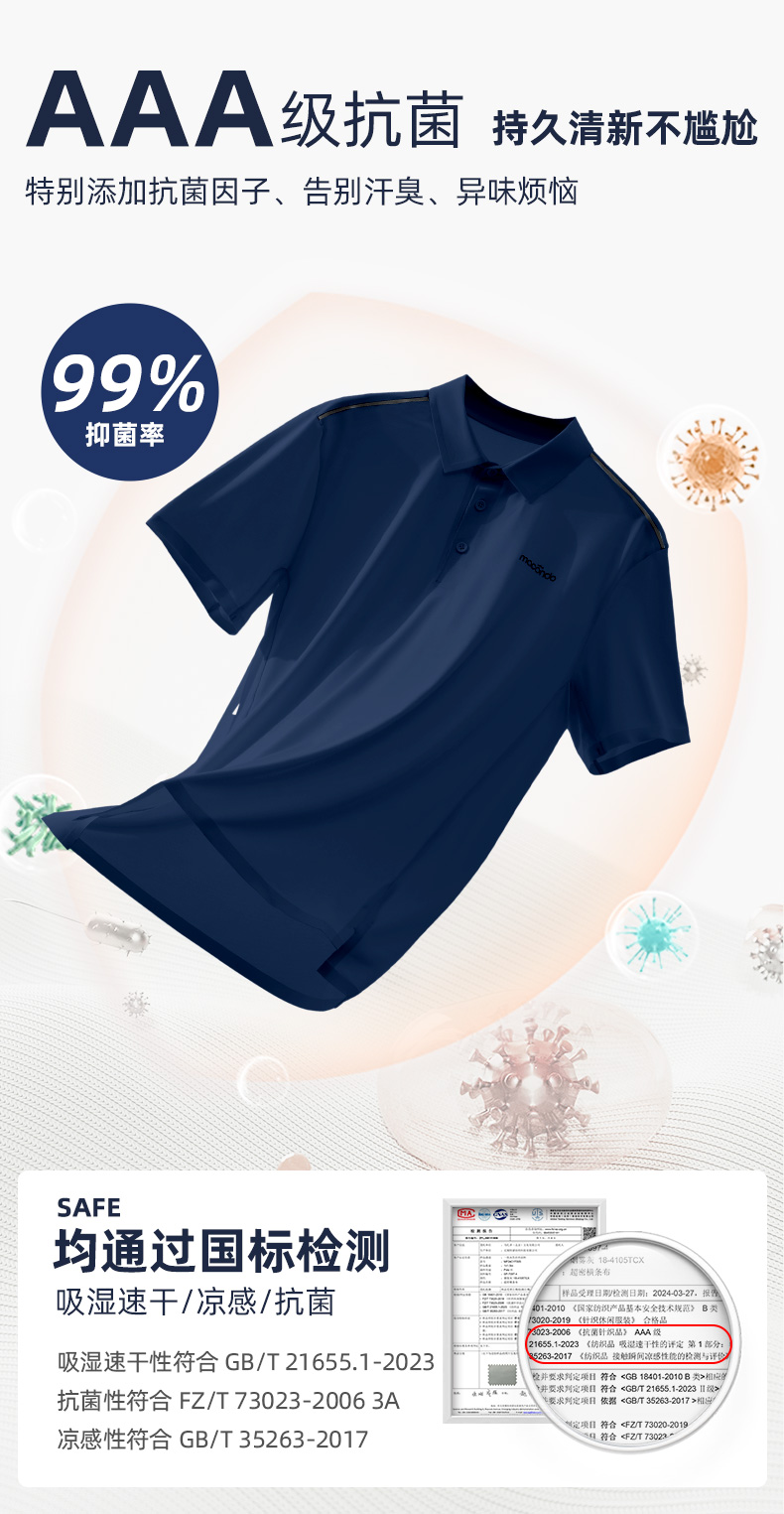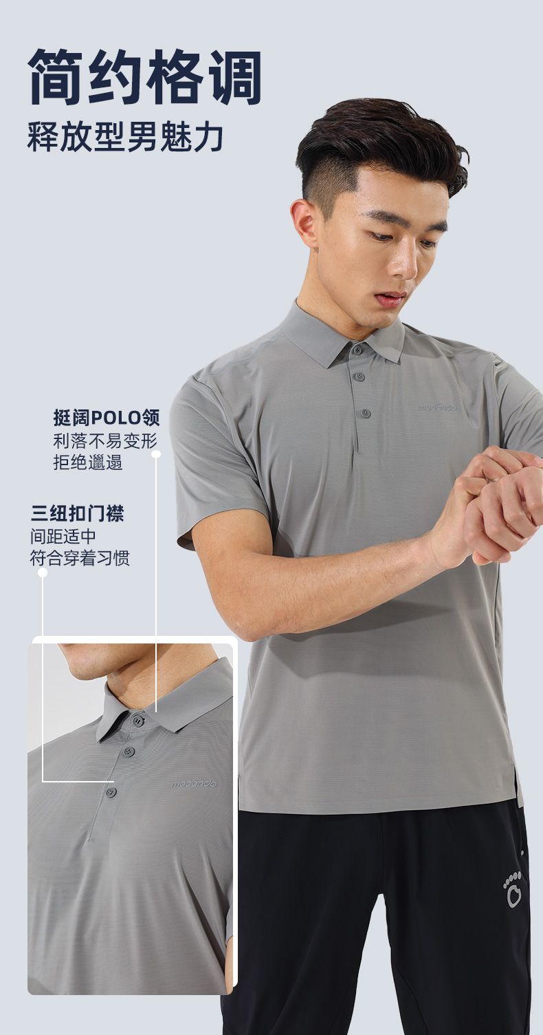 春夏马孔多男子短袖POLO衫 行走的空调衣 通勤/运动/休闲随心穿 凉感系数高于国标X% 瞬间降温 吸湿速干 透气不闷 3A级抗菌 持久清新无汗臭
